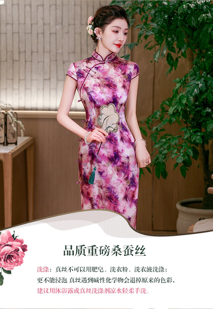 桑蚕丝真丝旗袍优雅气质修身WXG20264