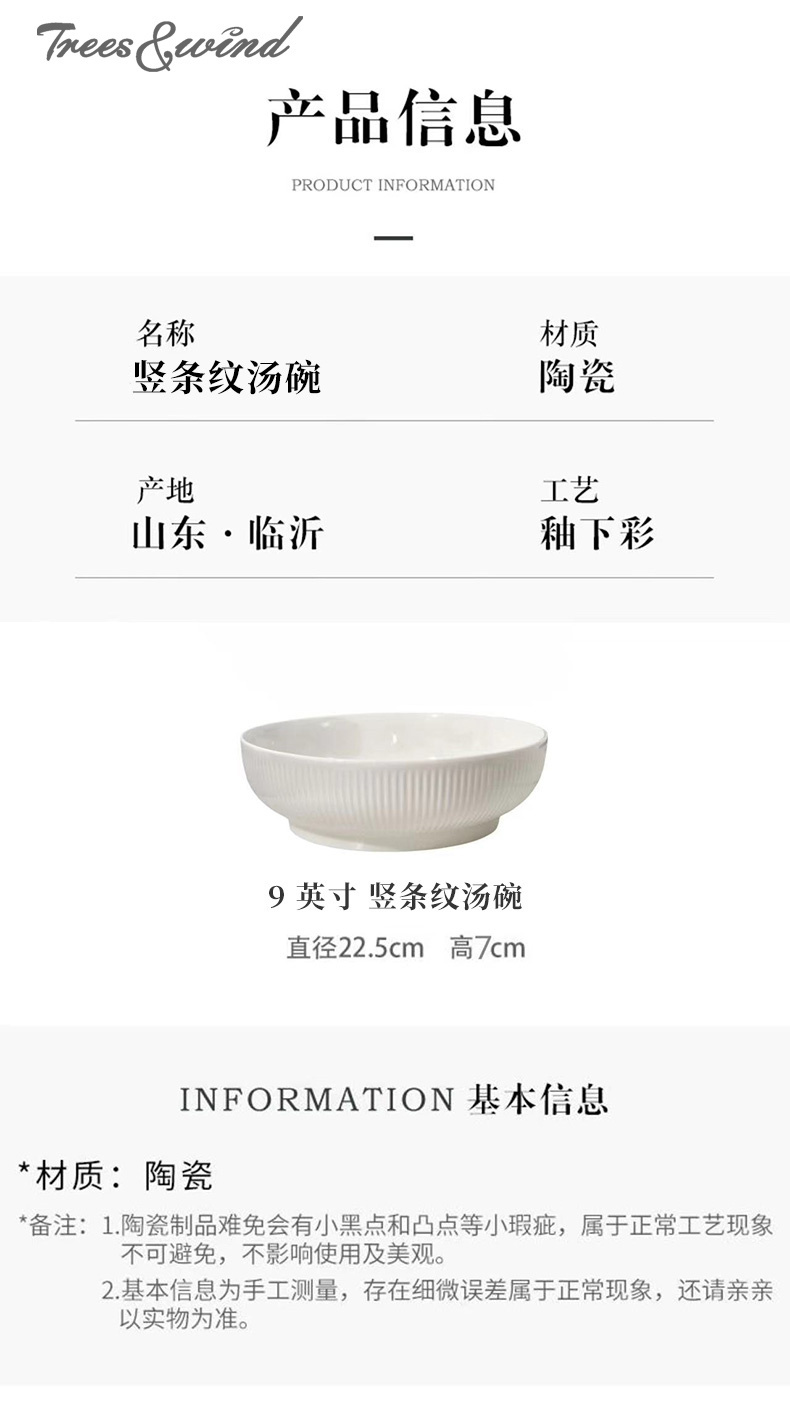 【品牌直发】29.9/2个❗9英寸超大尺寸❗Trees&Wind·9英寸竖纹汤碗,1次3人份的面,堪称妈妈的梦中情碗❗
