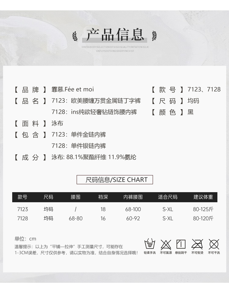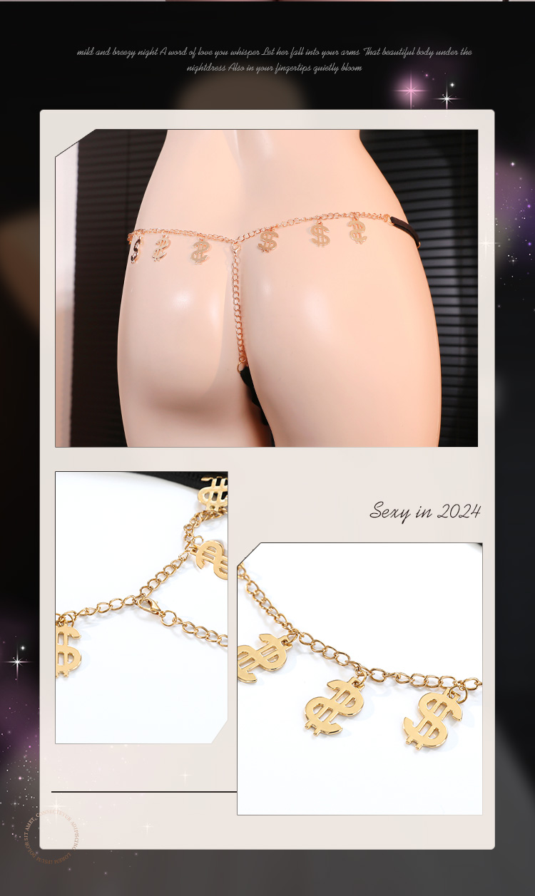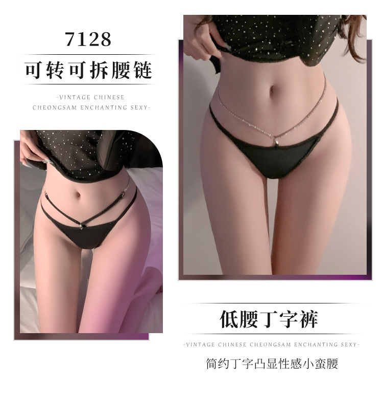 霏慕 情趣内衣内裤欧美腰缠万贯金属链丁字裤7123+ ins纯欲轻奢钻链饰腰内裤7128