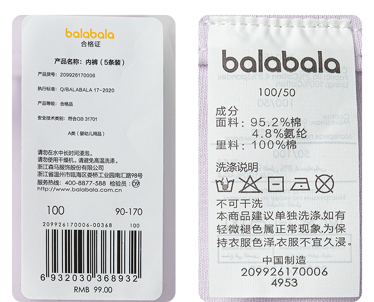 【balaOne】巴拉巴拉儿童内裤棉a类女童平角小童大童四角裤五条装