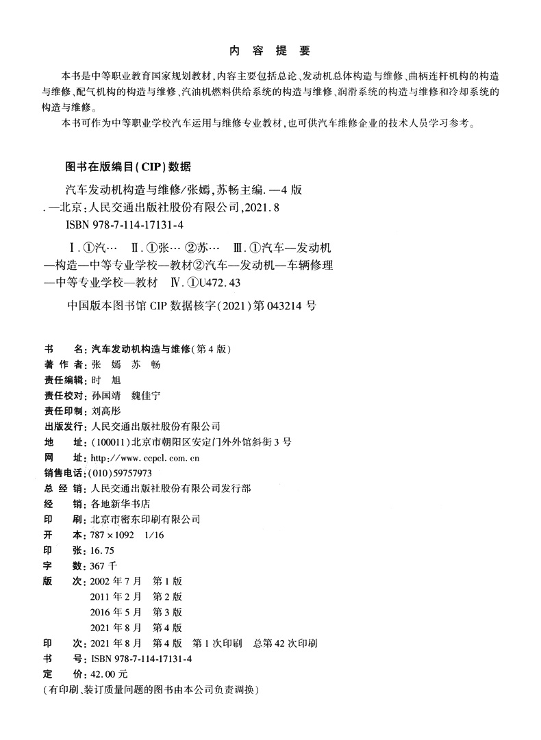 书名:汽车发动机构造与维修(第4版)