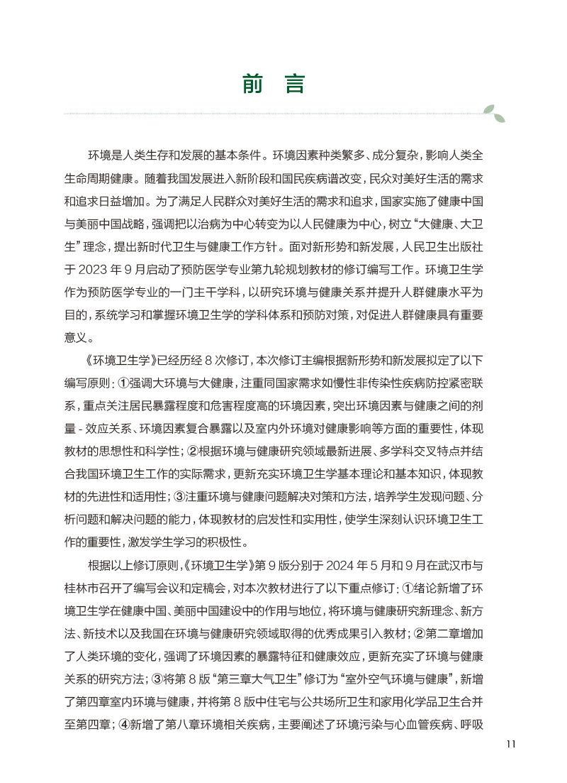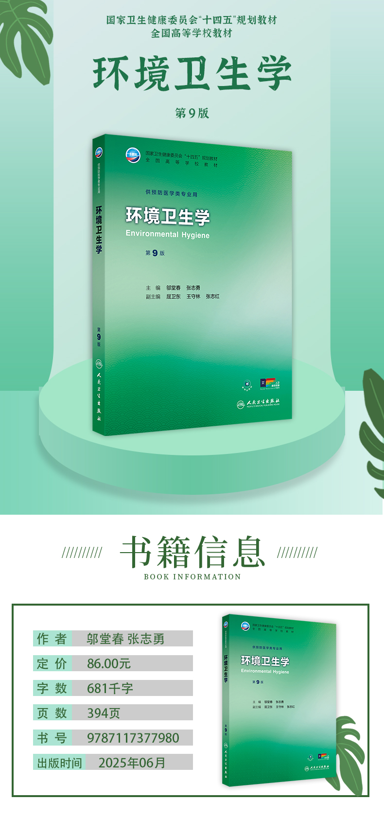 环境卫生学 第9九版 十四五规划教材全国高等学校教材 邬堂春 张志勇 主编 供预防医学类专业用 9787117377980人民卫生出版社