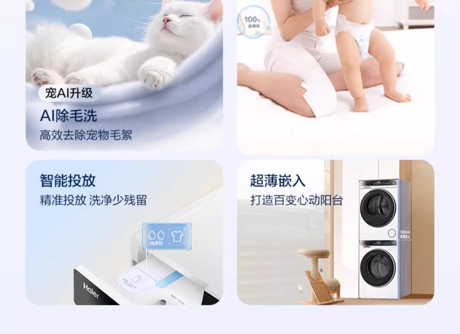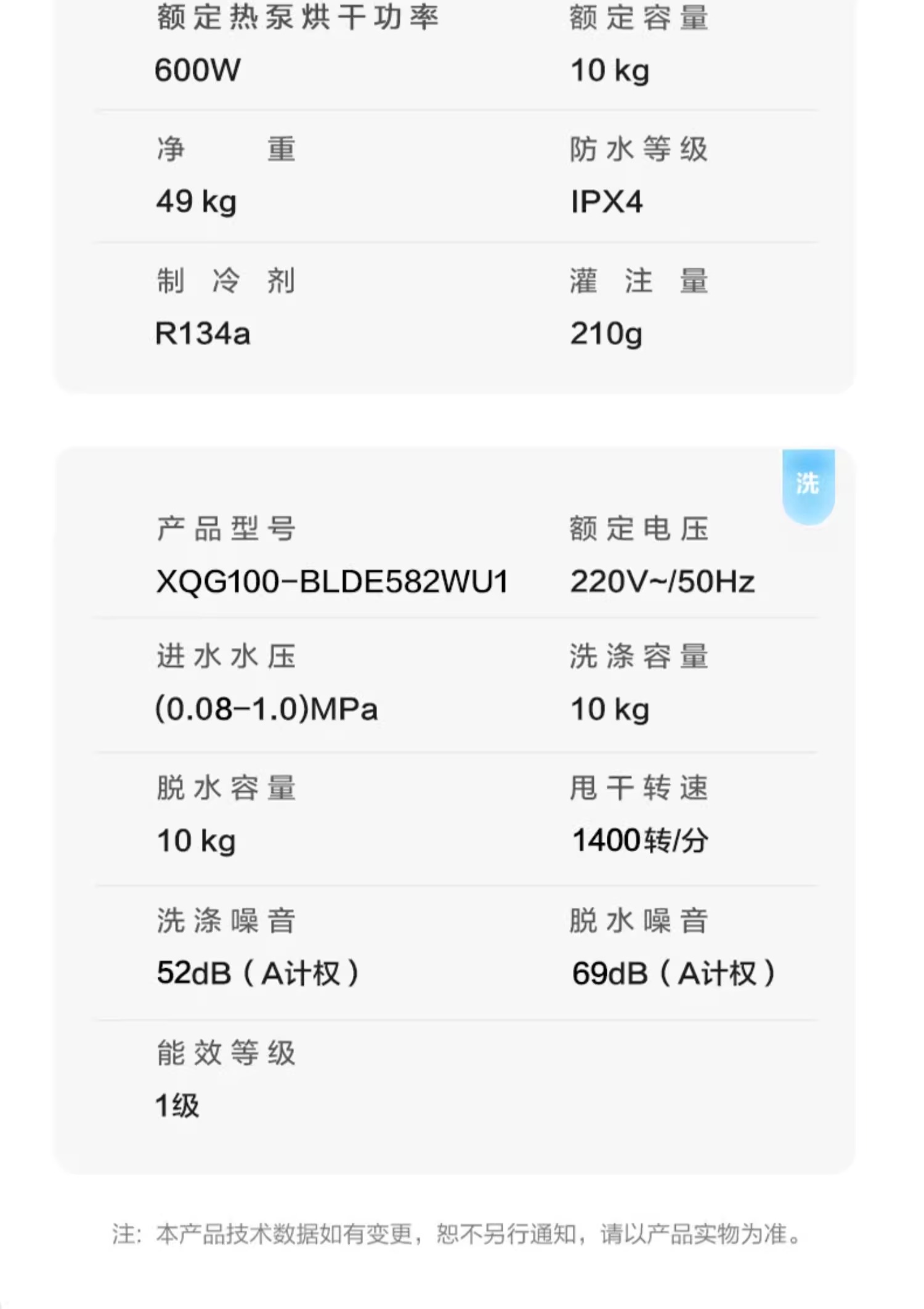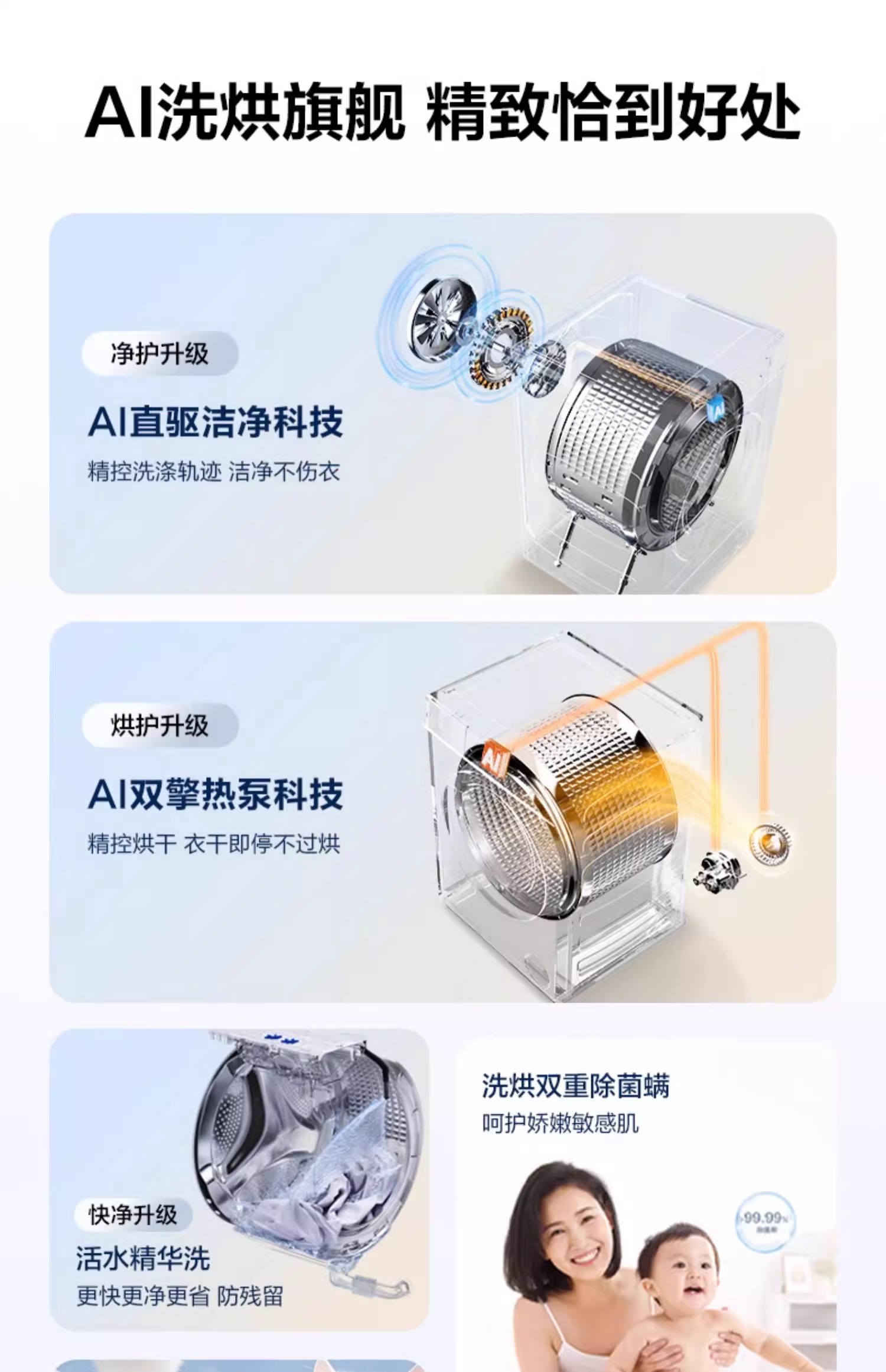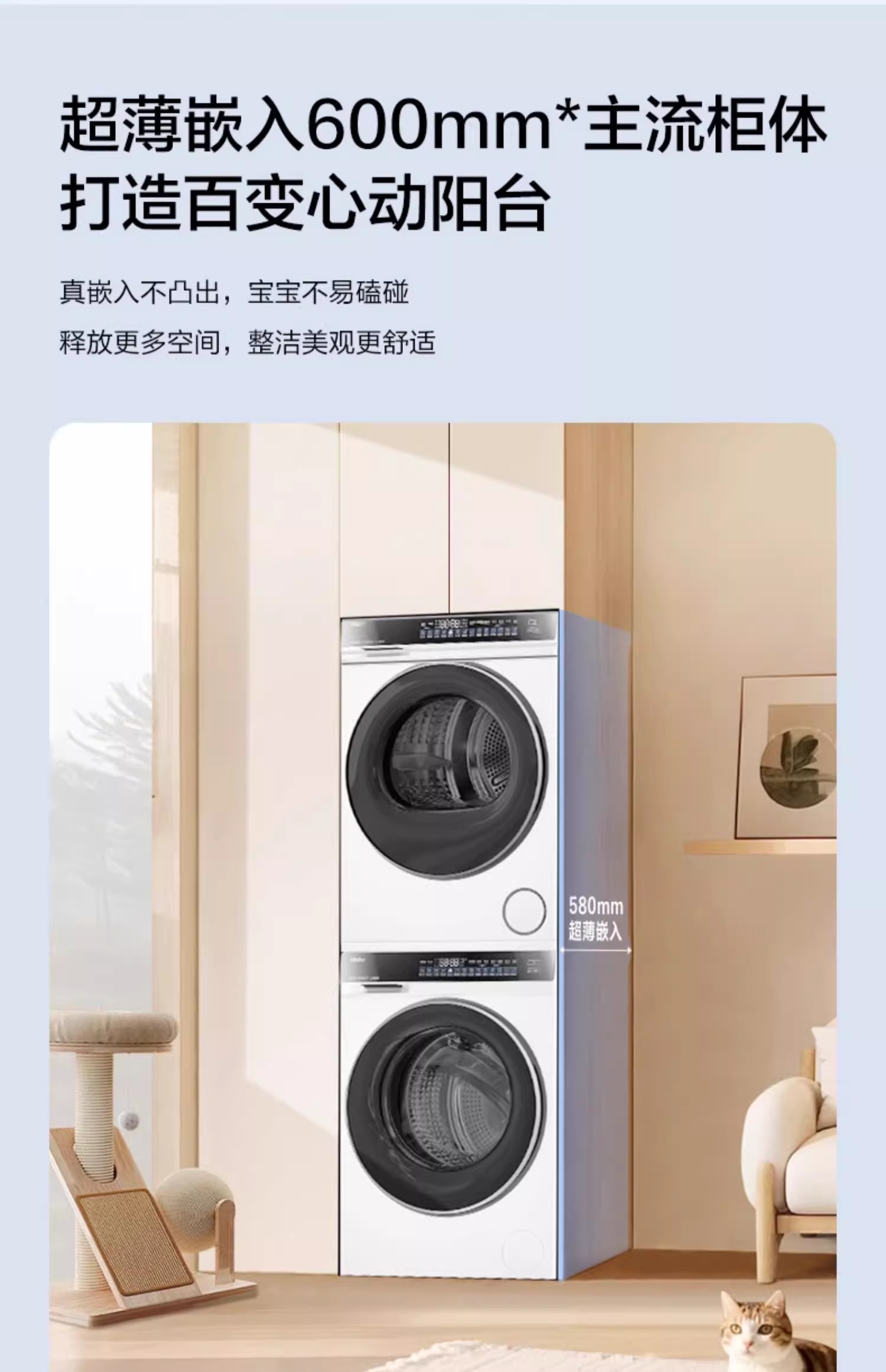 海尔582W洗烘套装精华洗衣机双擎直驱3D热泵烘干机XQG100-BLDE582WU1+GA100-STF582WU1