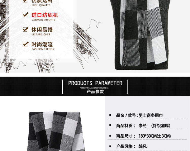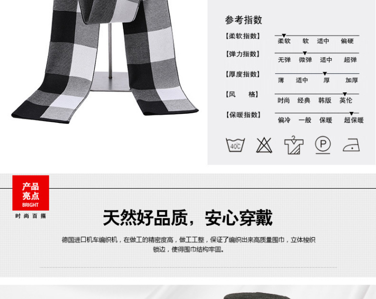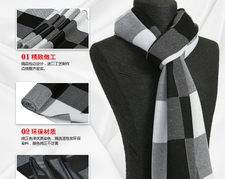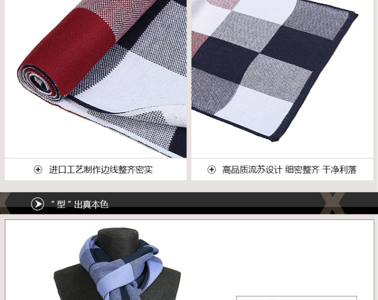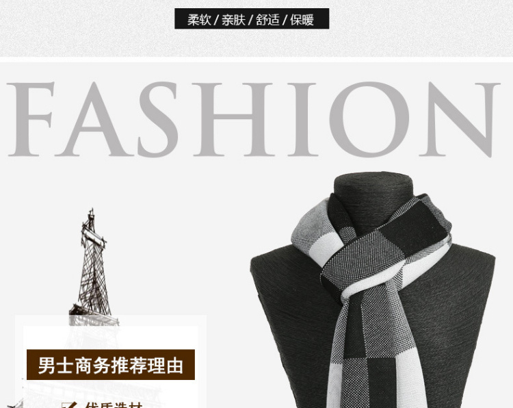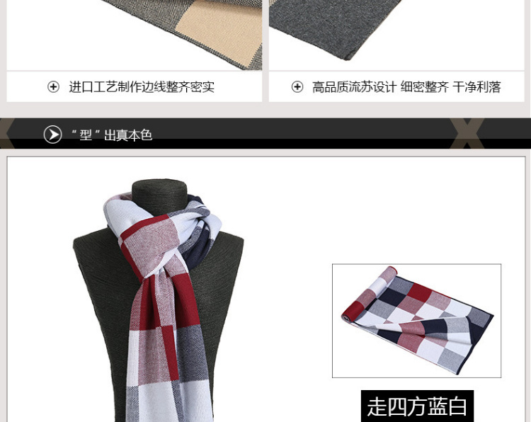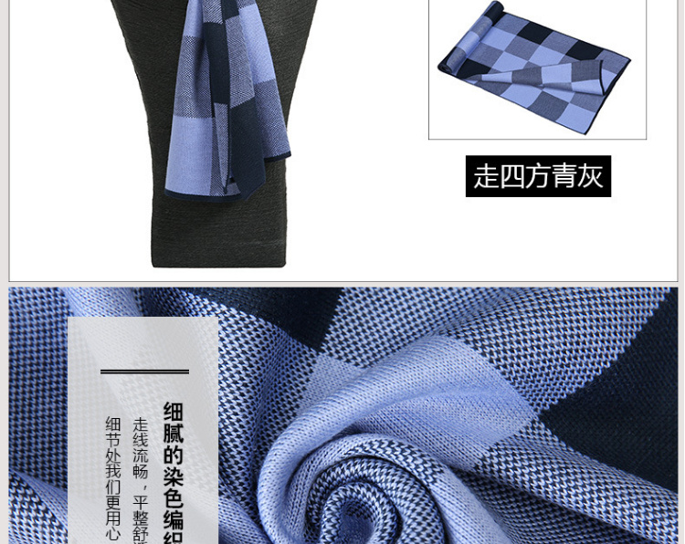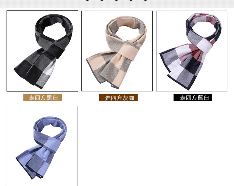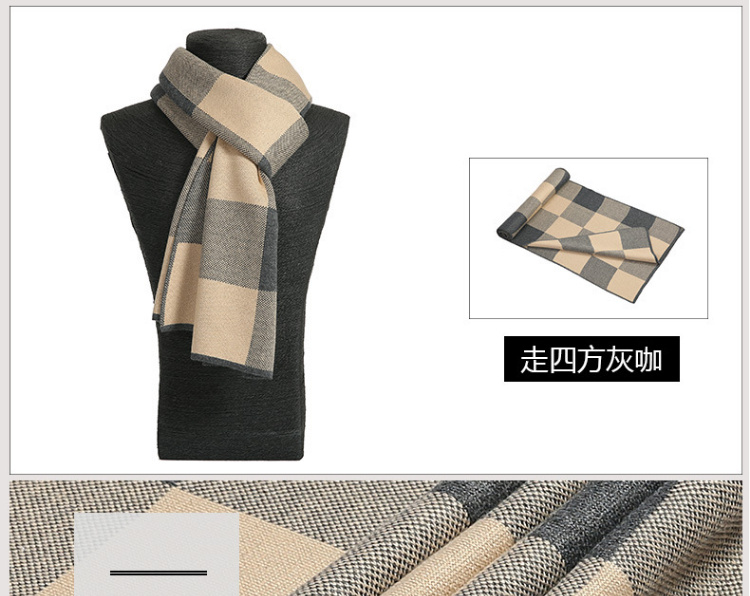 【男士围巾】-秋冬男士加厚保暖经典格子百搭商务针织仿羊绒围脖