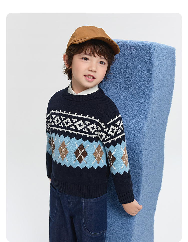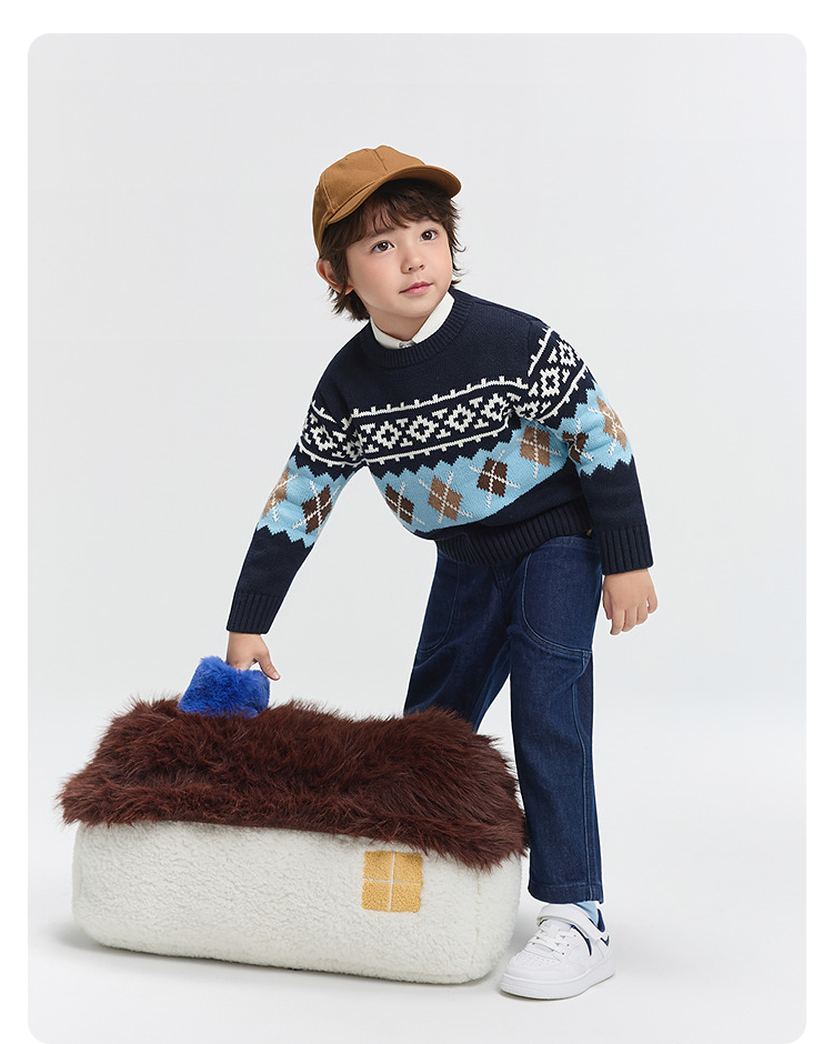 巴拉巴拉balaOne童装儿童毛衫男童2025新款冬装费尔岛毛衣亲子款