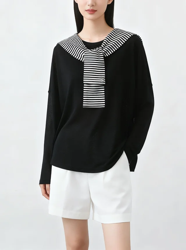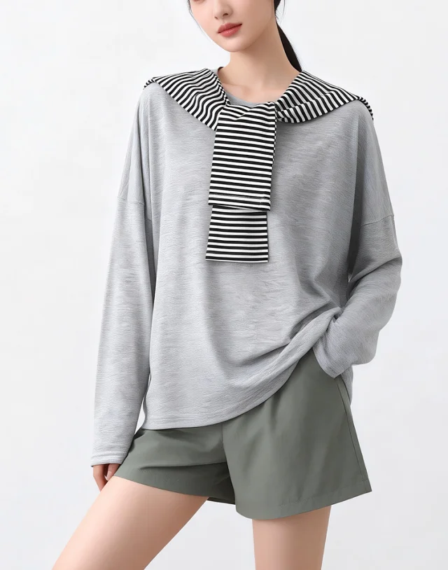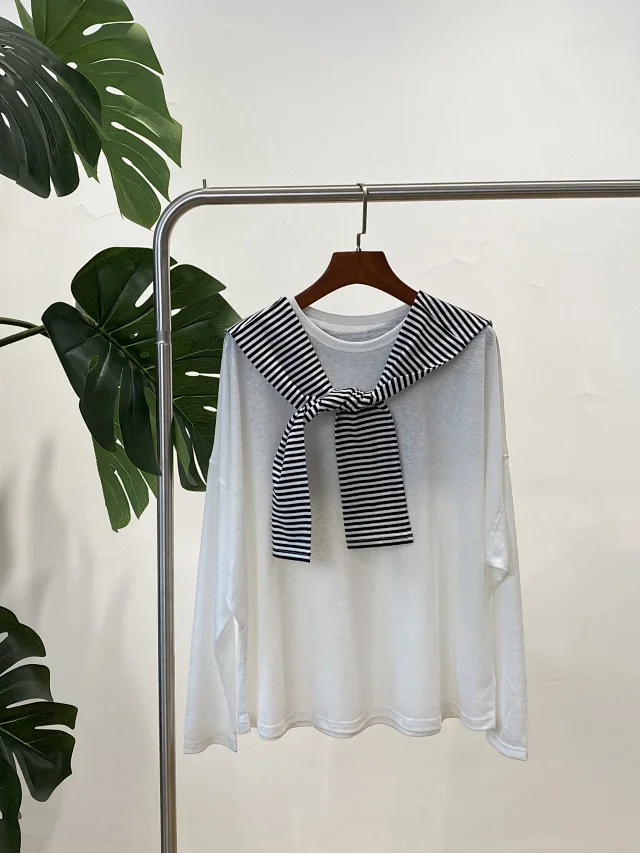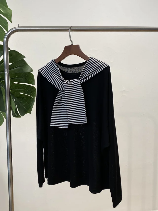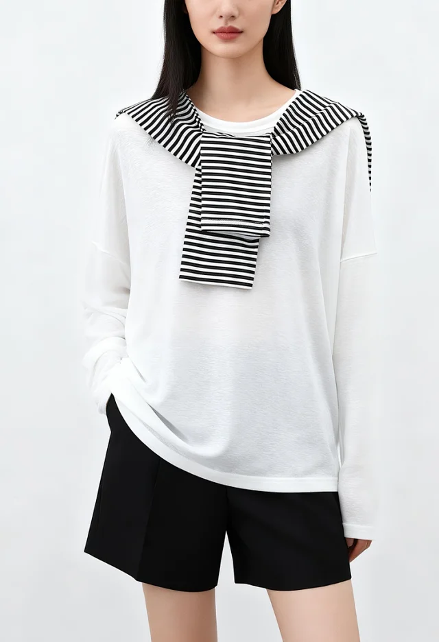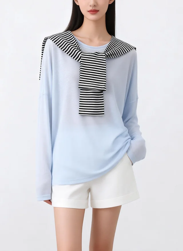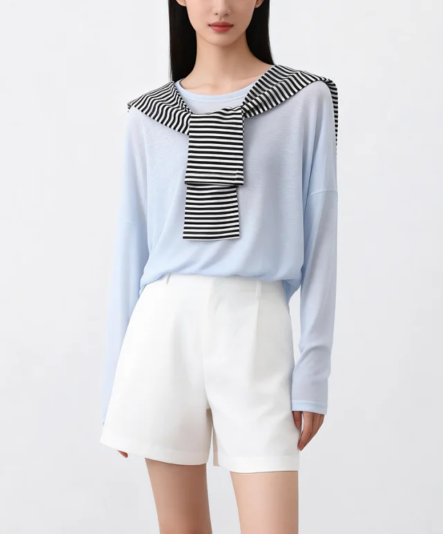 弱化微透小尴尬,条纹元素点亮整体造型,打破纯色单调,单穿简约、叠穿有层次,随手一搭就是轻奢精致感,日常通勤、出门约会都很出彩。