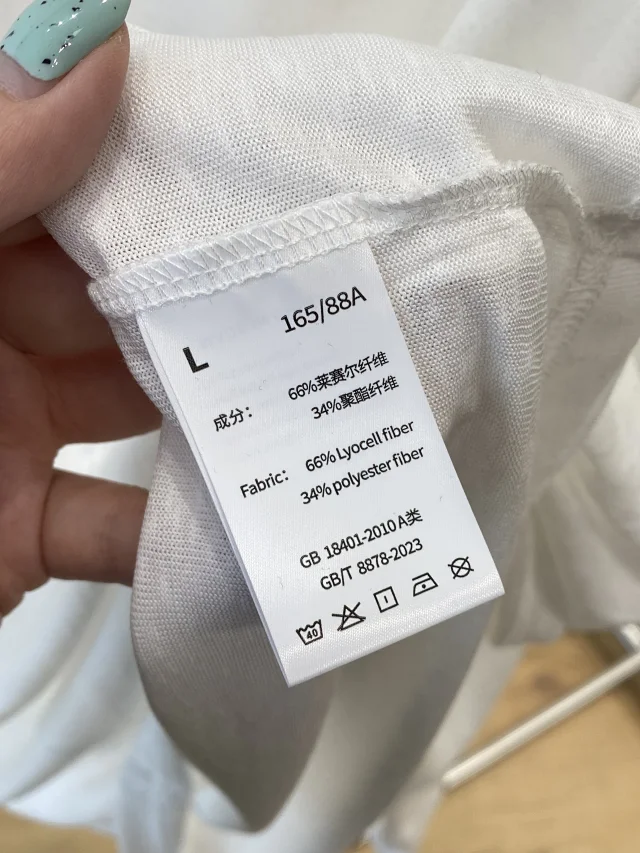 【成衣成分】:66%莱赛尔纤维(天丝) 34%聚酯纤维
