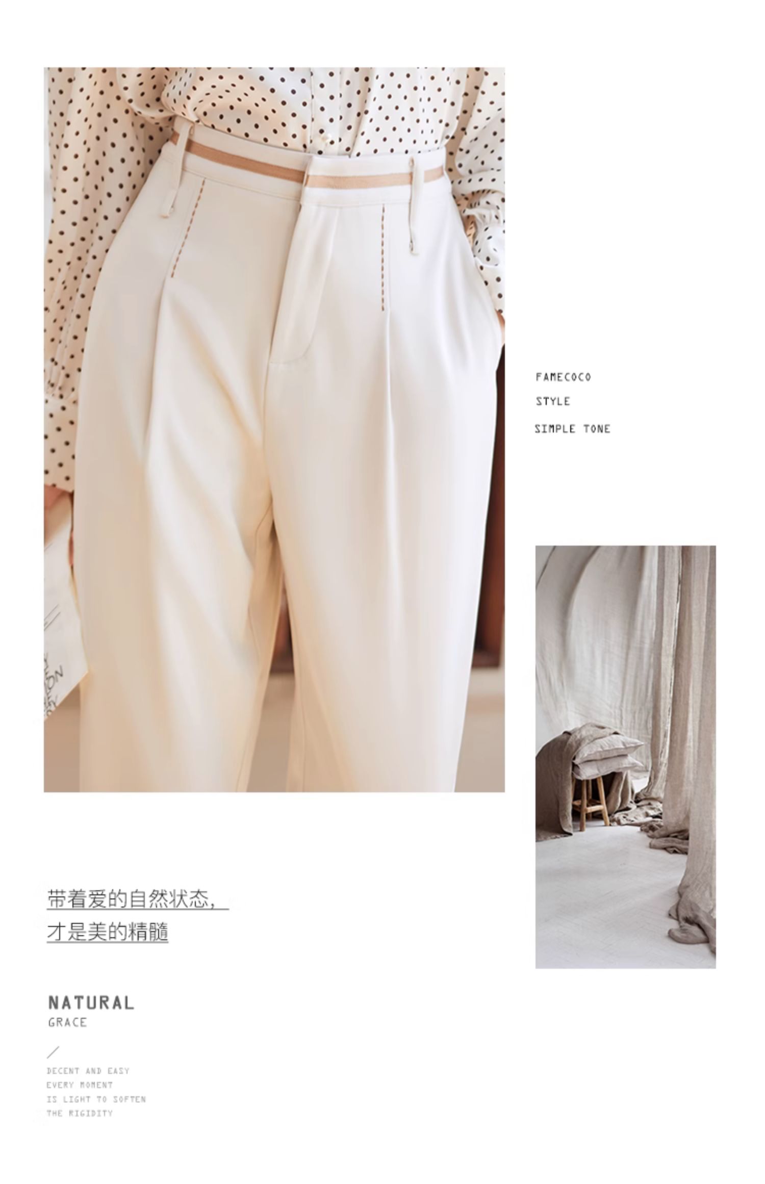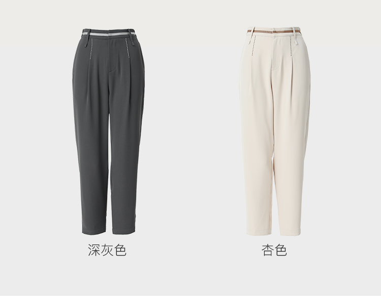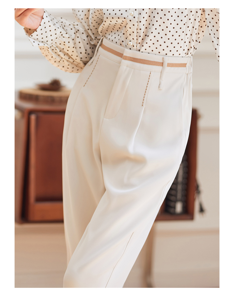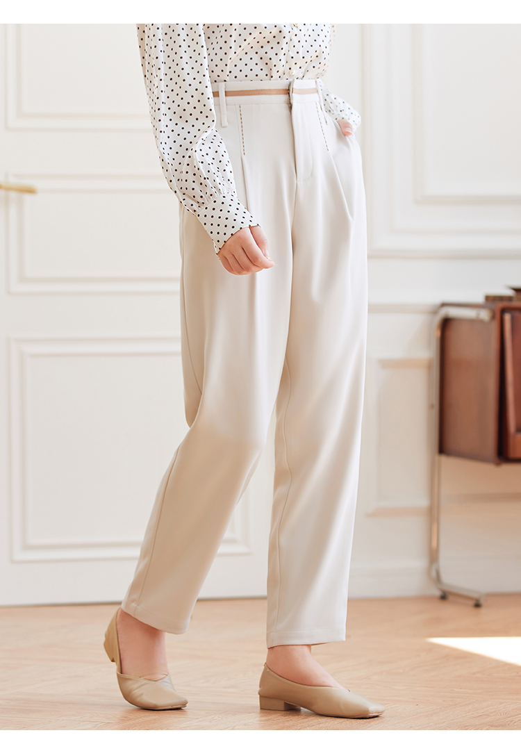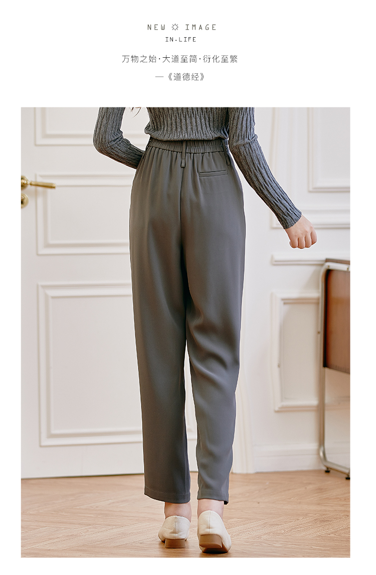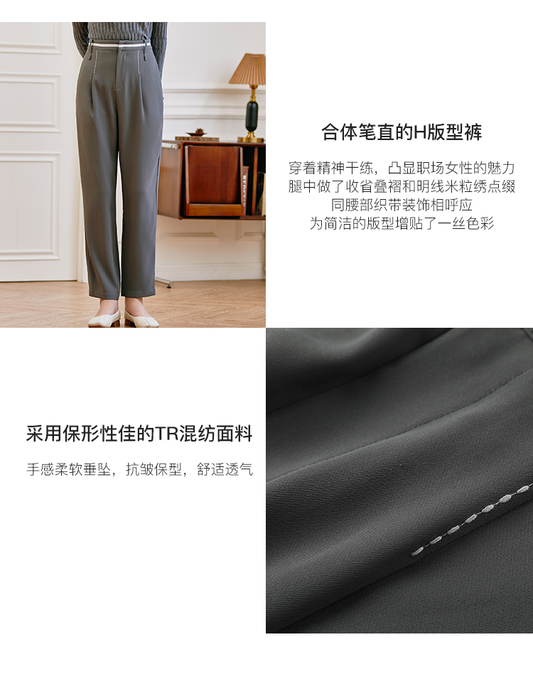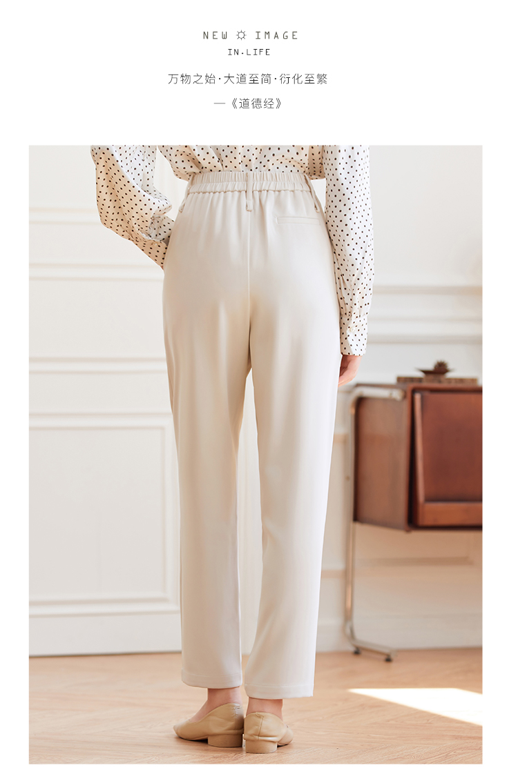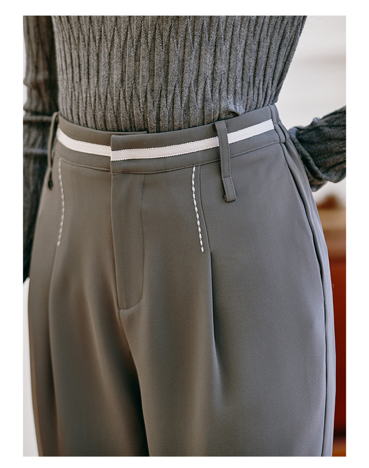 Famecoco范可儿职业正装西装裤女秋季松紧腰直筒垂感工作通勤长裤F225GA011