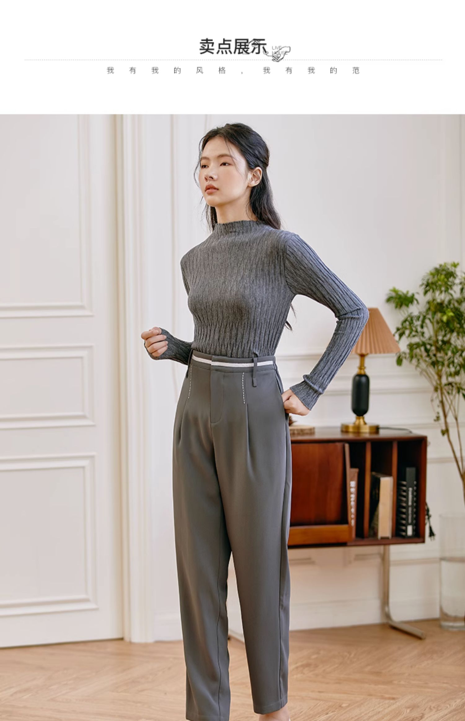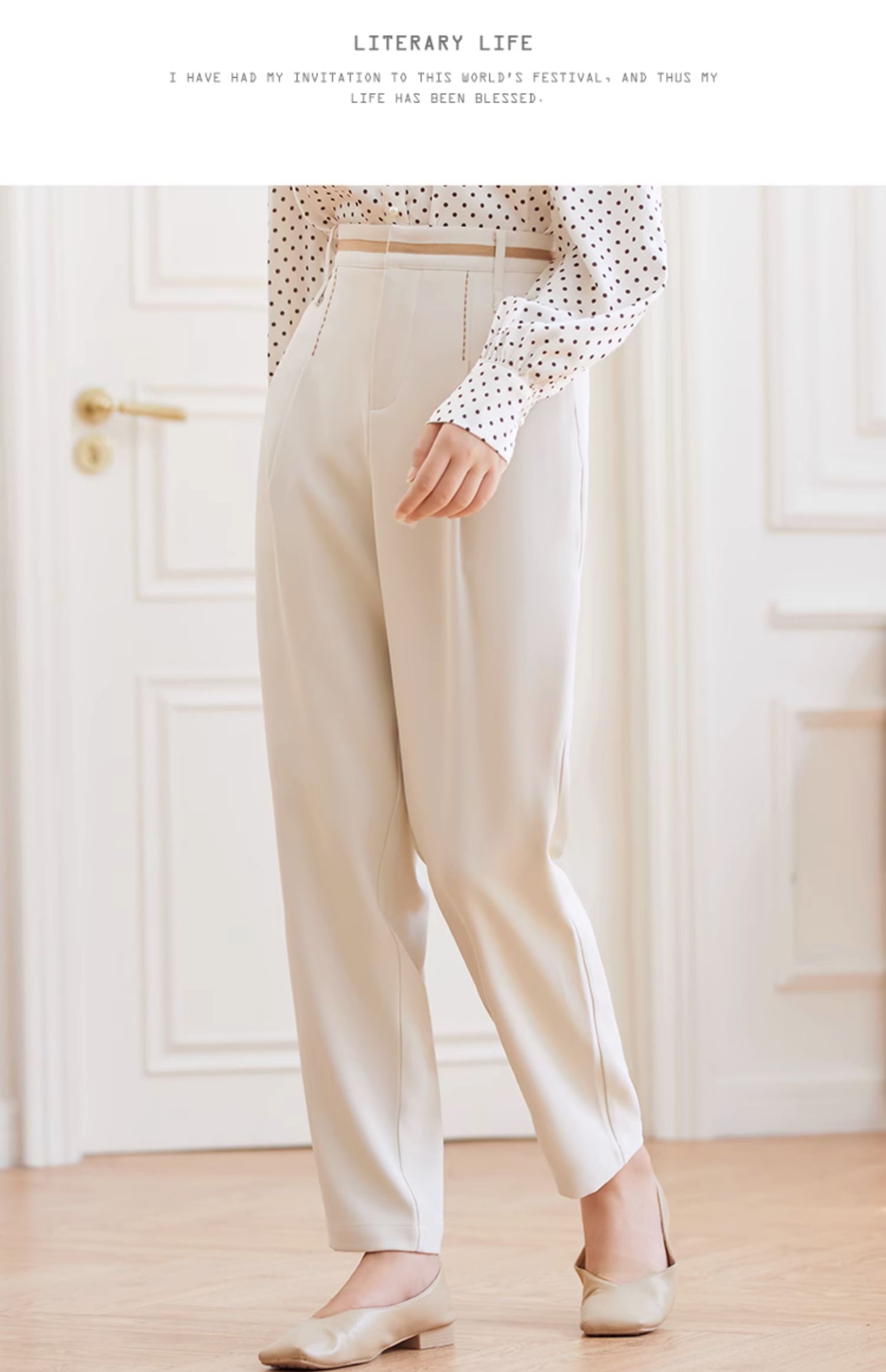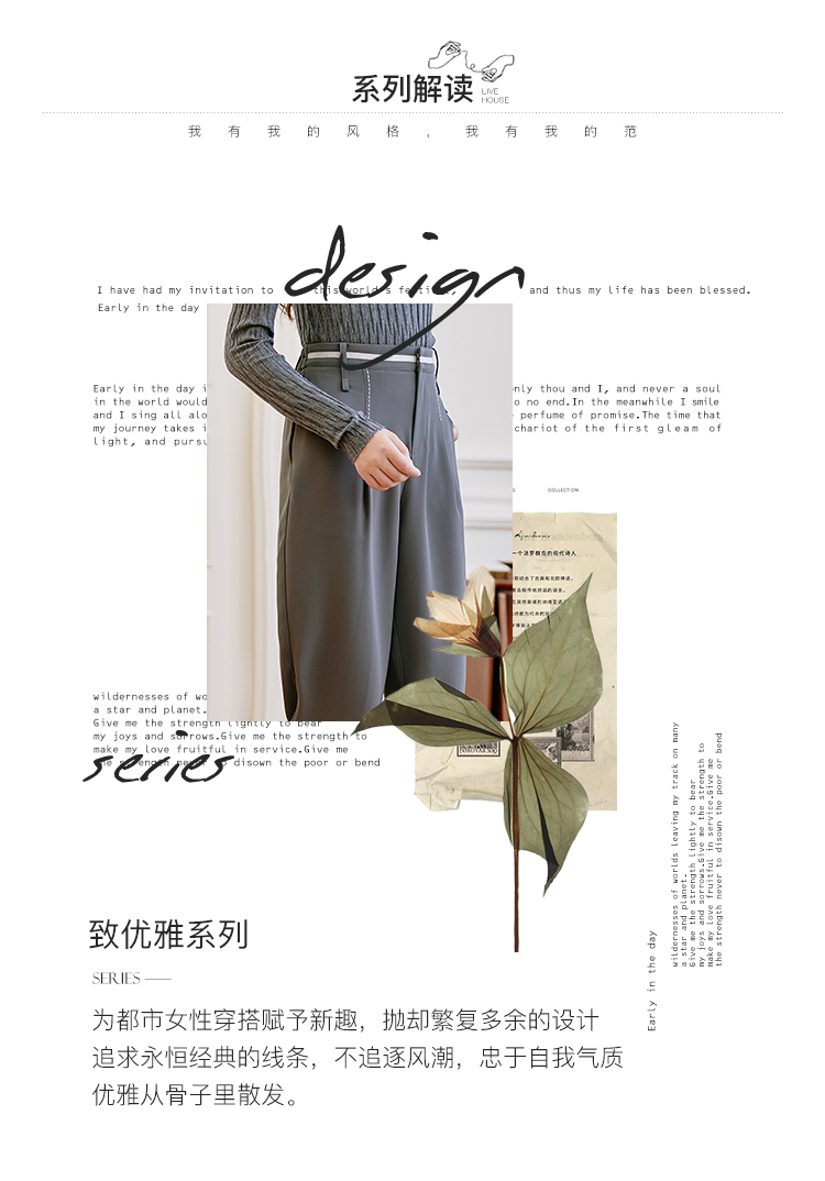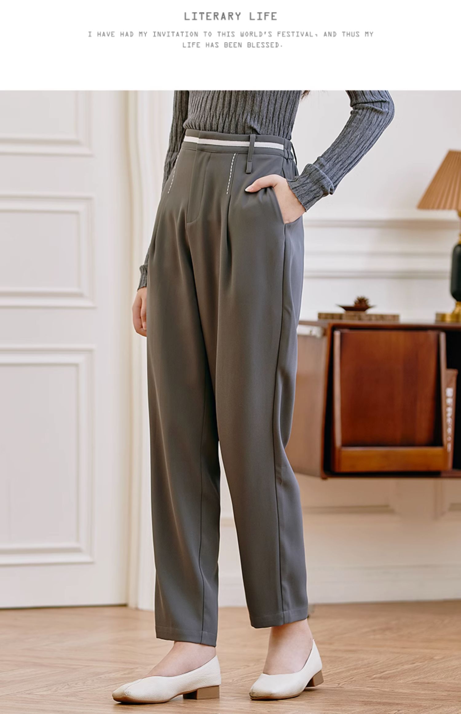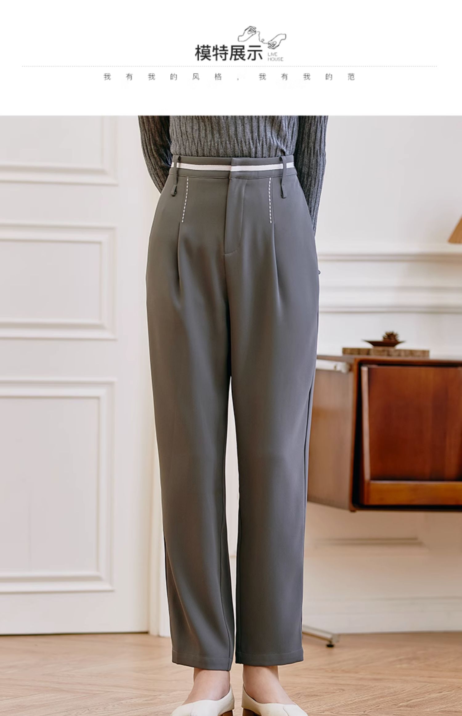 Famecoco范可儿职业正装西装裤女秋季松紧腰直筒垂感工作通勤长裤F225GA011