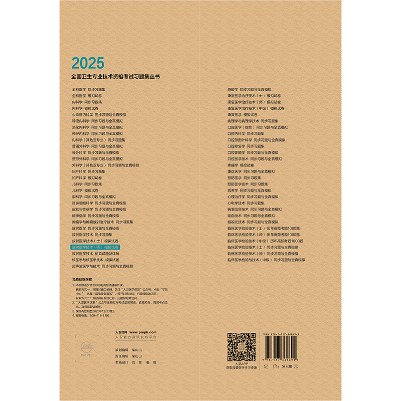 2025放射医学技术(师)模拟试卷 全国卫生专业技术资格考试习题集丛书 适用专业放射医学技术(师)9787117368698人民卫生出版社