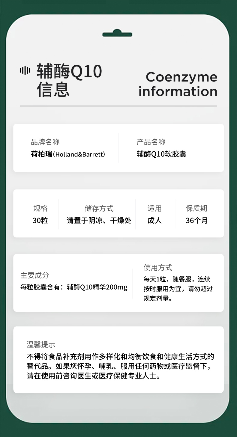 【含邮含税】HOLLAND&BARRETT荷柏瑞辅酶Q10胶囊200mg30粒/瓶