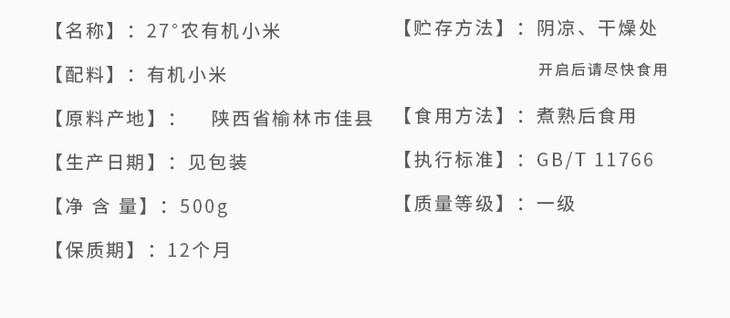 27°农有机小米 500g/罐