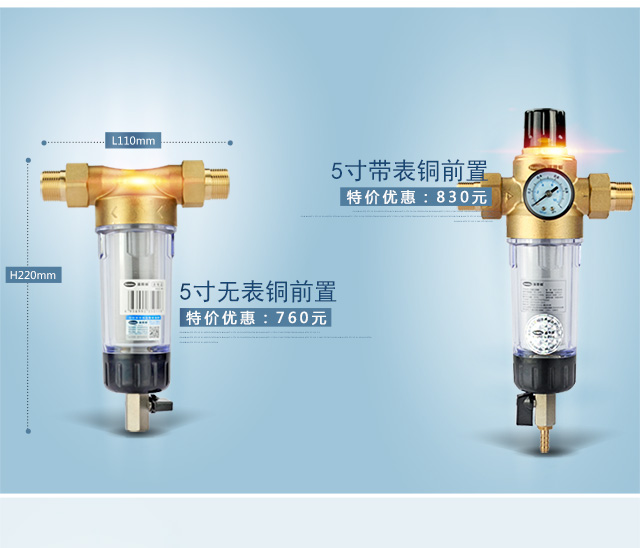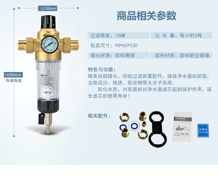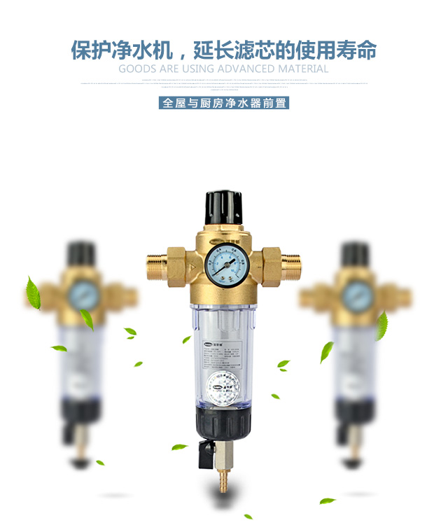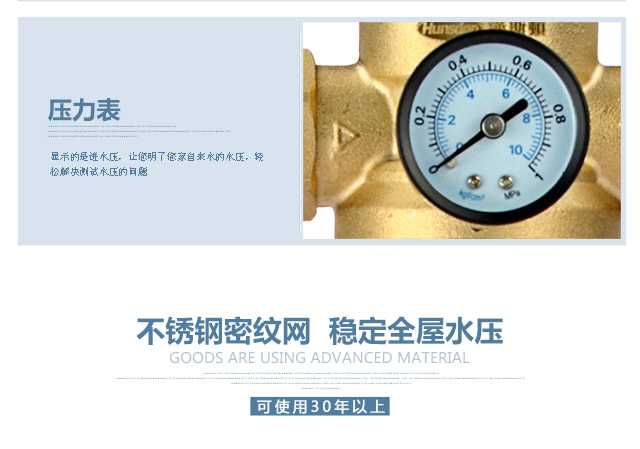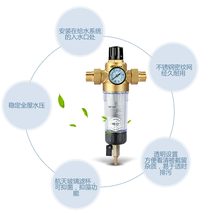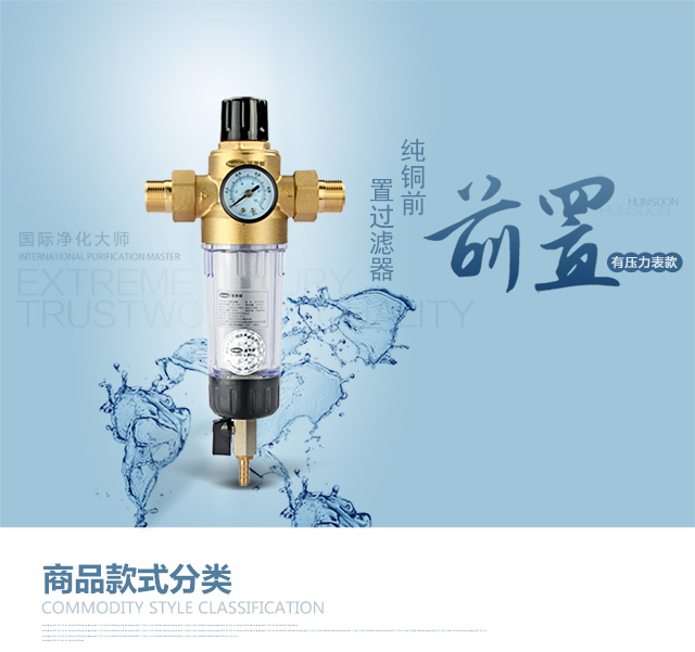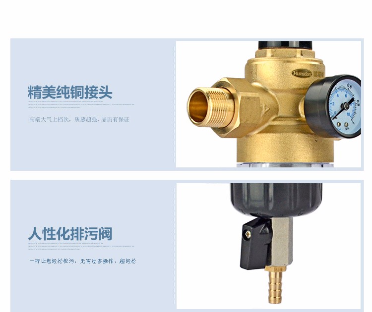 汉斯顿(Hunsdon) 家用前置自来水过滤器 直冲式无需换芯净水器除泥沙铁锈 有表稳压