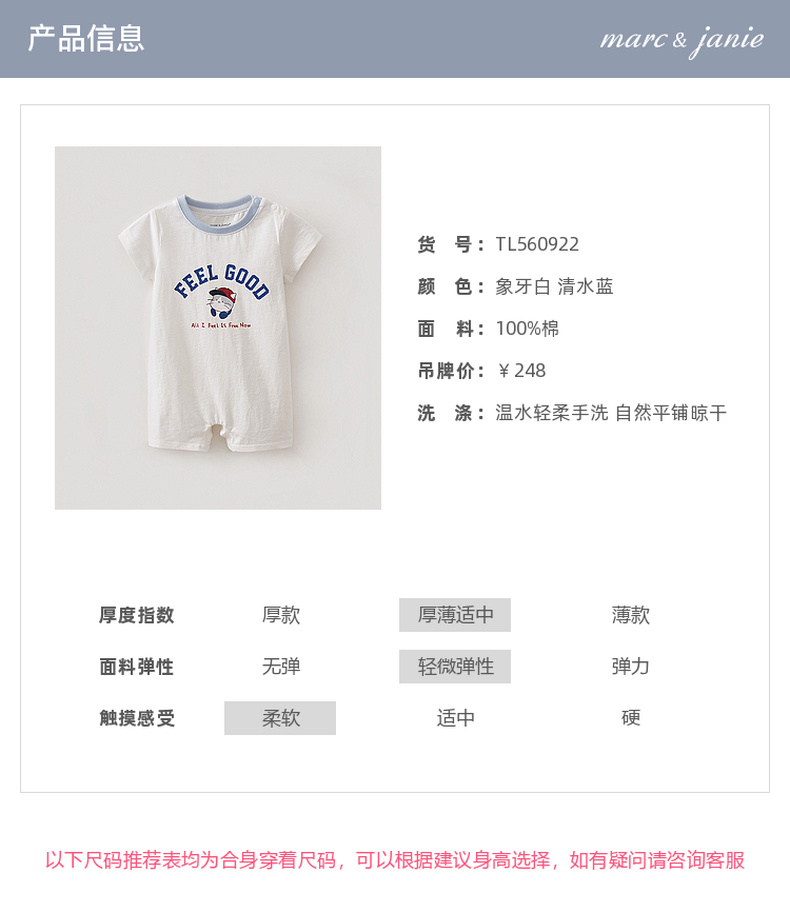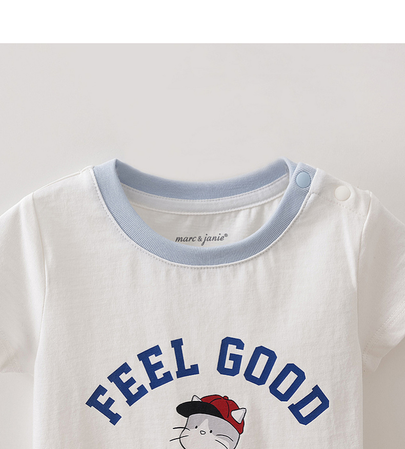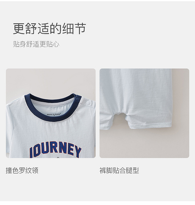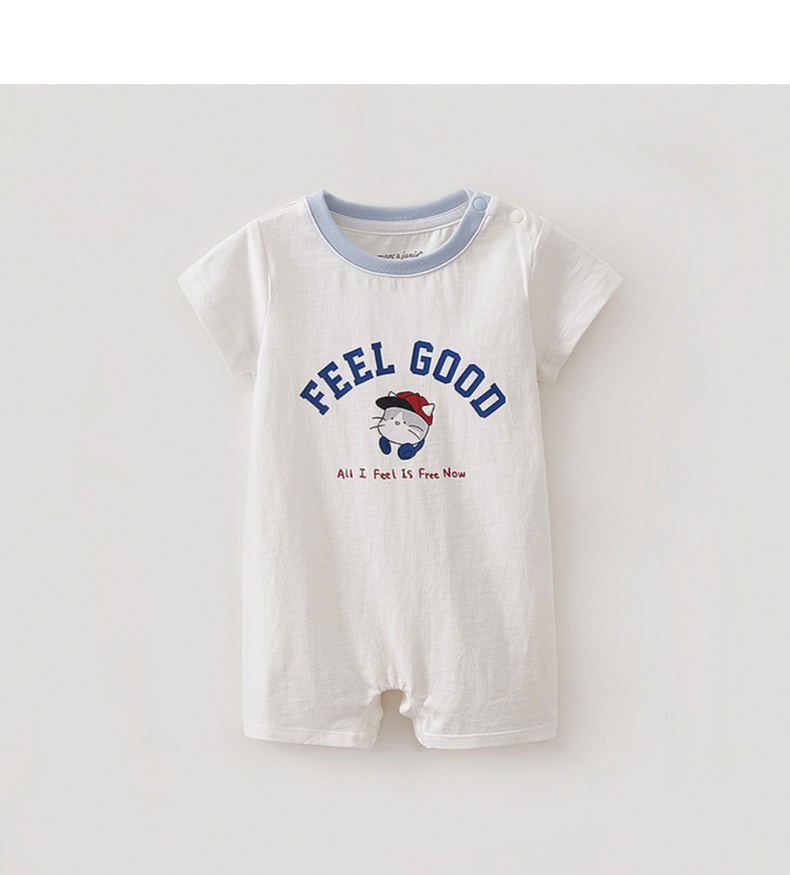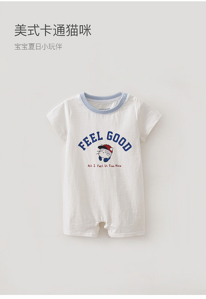 马克珍妮快乐猫咪男童A类纯棉连体衣2026年夏装新款560922