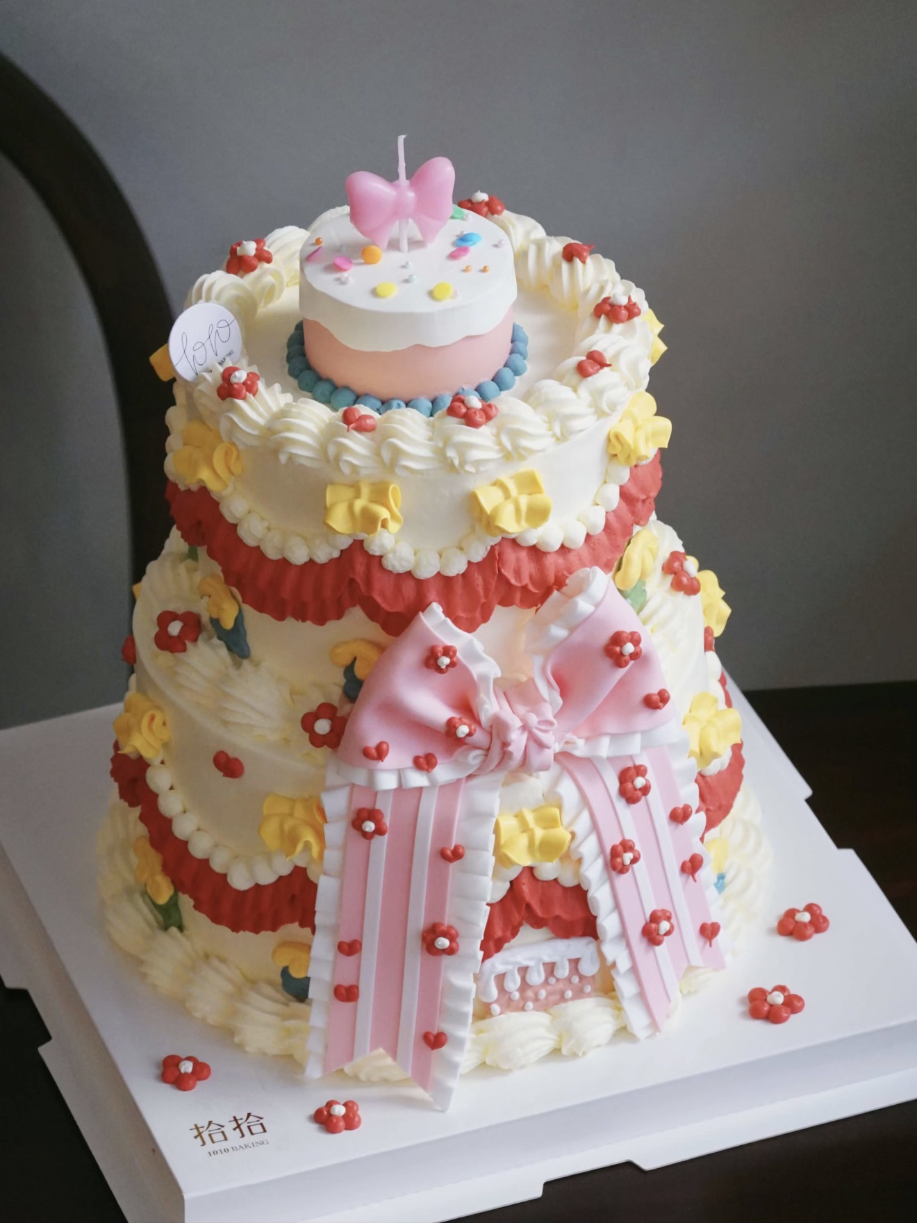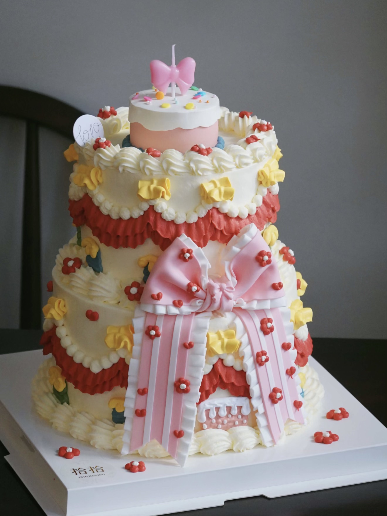 「蝴蝶结·萝莉塔」复古裱花·100%动物奶油(附图5寸加高+7寸加高双层·提前5天预订)
