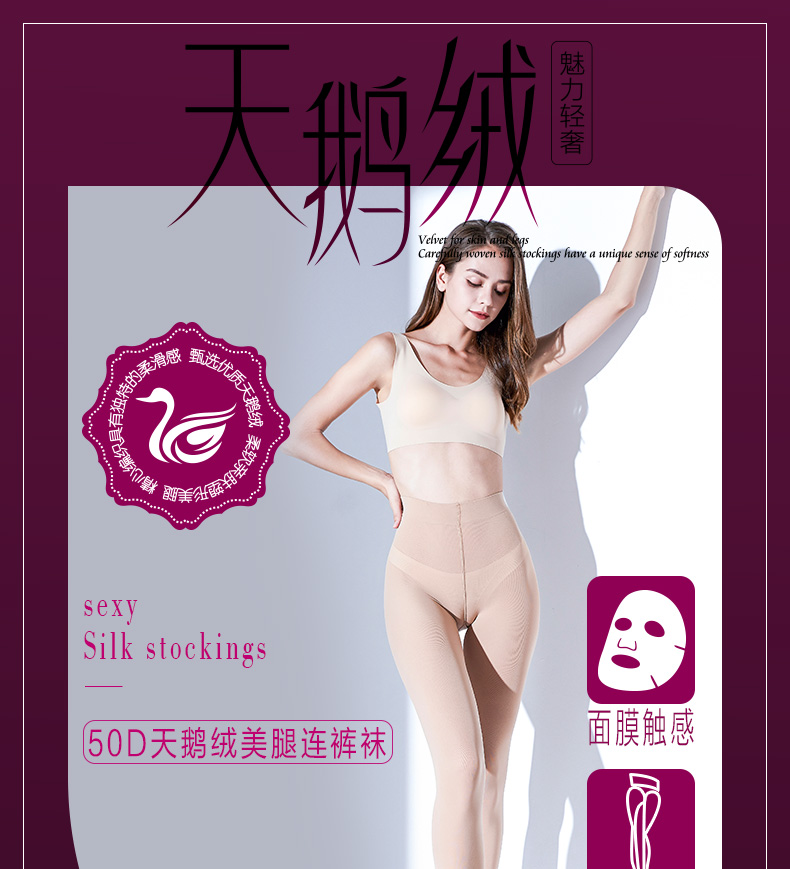 丝袜女50D微透天鹅绒面膜感柔软细腻弹力塑形美腿春夏性感连裤袜