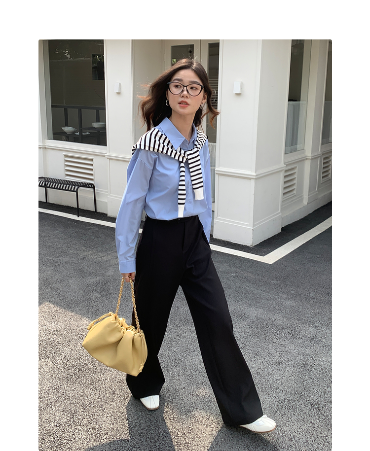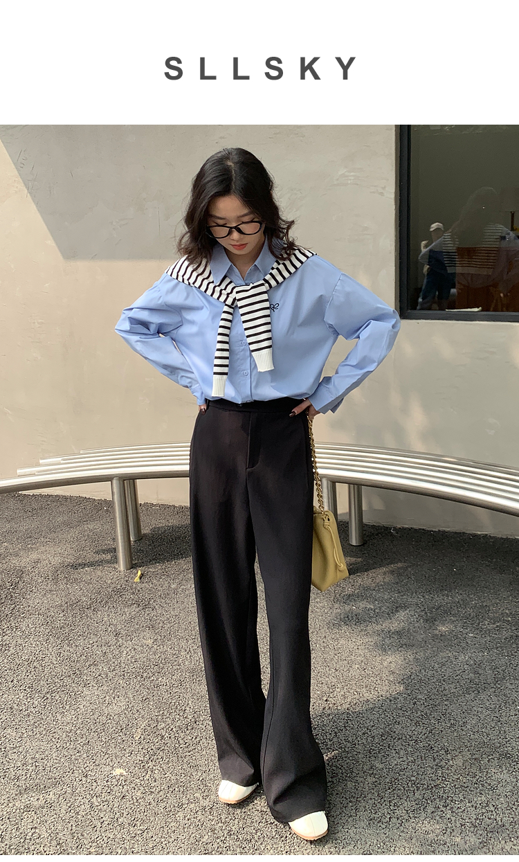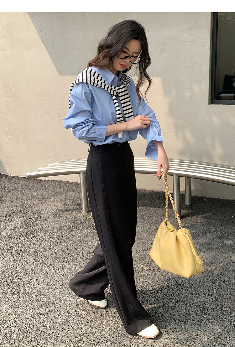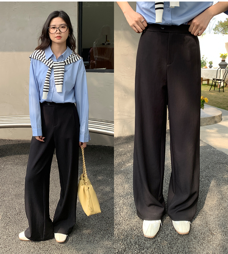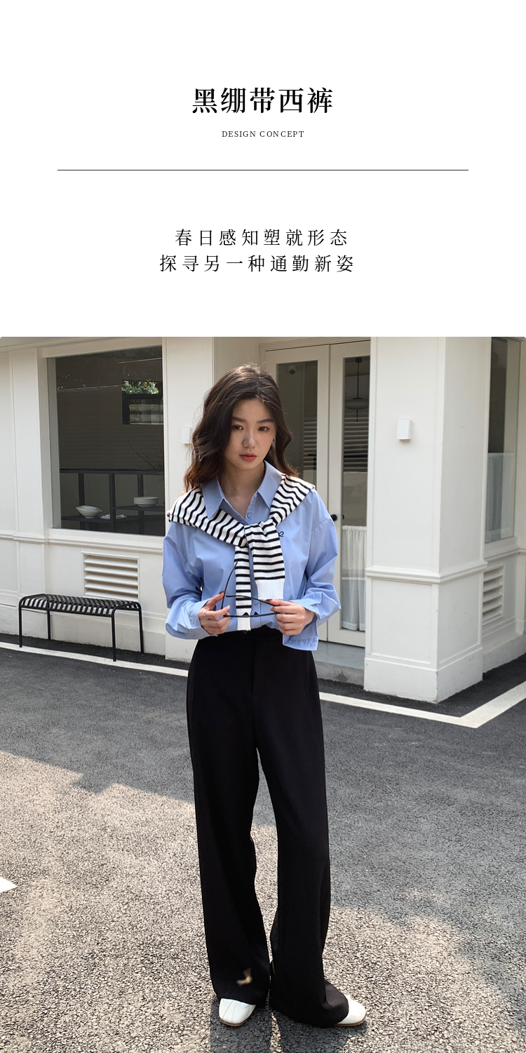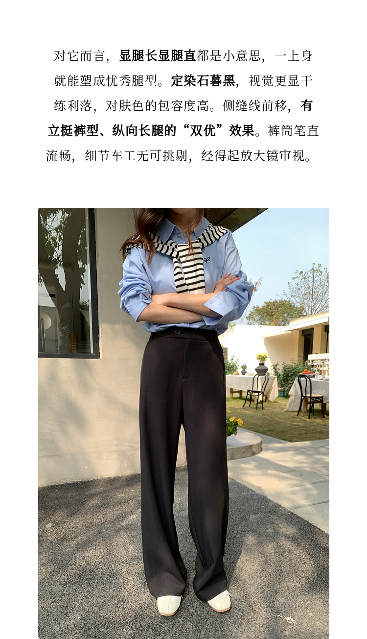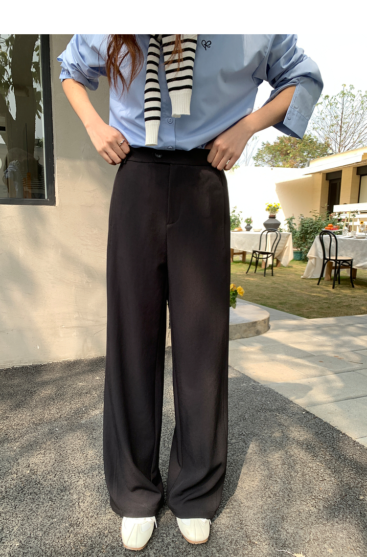【五折购】熙世界黑色窄版直筒西装裤女春秋2025新款宽松垂感阔腿裤休闲西裤