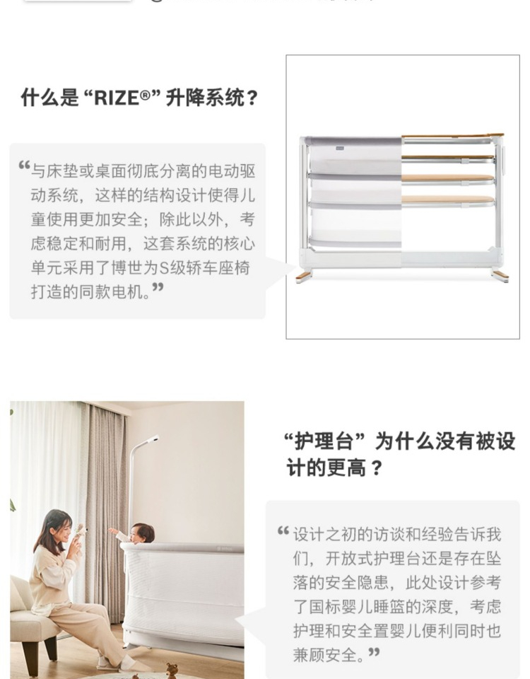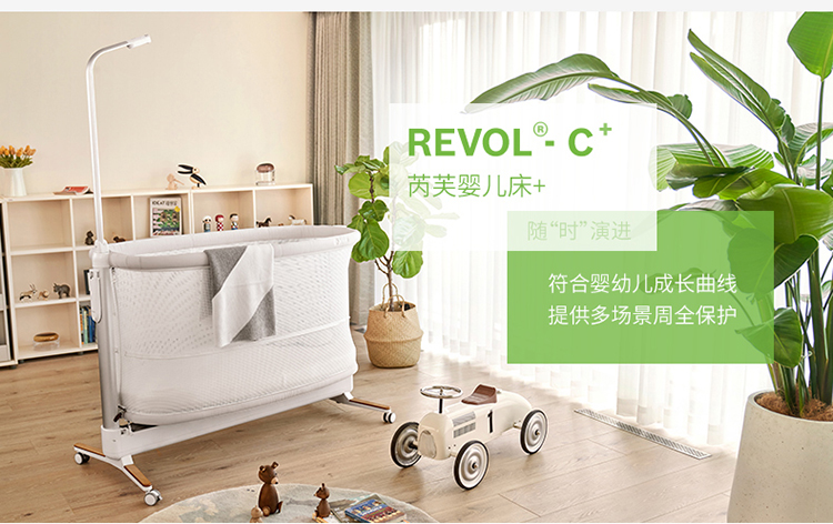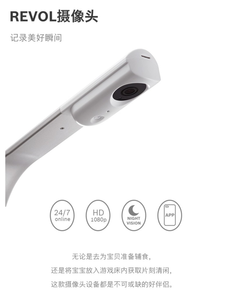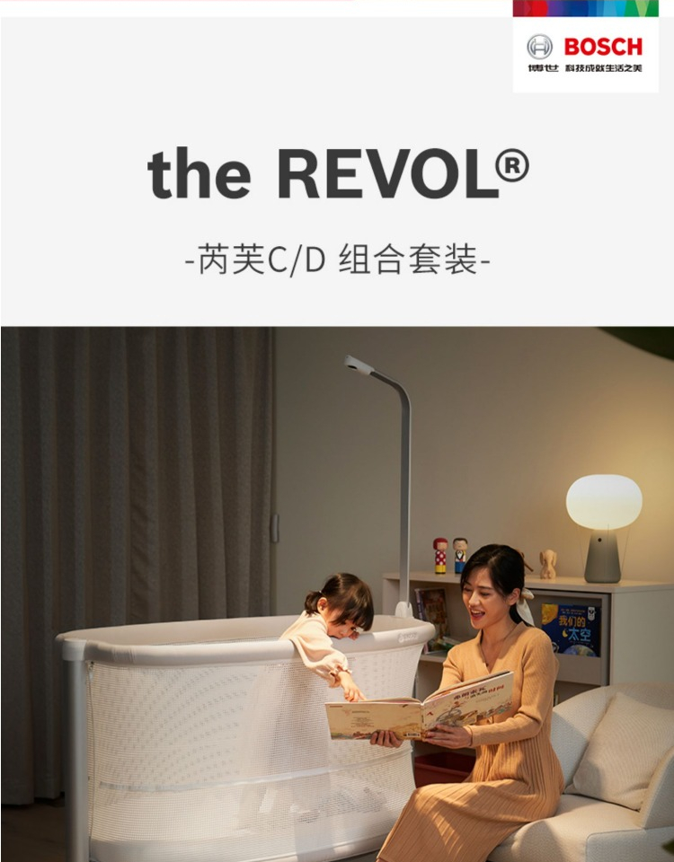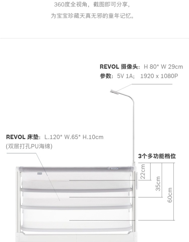 Revol 博世智能4合一多功能婴儿床 3档高度可调节 带婴儿摄像头 可转变成护理台 学习桌