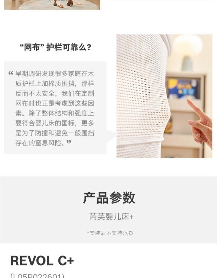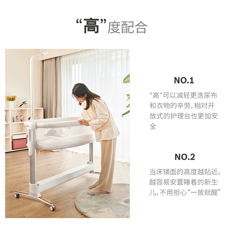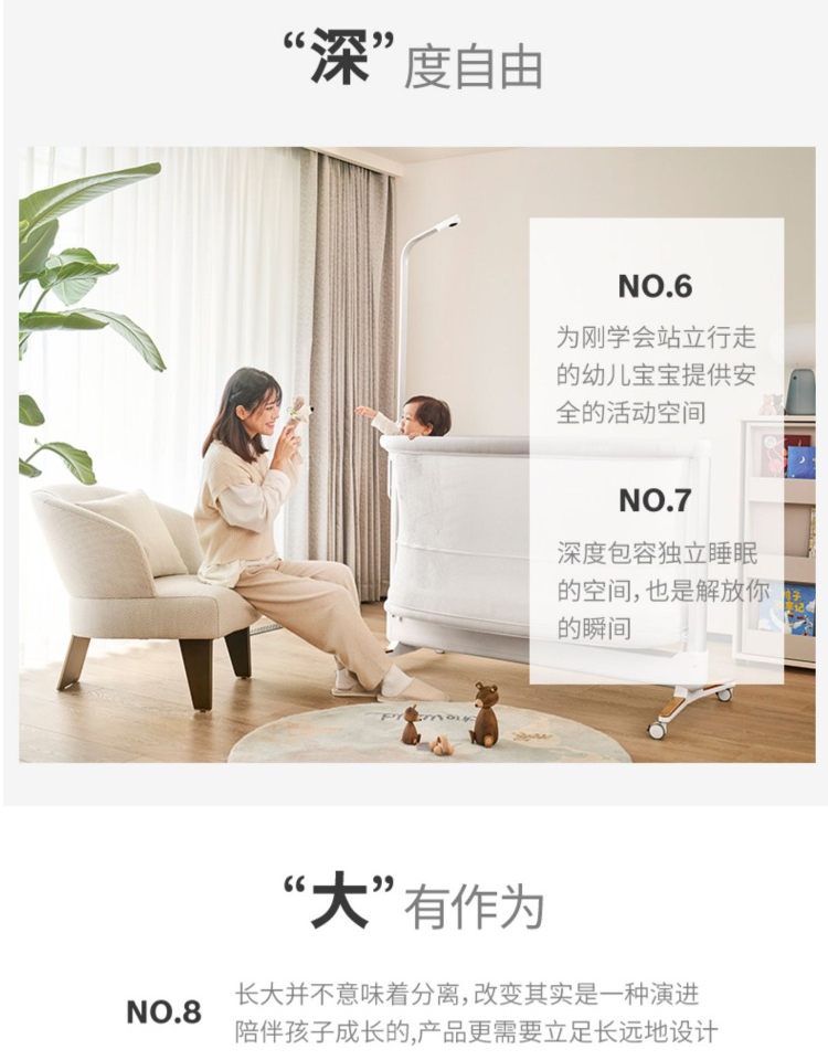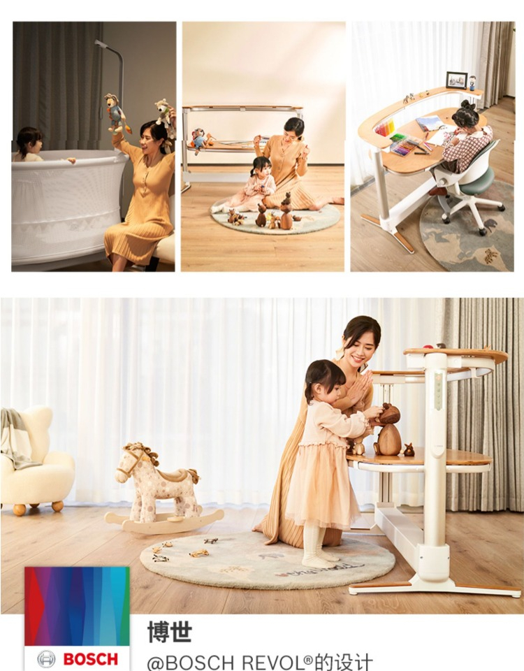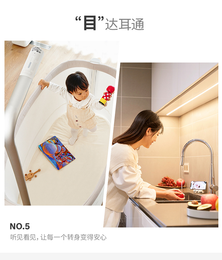 Revol 博世智能4合一多功能婴儿床 3档高度可调节 带婴儿摄像头 可转变成护理台 学习桌