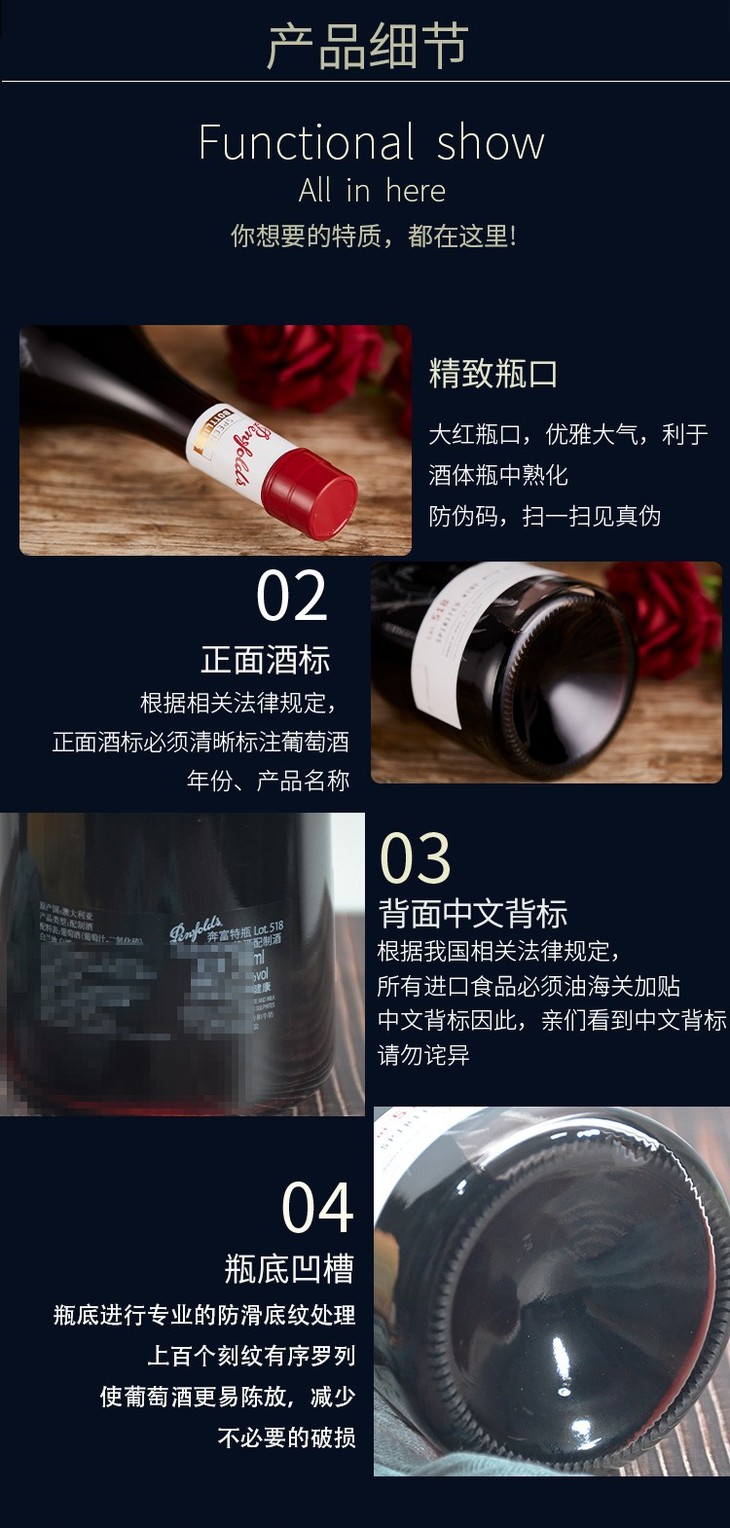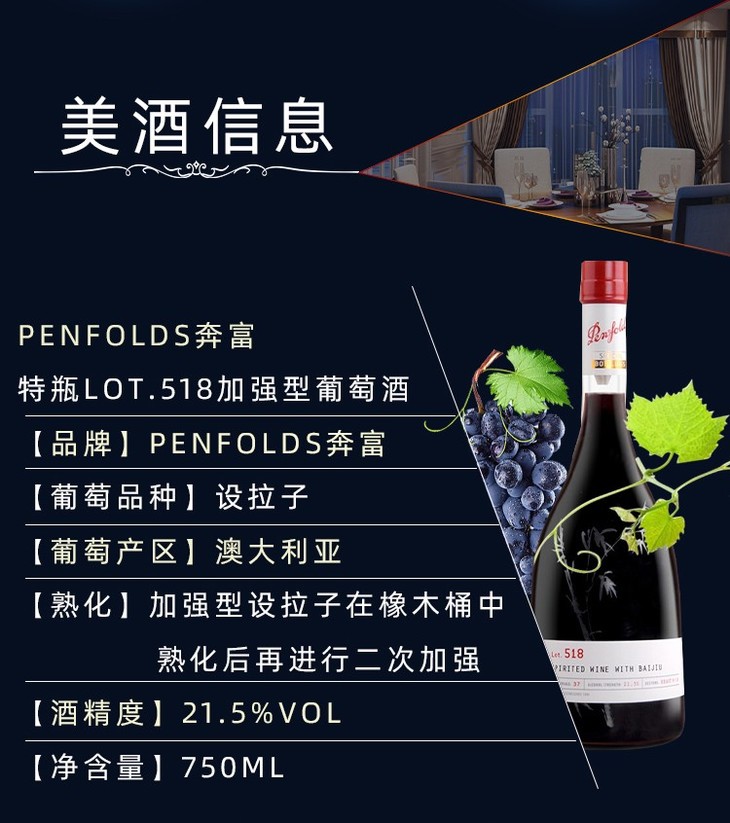 奔富澳大利亚进口葡萄酒特瓶Lot. 518 750ml/1瓶/2瓶/6瓶