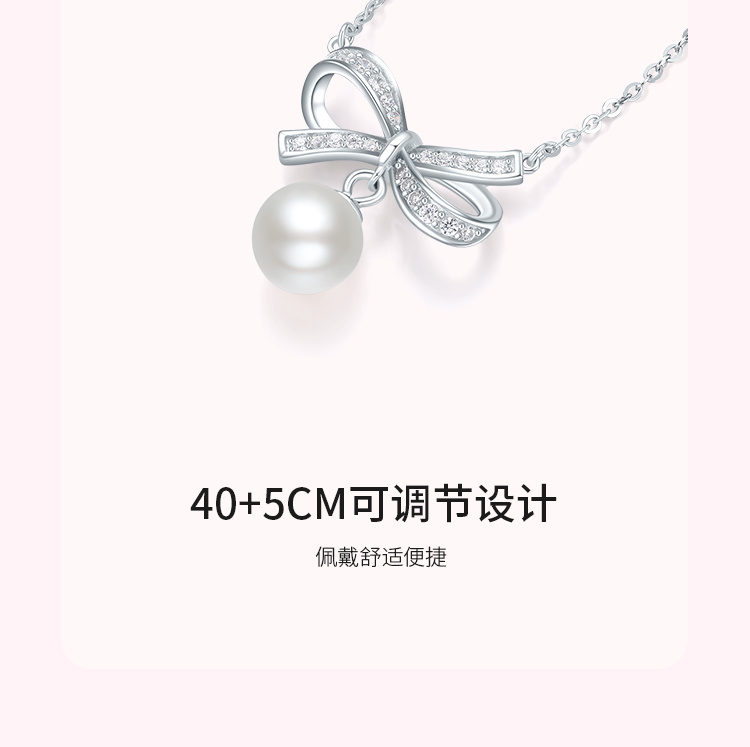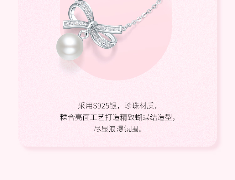 周六福淡水珍珠项链女蝴蝶结链坠S925银优雅送女友送女友礼物