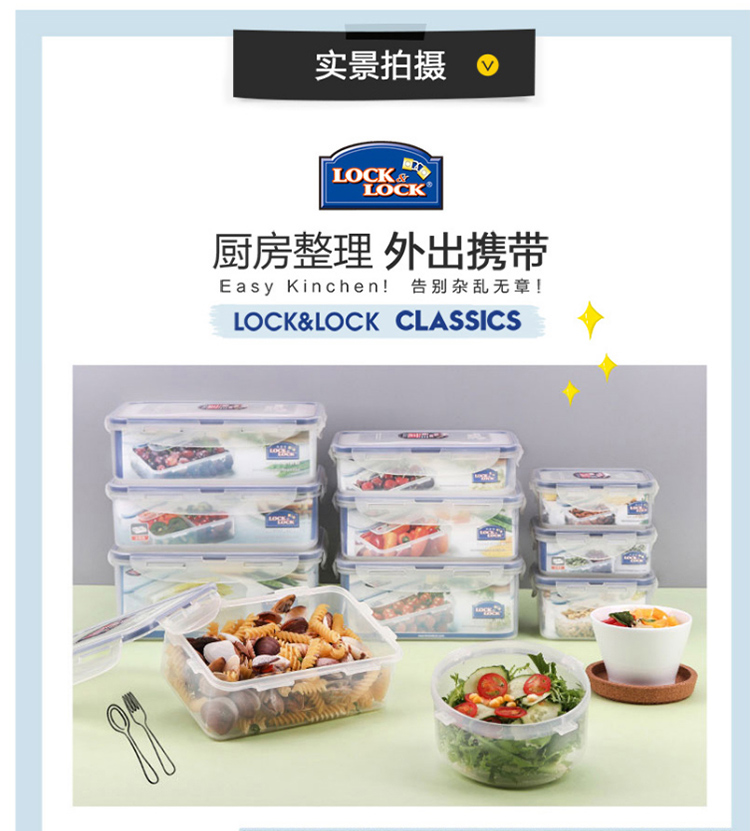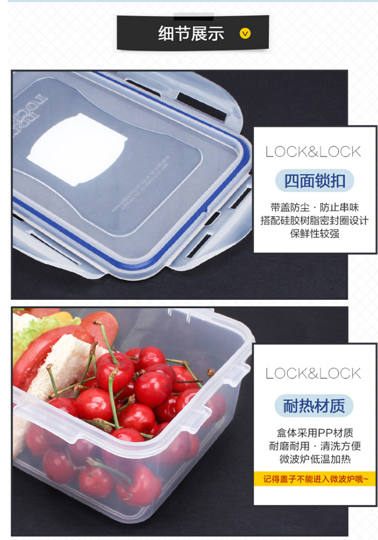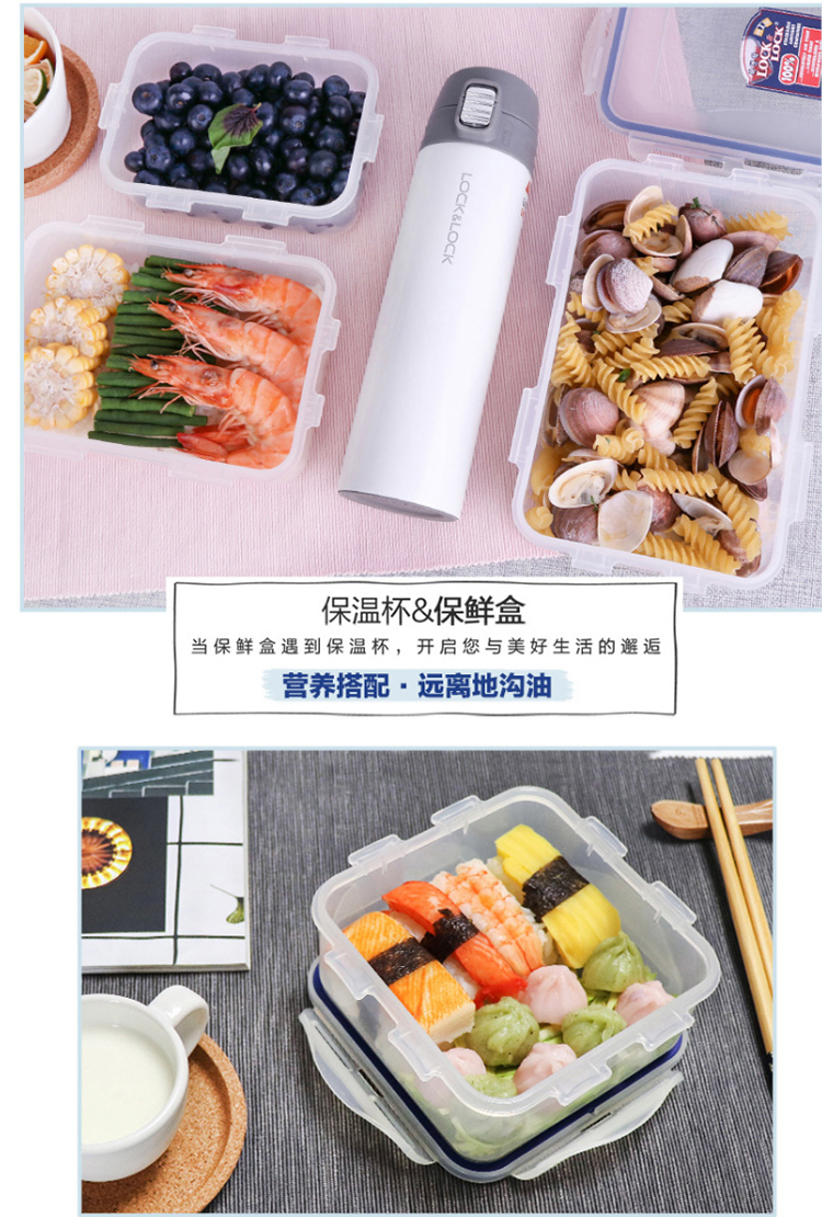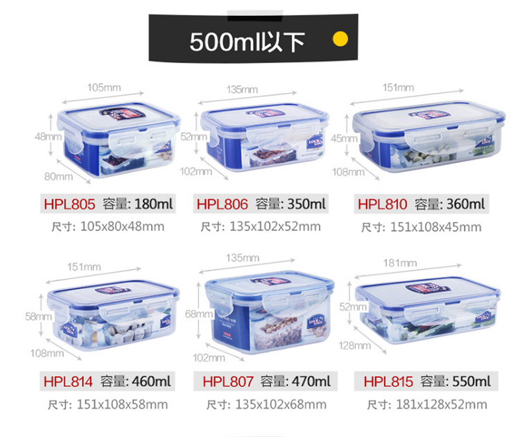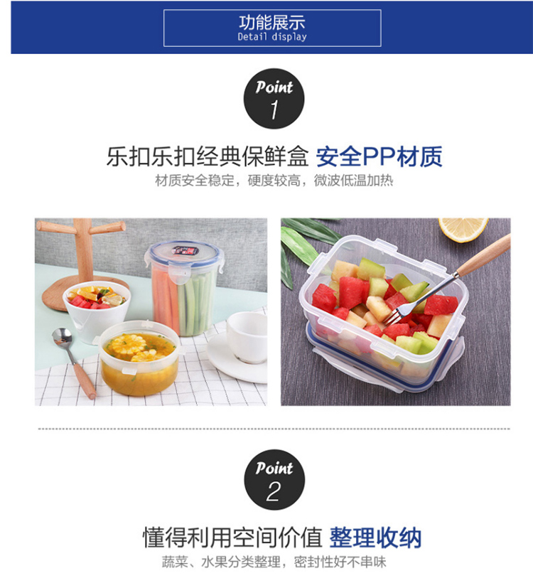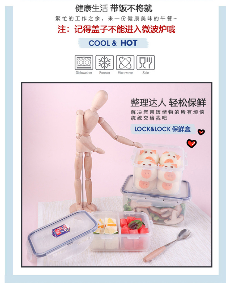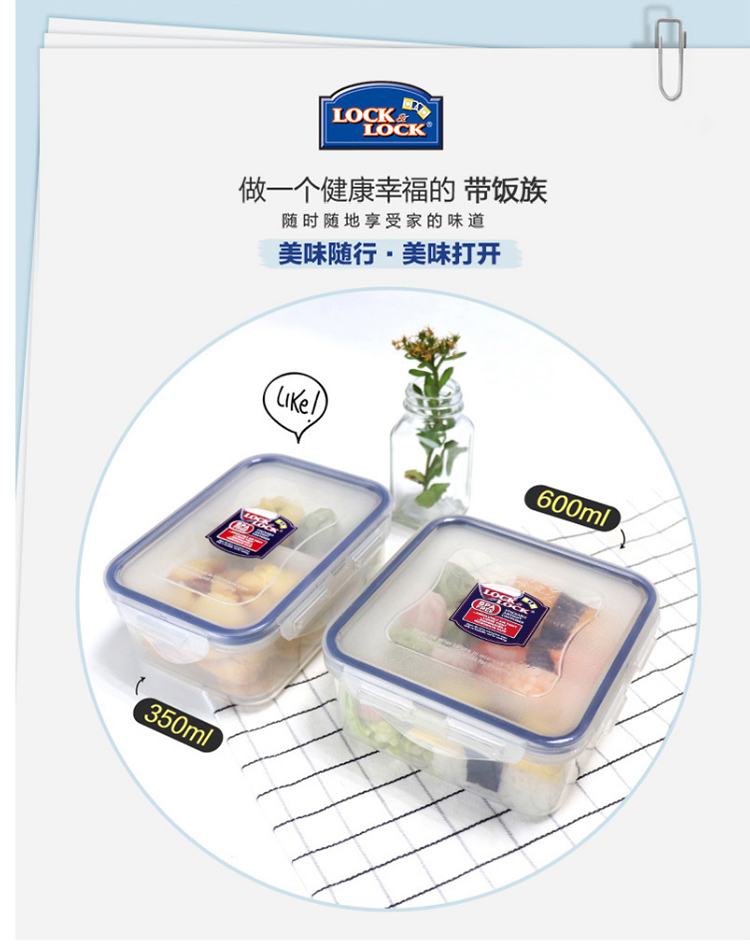 乐扣乐扣 塑料保鲜盒 微波炉饭盒 密封便当盒餐盒 水果零食品干货盒 厨房冰箱冷冻收纳储物储藏整理盒 600ML