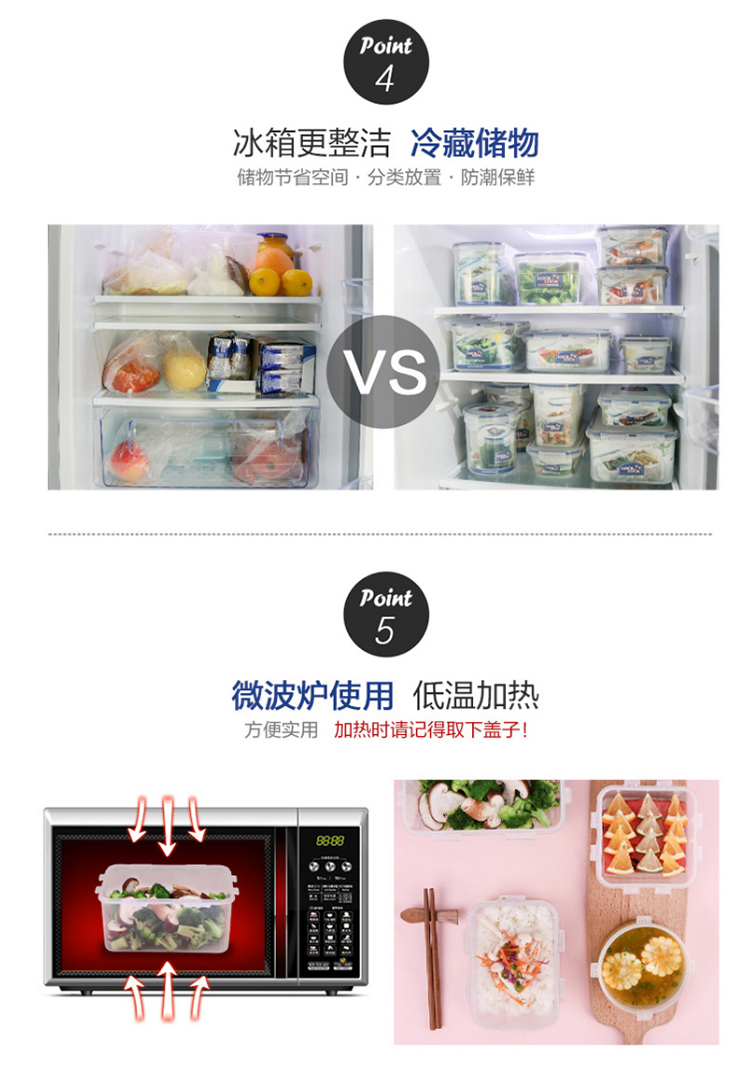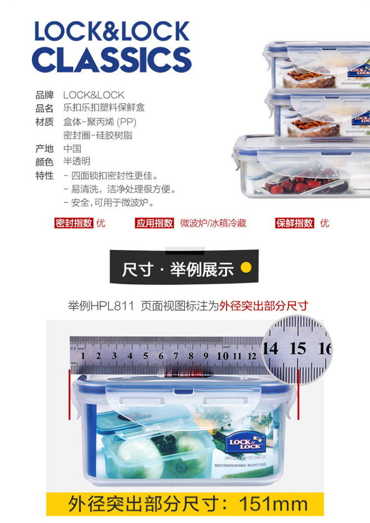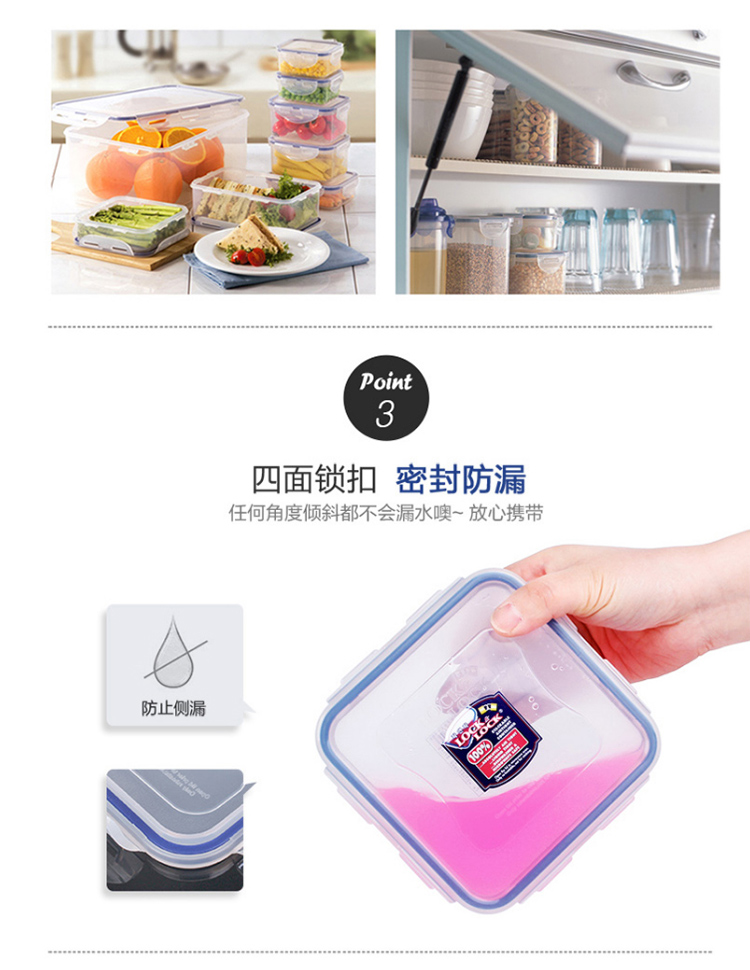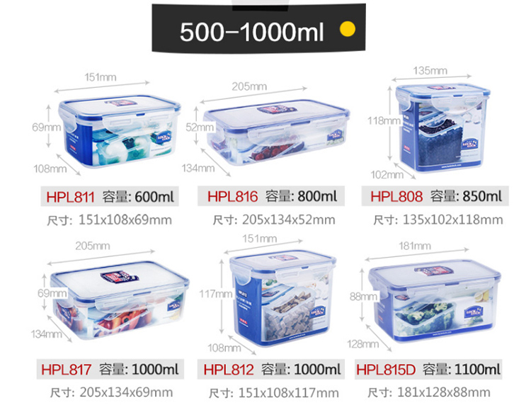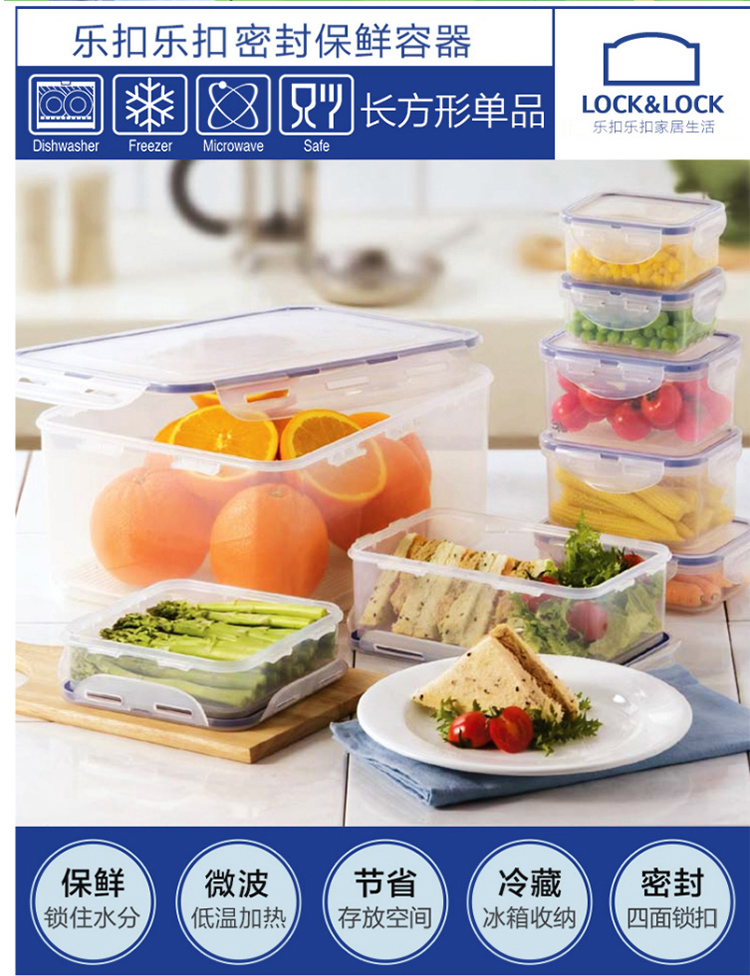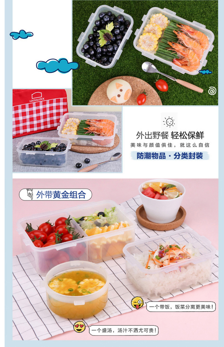 乐扣乐扣 塑料保鲜盒 微波炉饭盒 密封便当盒餐盒 水果零食品干货盒 厨房冰箱冷冻收纳储物储藏整理盒 600ML