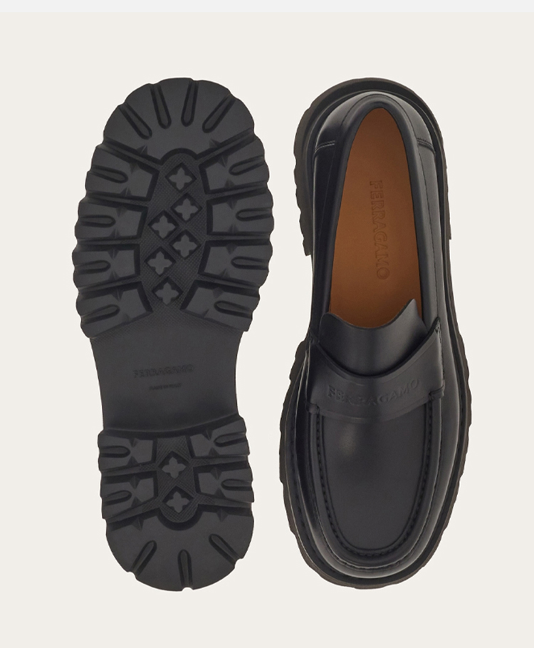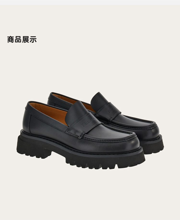 【二】FERRAGAMO 菲拉格慕 男士字母徽标厚底乐福鞋 黑色 762686