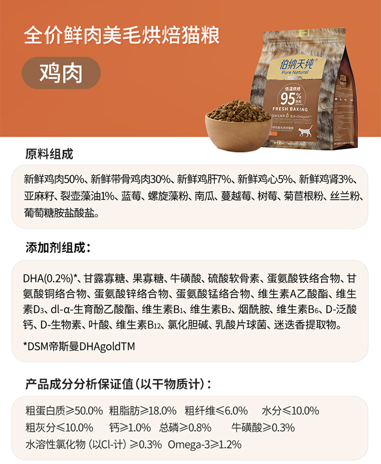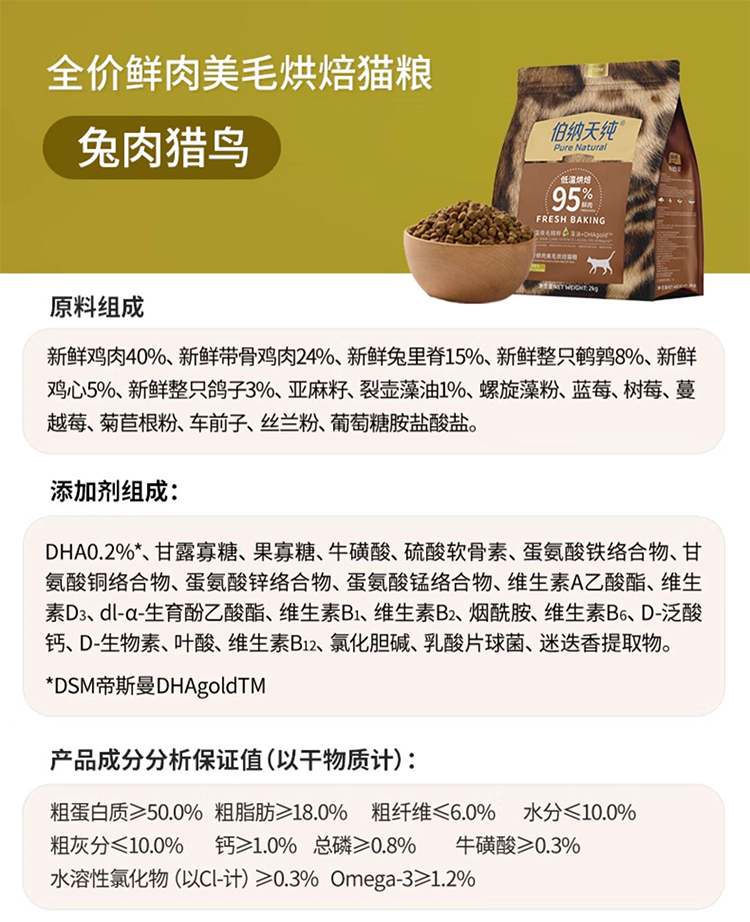伯纳天纯低温烘焙猫粮全价鲜肉美毛全价猫粮微藻焕肤鸡肉三文鱼2kg