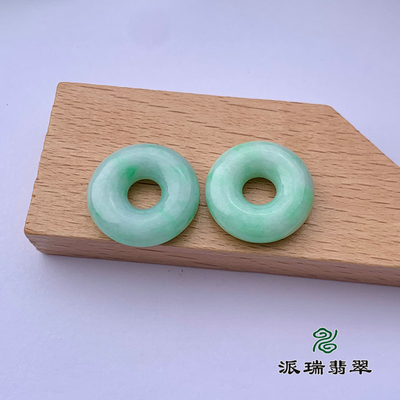 派瑞翡翠 翡翠平安扣耳饰 糯种 满绿