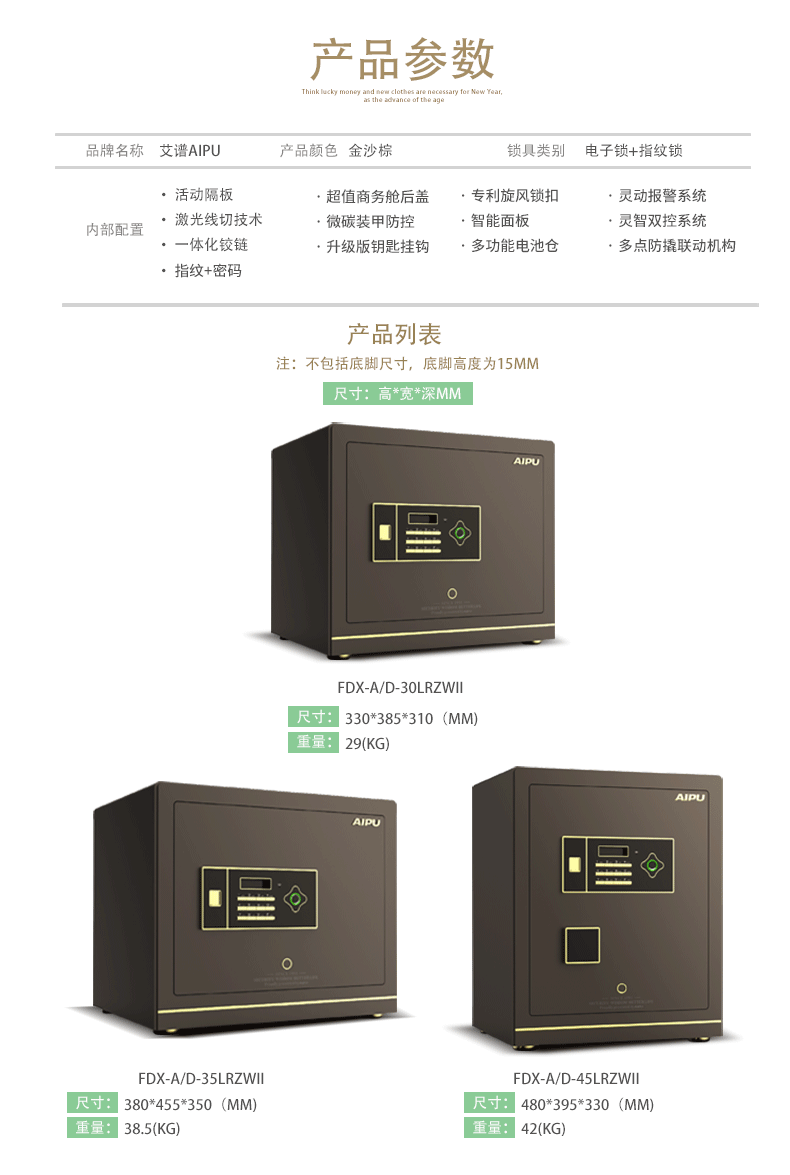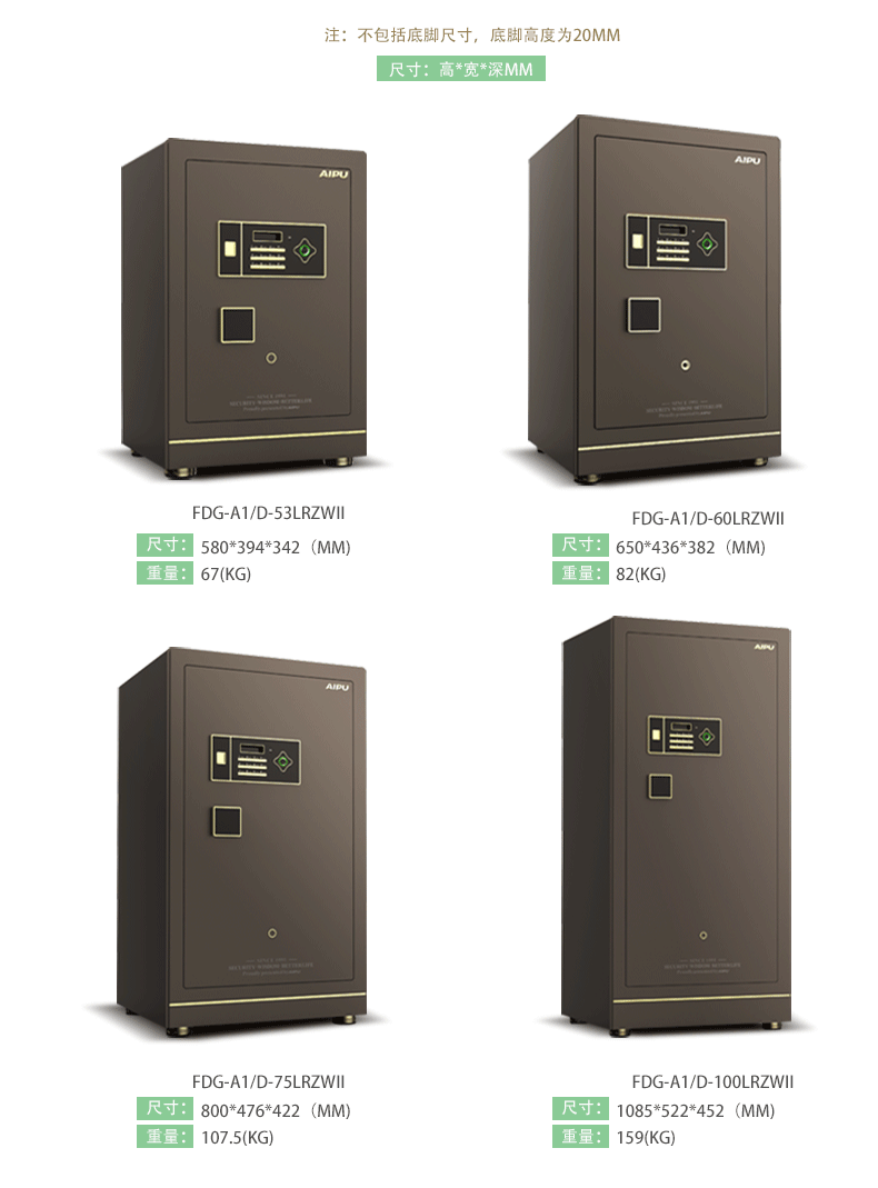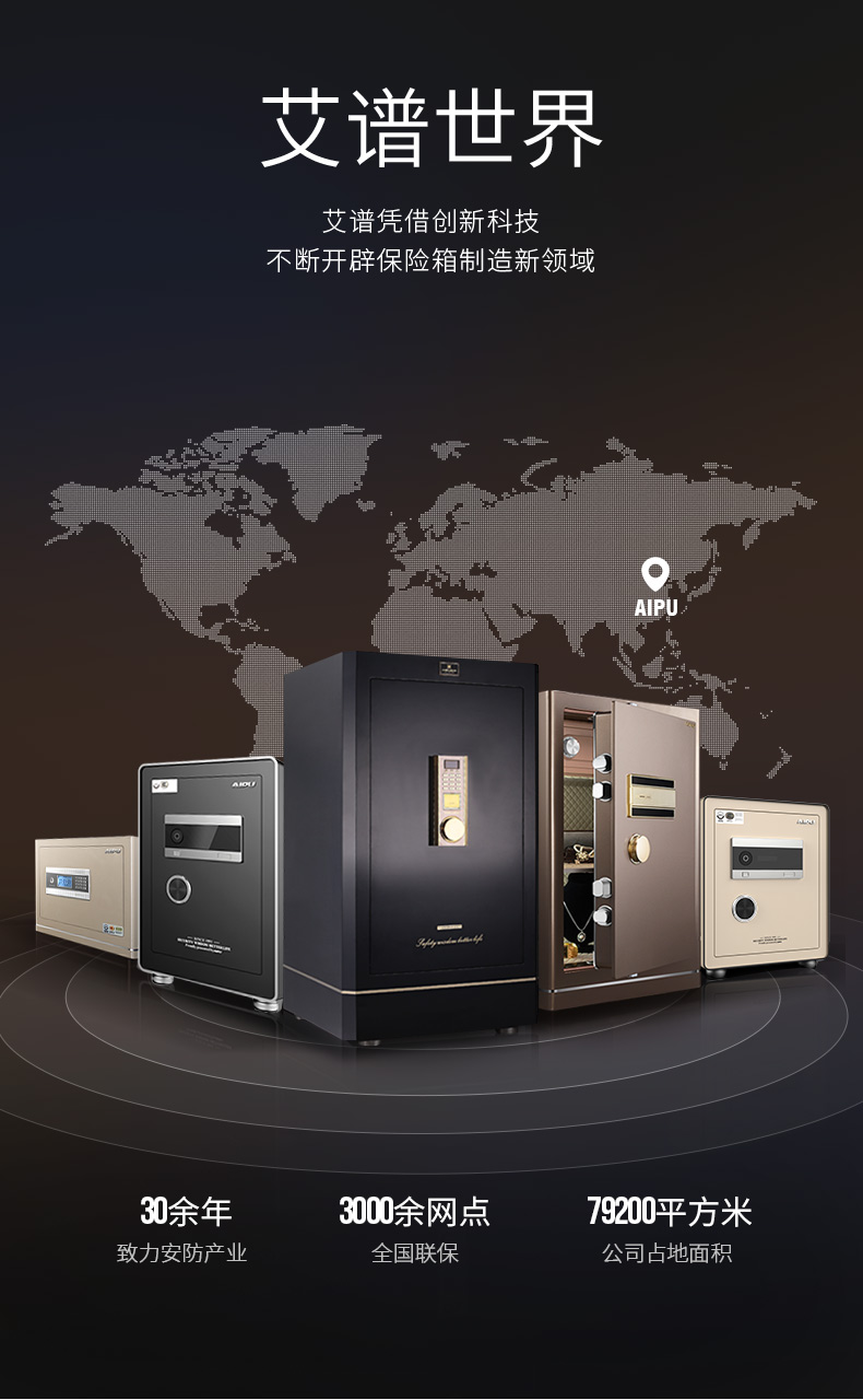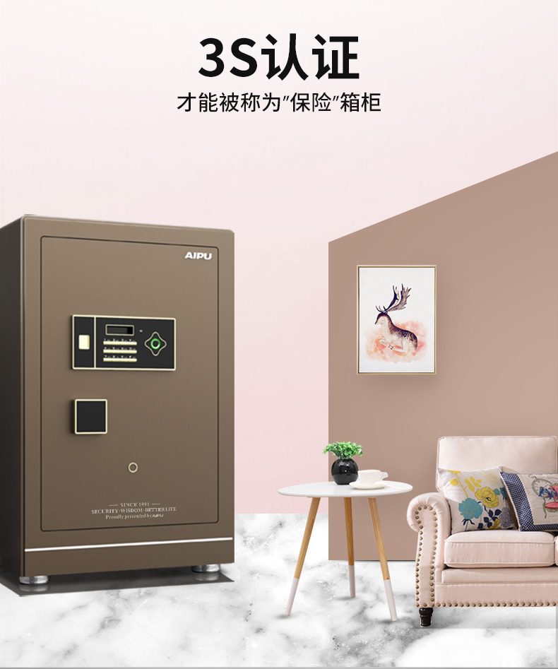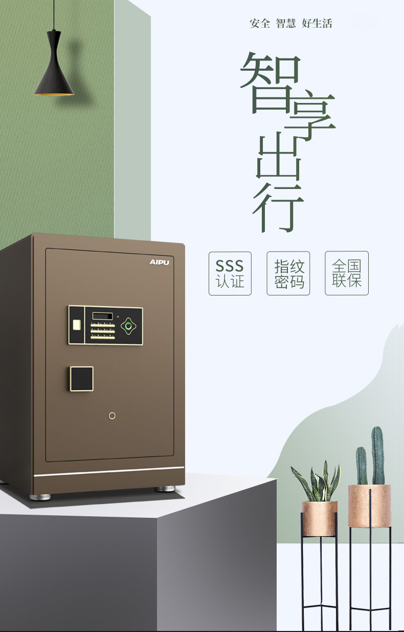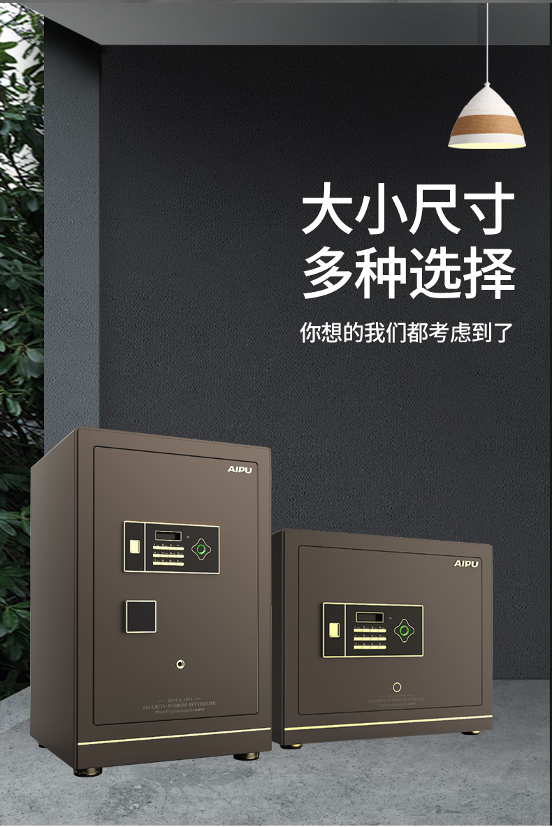AIPU艾谱智能指纹保险箱家用办公国家3c认证小型灵睿系列入墙全钢床头柜