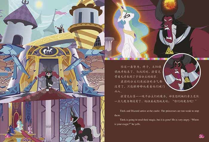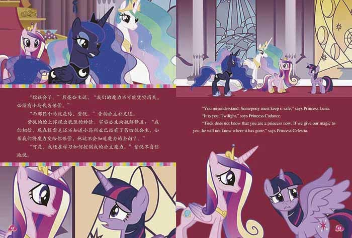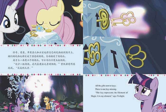 (4)中英双语阅读,提升英语思维能力,同步提高双语水平:《小马宝莉大冒险双语故事》是中英文双语对照图书,一本图书,两种阅读。孩子将在读这套书的过程中养成英语阅读的习惯,培养英语思维能力,提升英语水平。