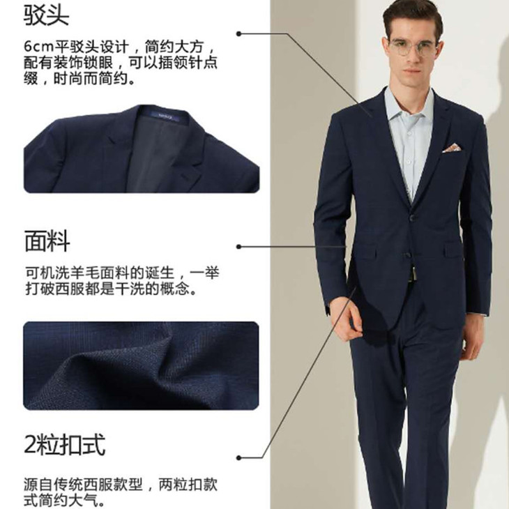 南4雅戈尔藏青格纹可机洗套系