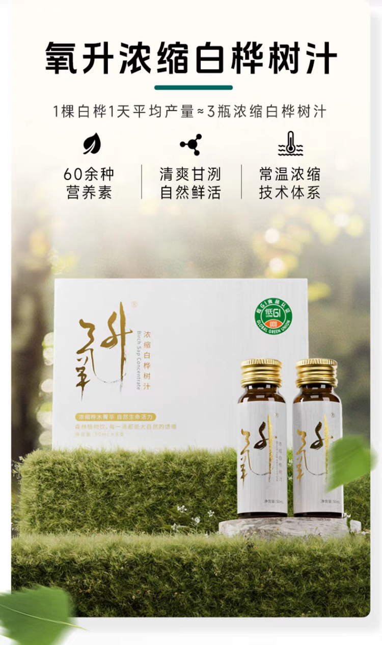 自营(山蒙海时)-嘉桦氧升浓缩白桦树汁50ml*8瓶礼盒