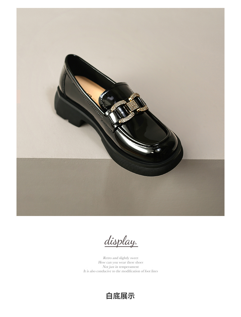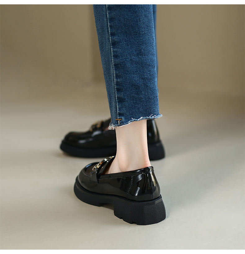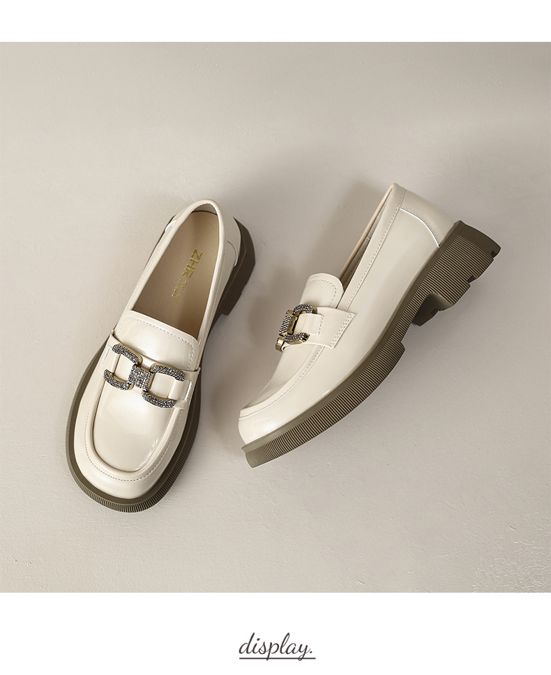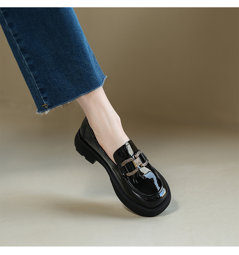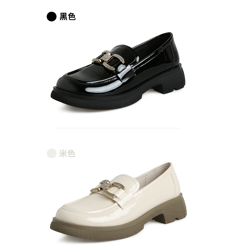 ZHR2022年春秋新款英伦风镜面厚底一脚蹬乐福鞋时尚休闲粗跟单鞋