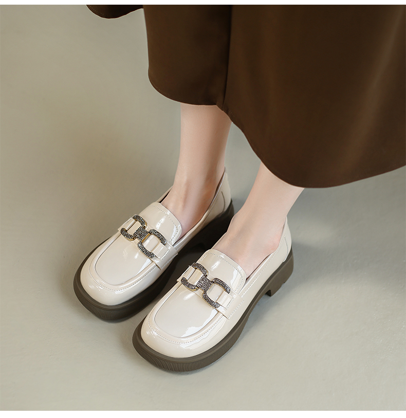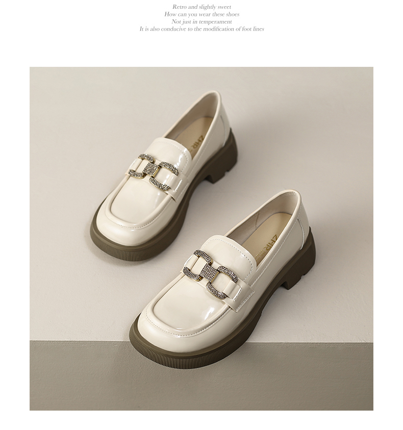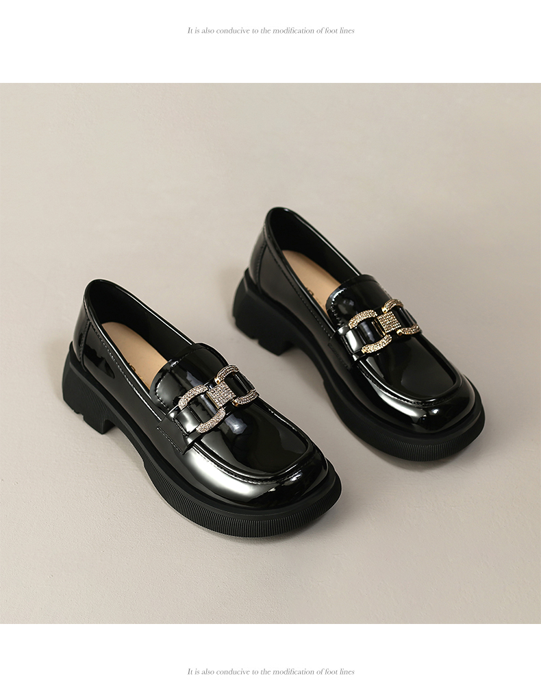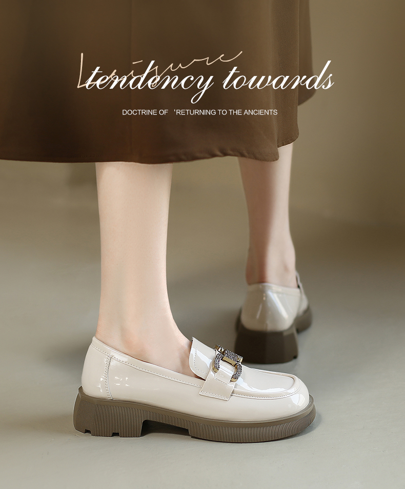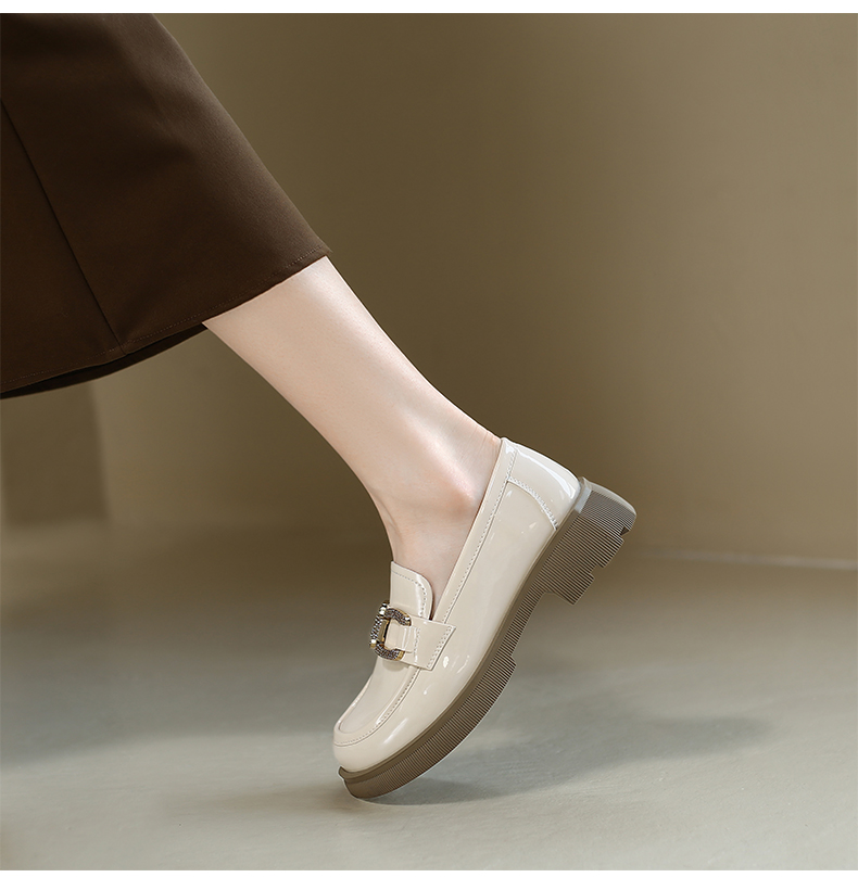 ZHR2022年春秋新款英伦风镜面厚底一脚蹬乐福鞋时尚休闲粗跟单鞋
