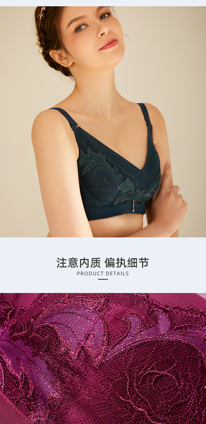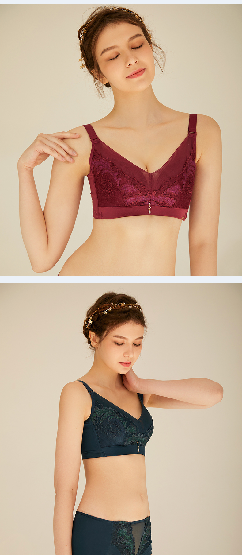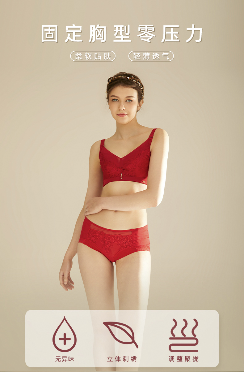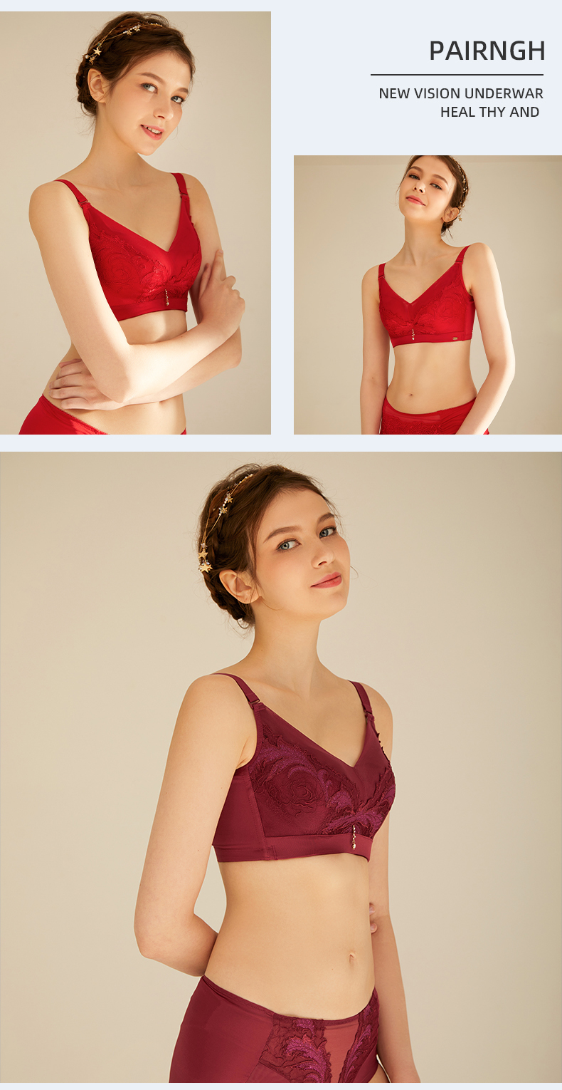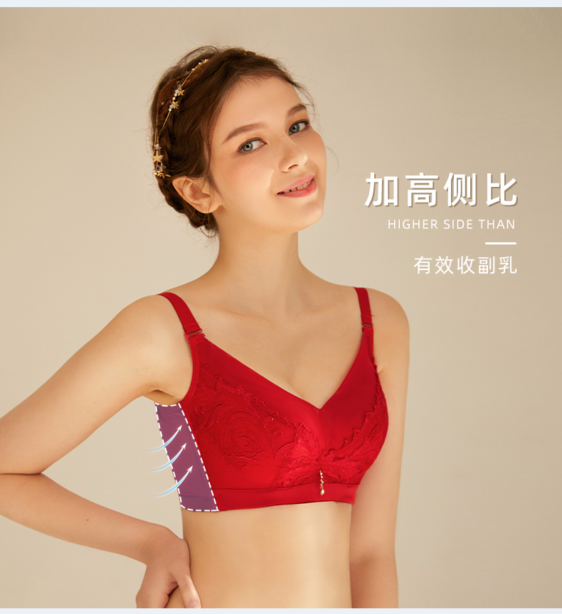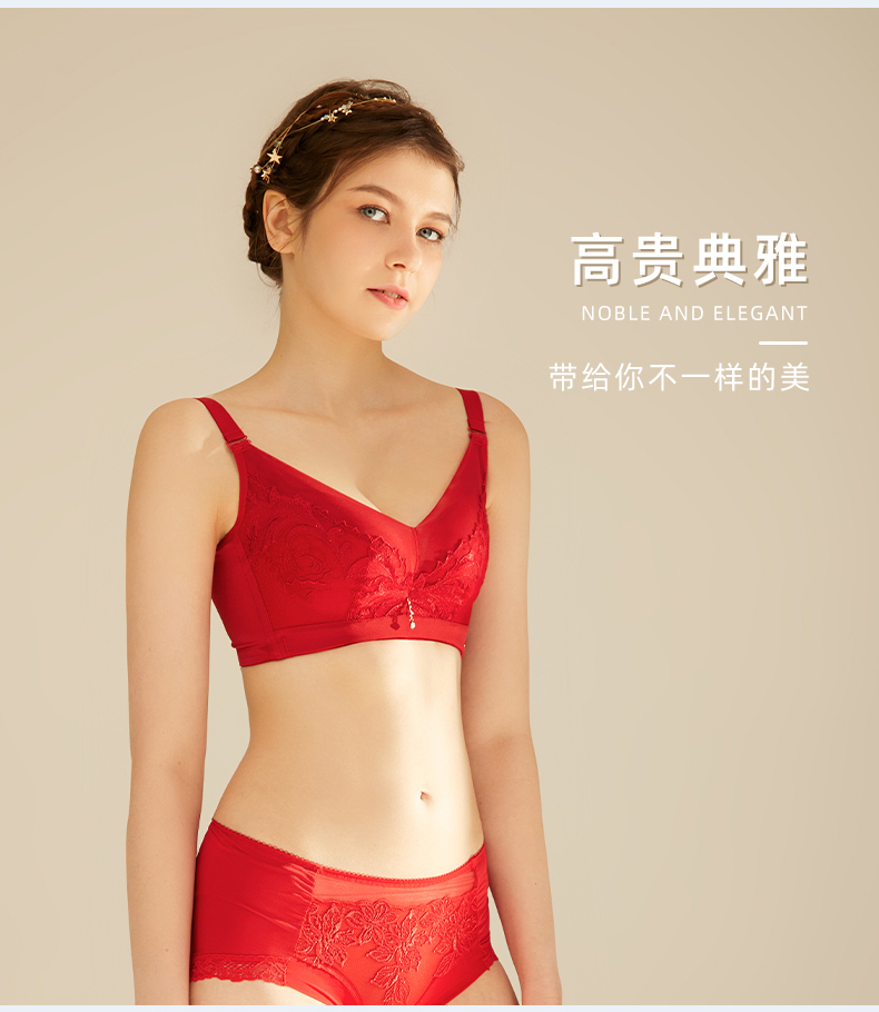 皇家丽美文胸调整型无钢圈中杯美背四排扣内衣精美刺绣羽毛WW918-2