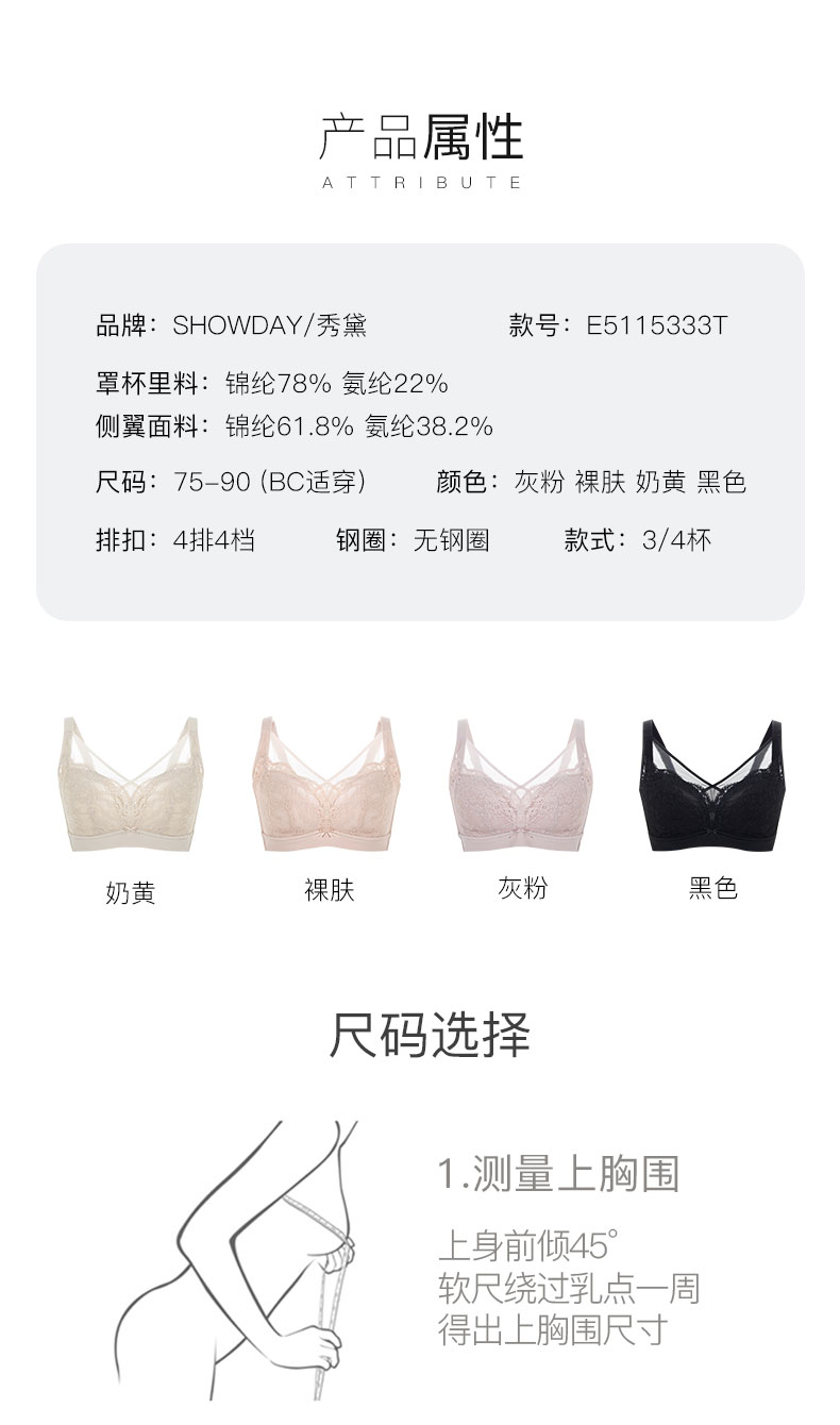【秒杀价59.9元】【B/C杯单件】秀黛蕾丝聚拢调整型防下垂美背舒适透气轻薄文胸E5115333T【粉丝专享】【如遇缺货自动退款,介意勿拍】