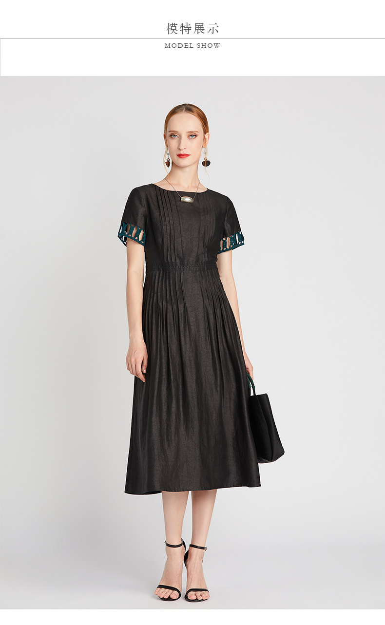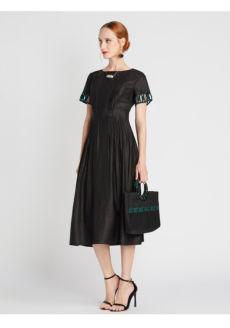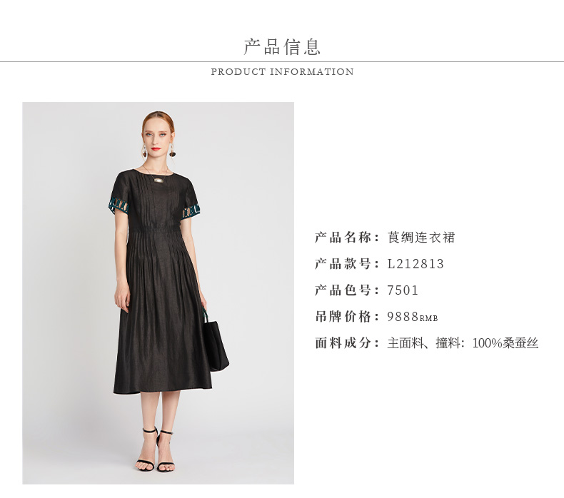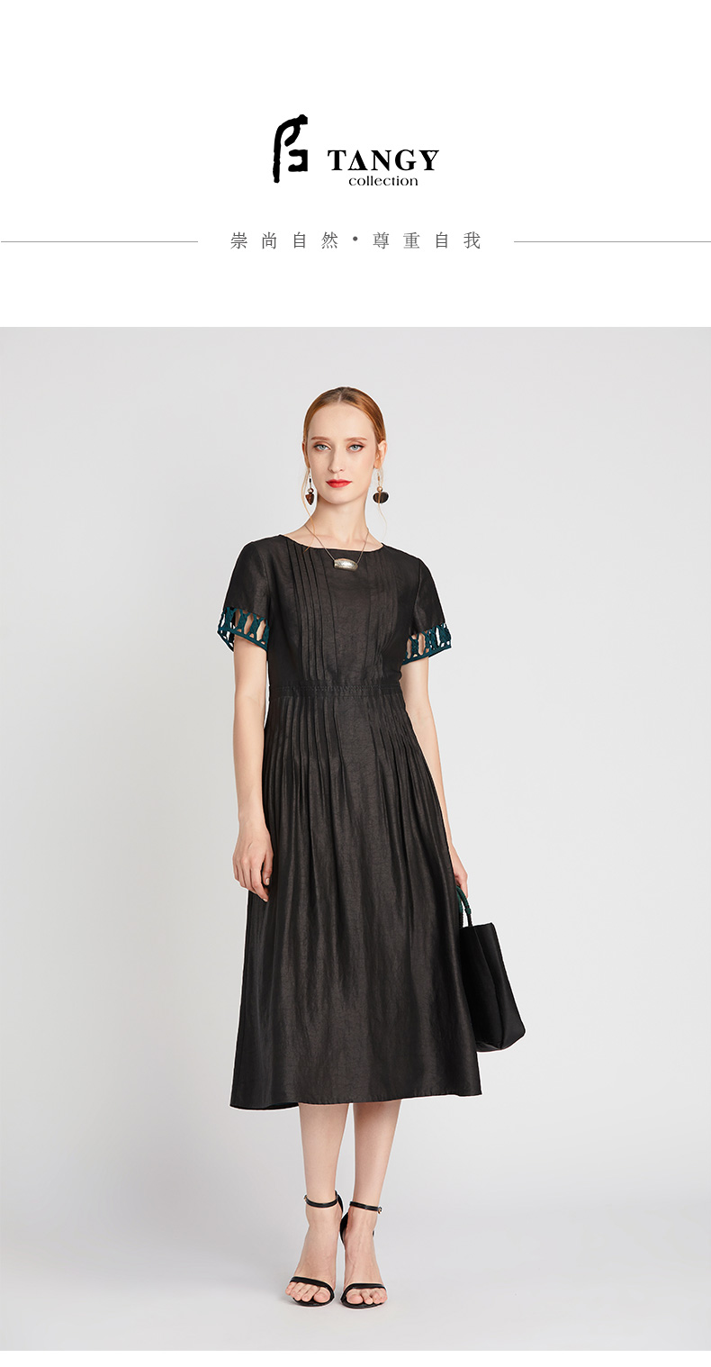 TANGY Collection/天意精品2021年夏季新品真丝撞色编织莨绸连衣裙
