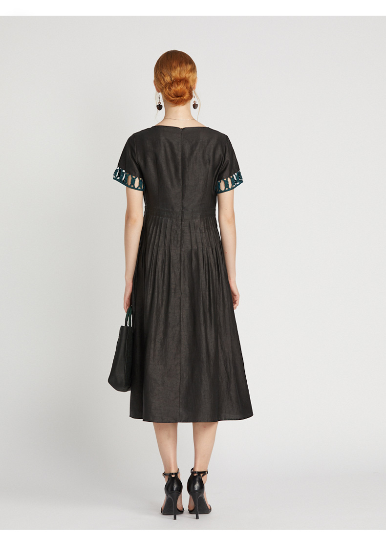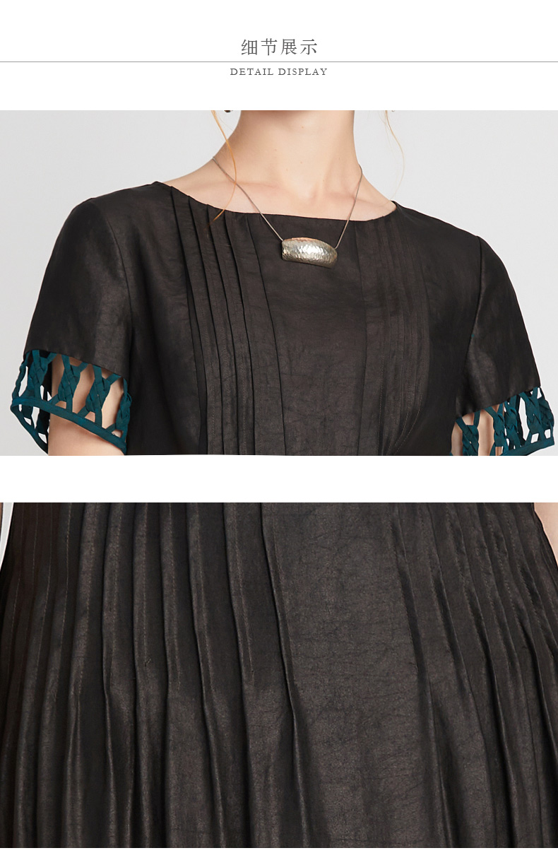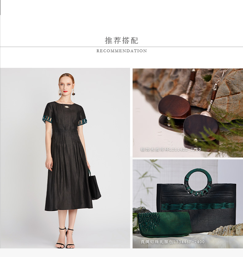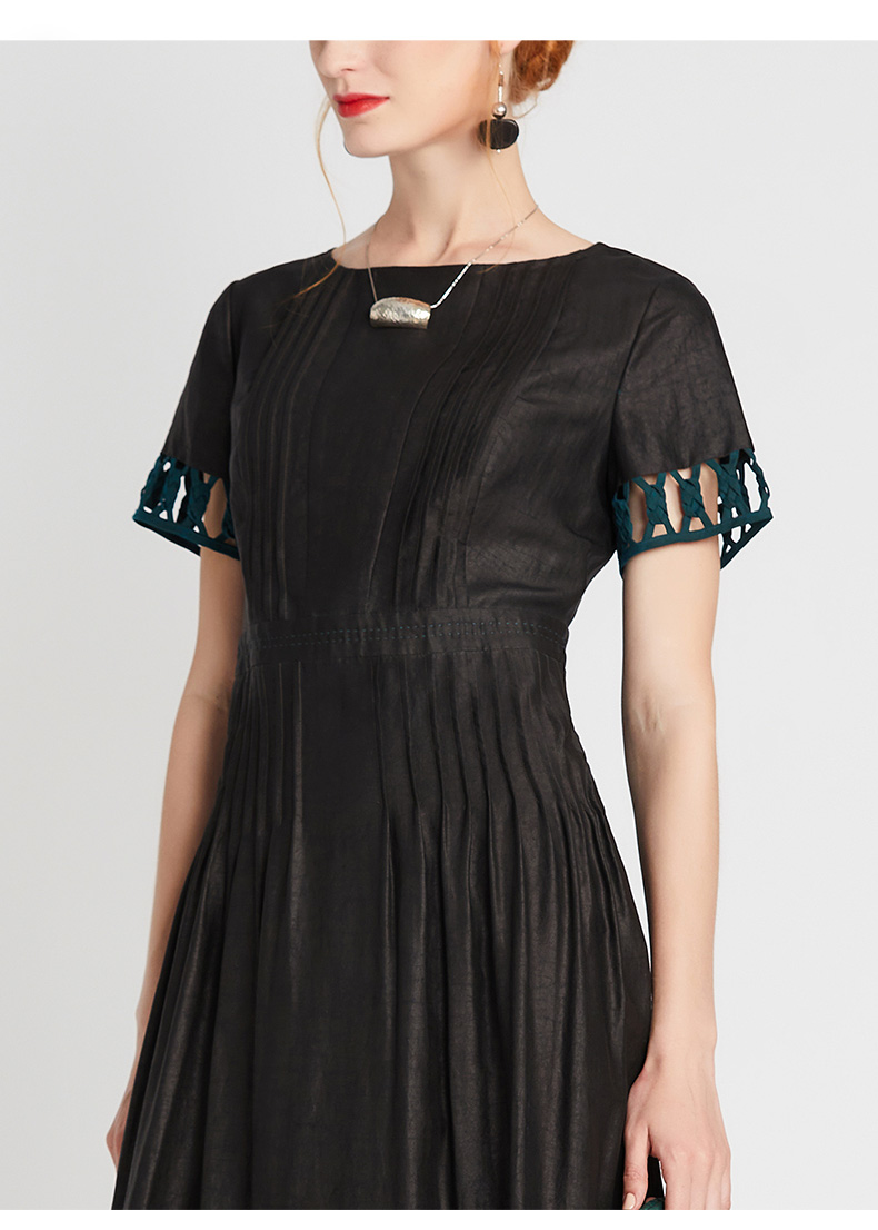 TANGY Collection/天意精品2021年夏季新品真丝撞色编织莨绸连衣裙