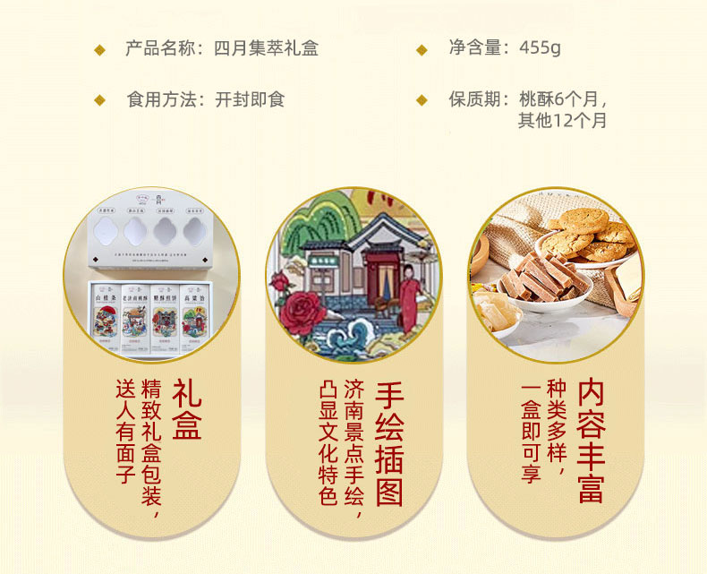 野风酥四月集萃455g (山楂条135g、 老济南桃酥115g、 高粱饴145g、 糖酥煎饼60g)