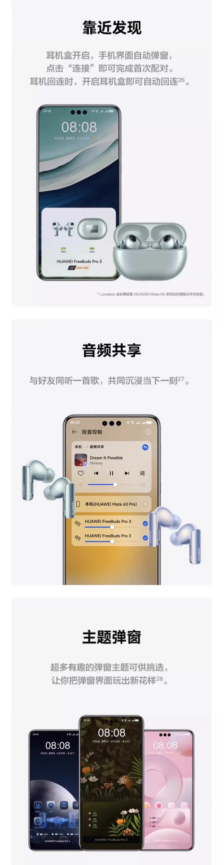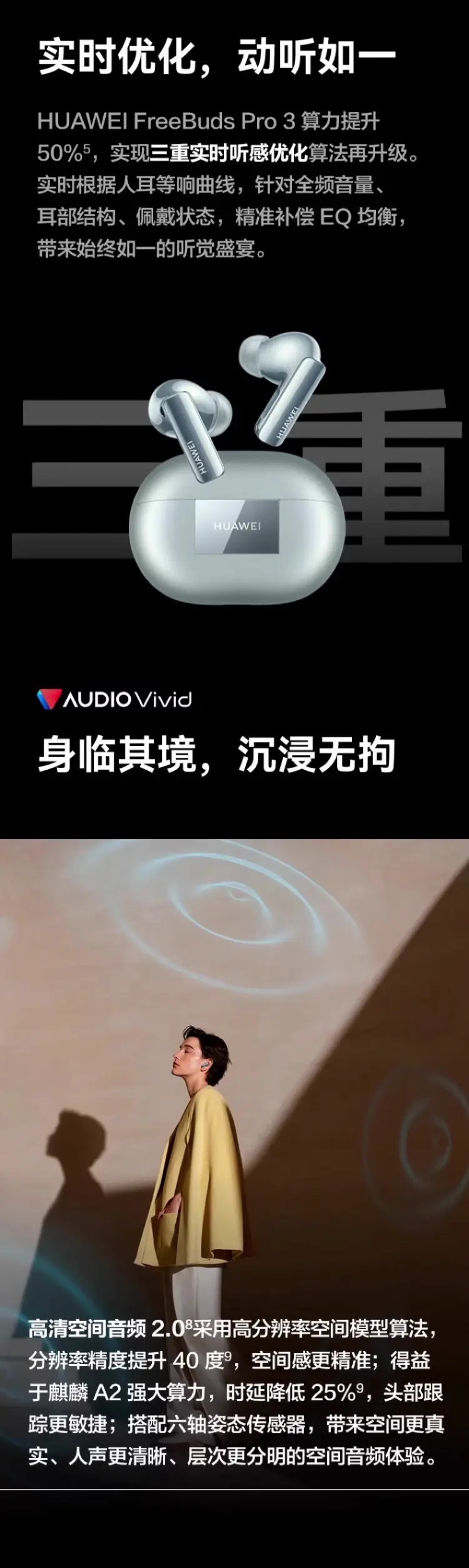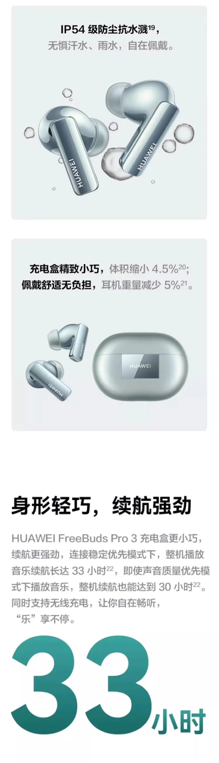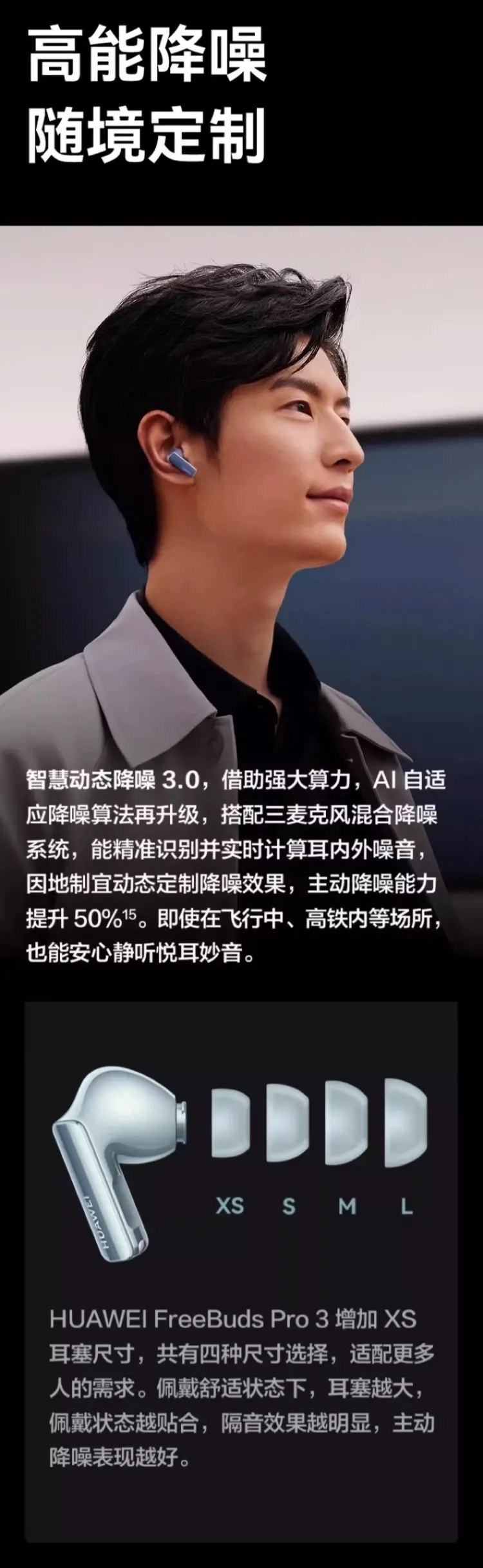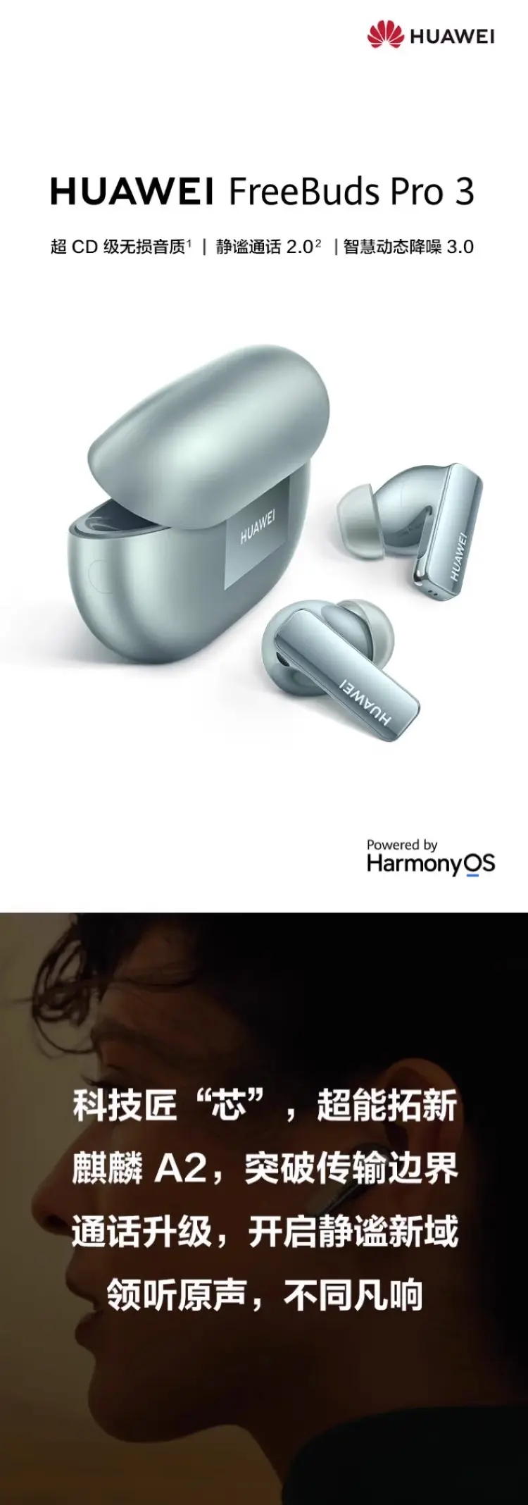 华为 FreeBuds Pro 3 主动降噪无线蓝牙耳机 冰霜银 无线充电版