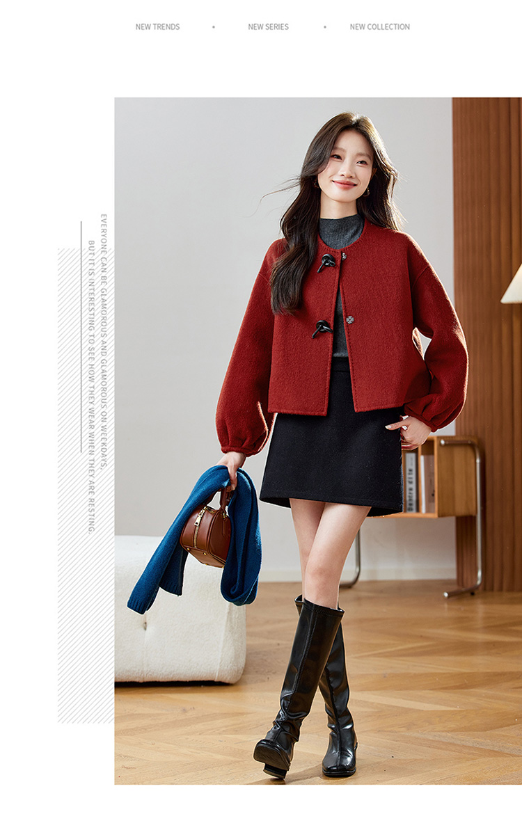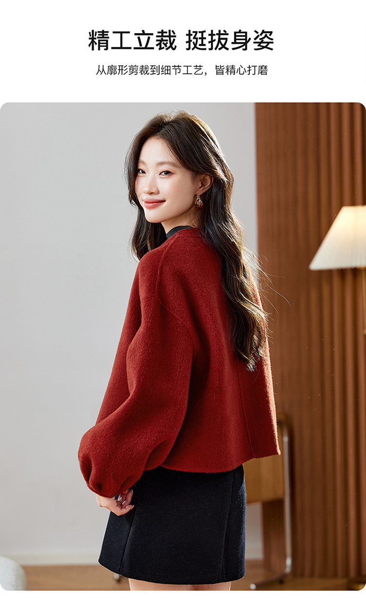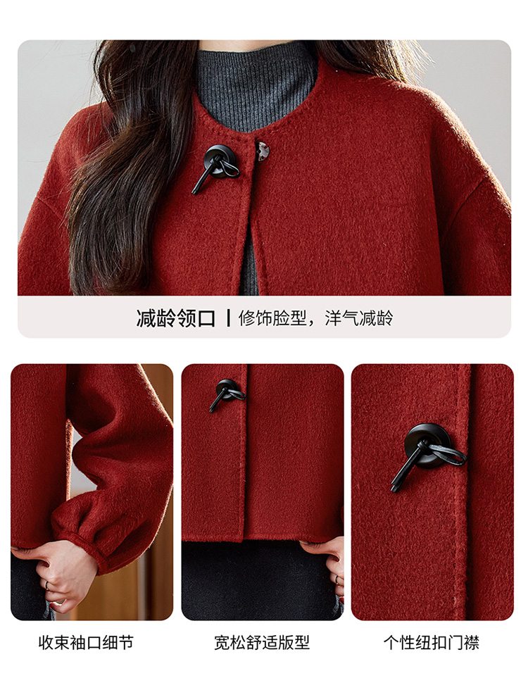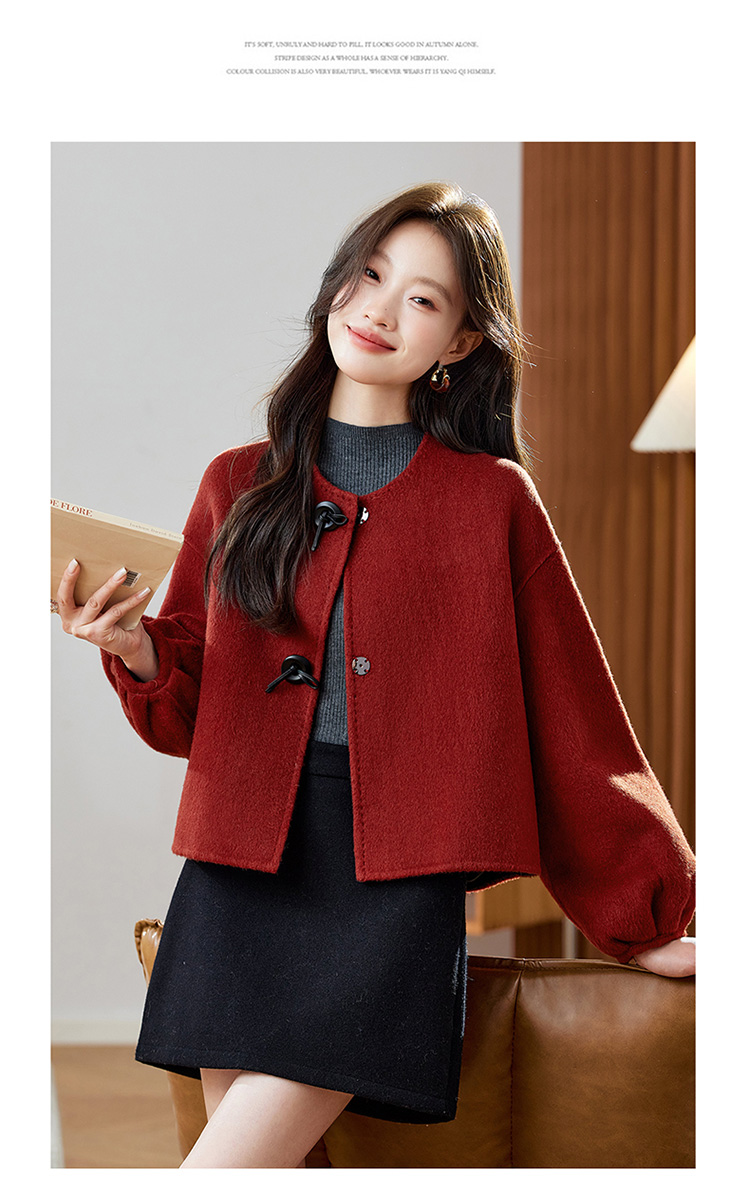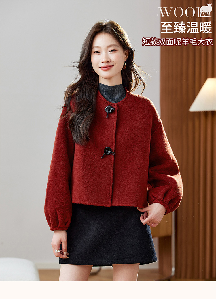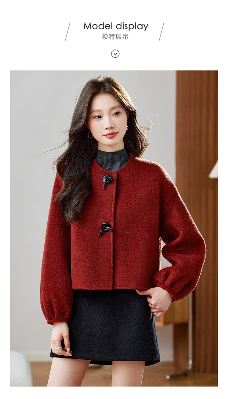 红色轻奢显瘦双面呢羊毛大衣,小香风毛呢短外套HR-ZYIF2637