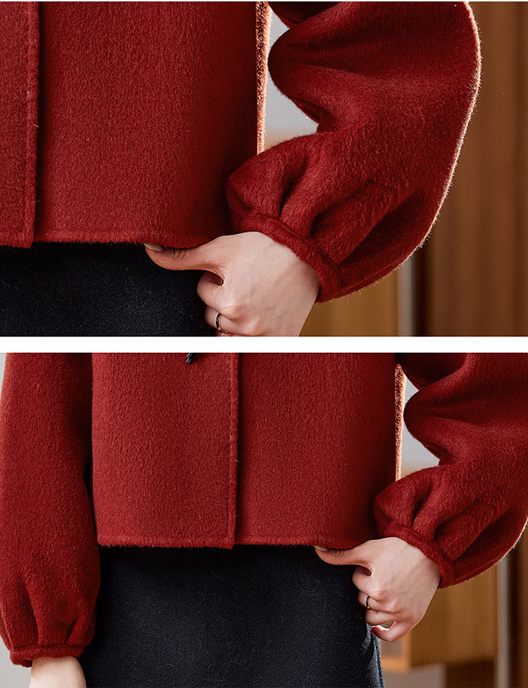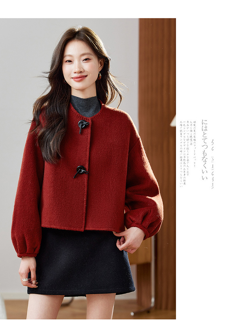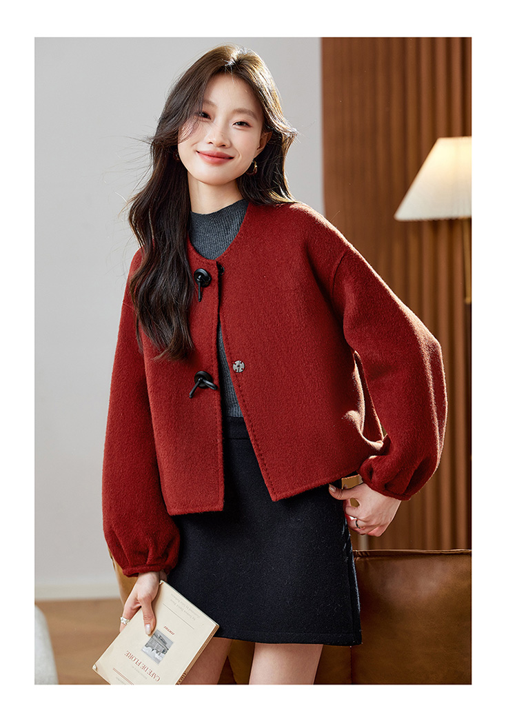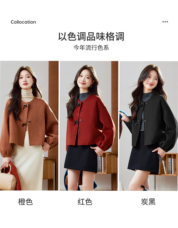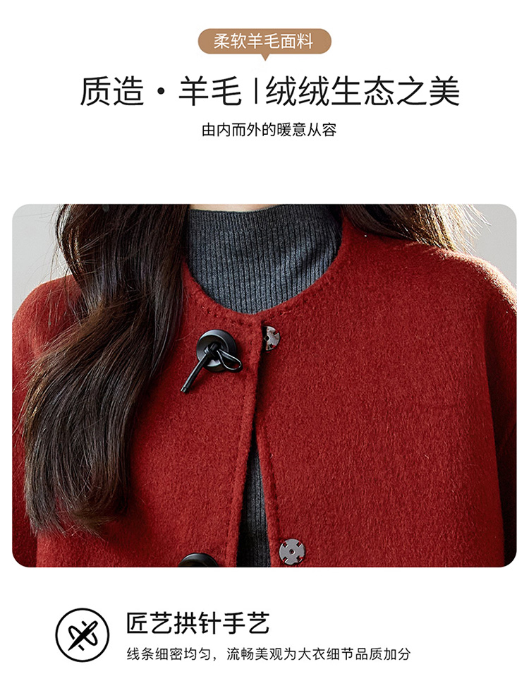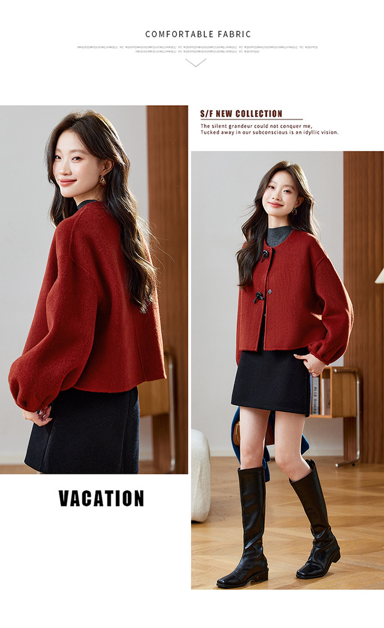 红色轻奢显瘦双面呢羊毛大衣,小香风毛呢短外套HR-ZYIF2637