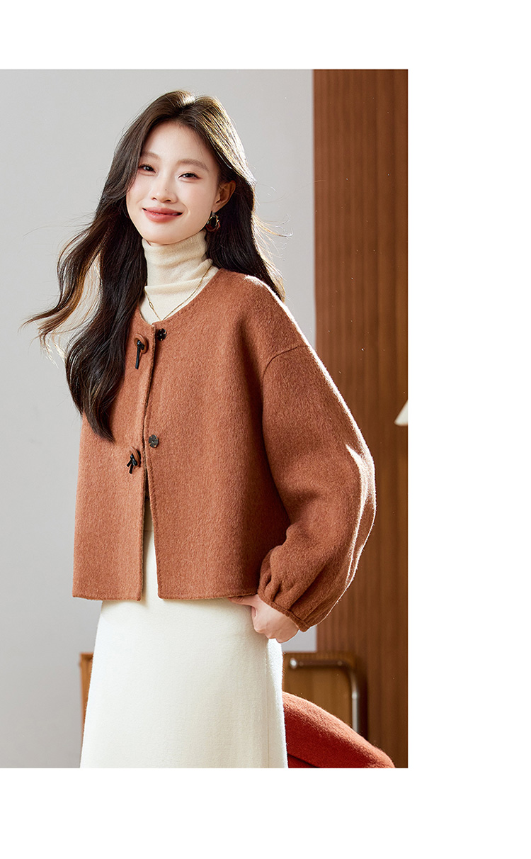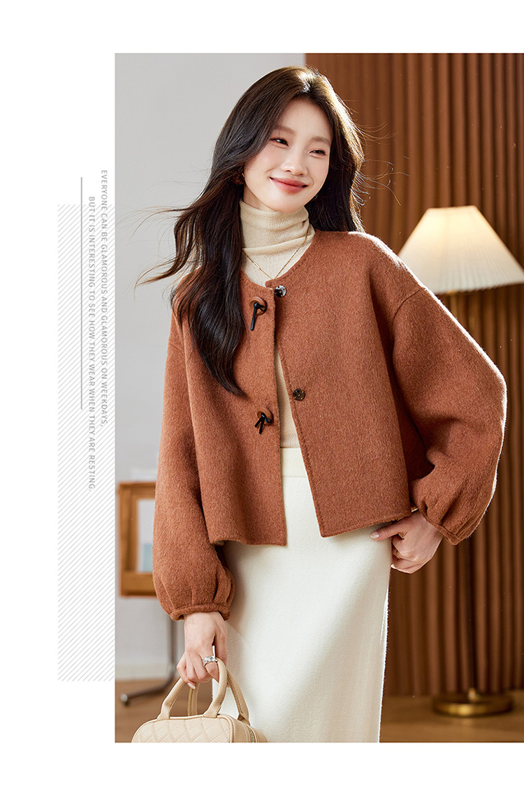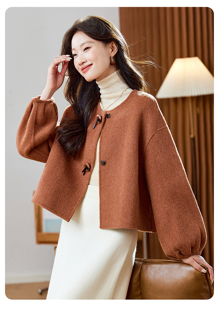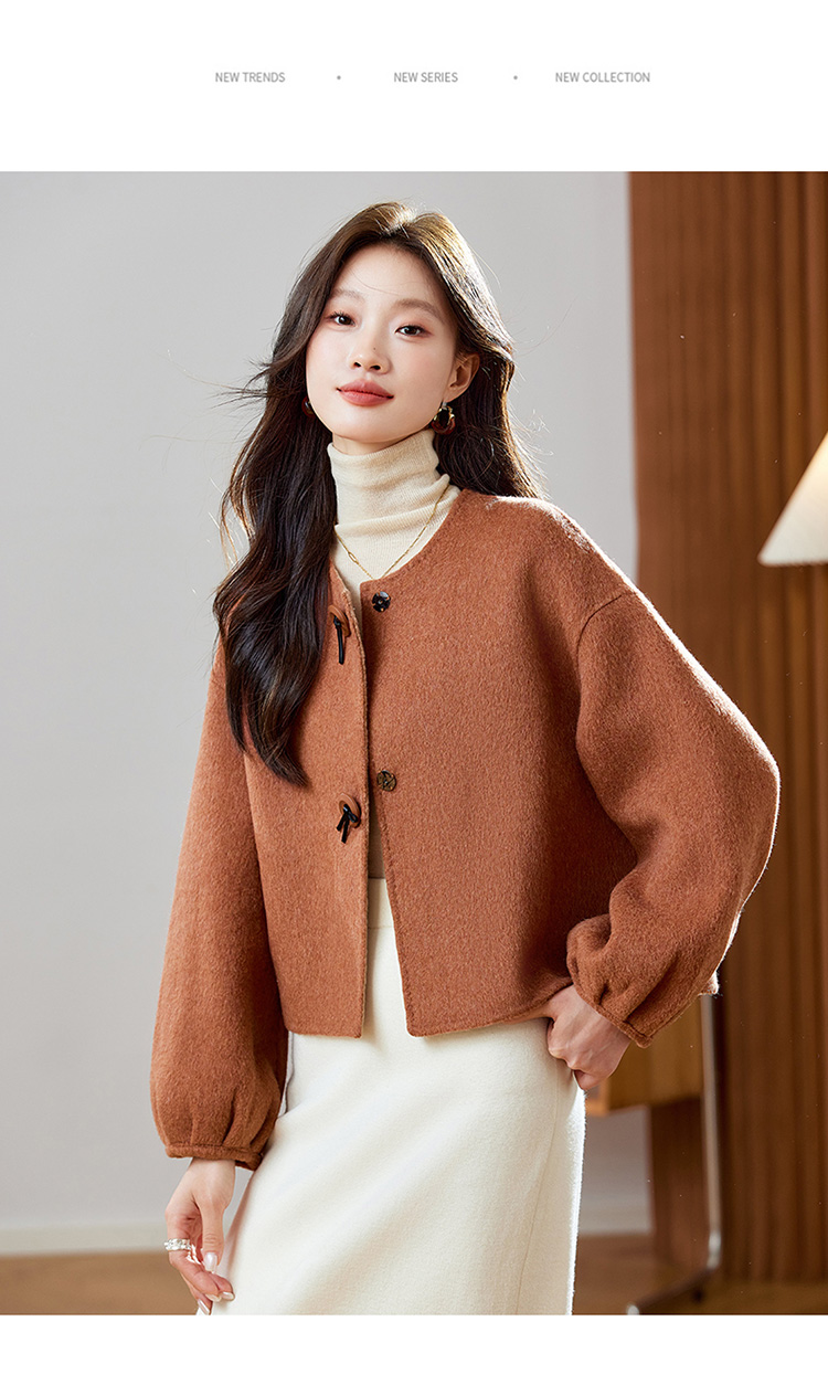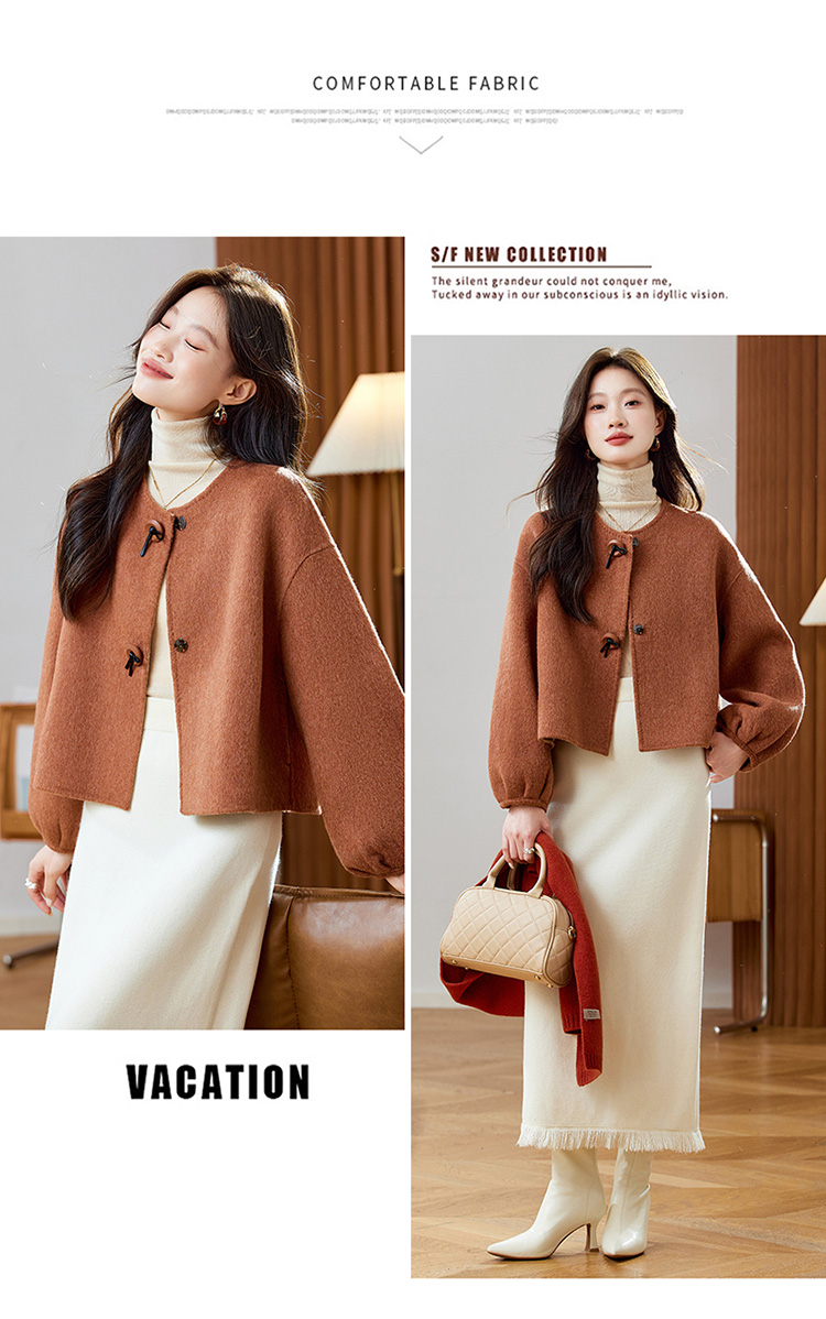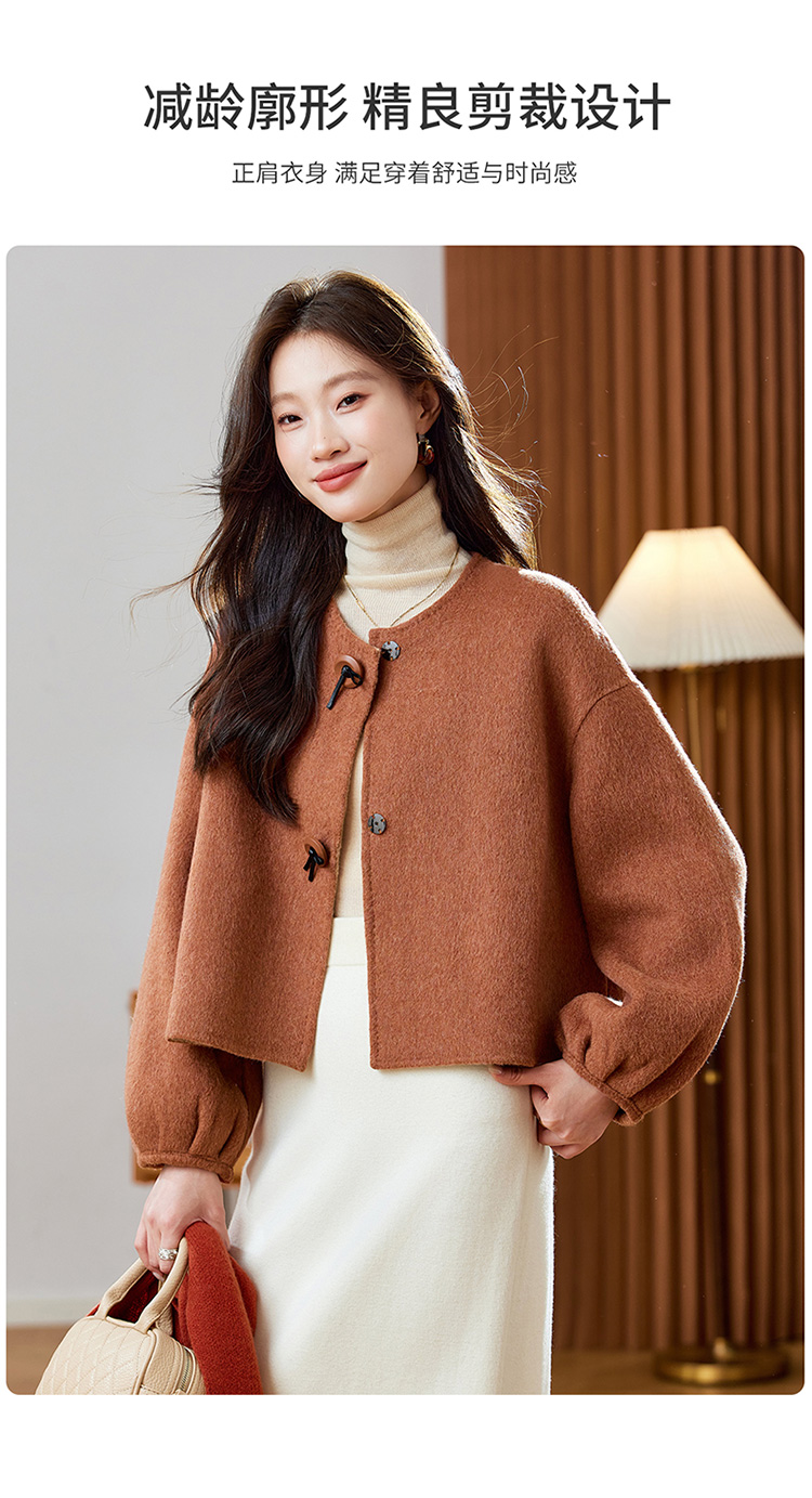 红色轻奢显瘦双面呢羊毛大衣,小香风毛呢短外套HR-ZYIF2637