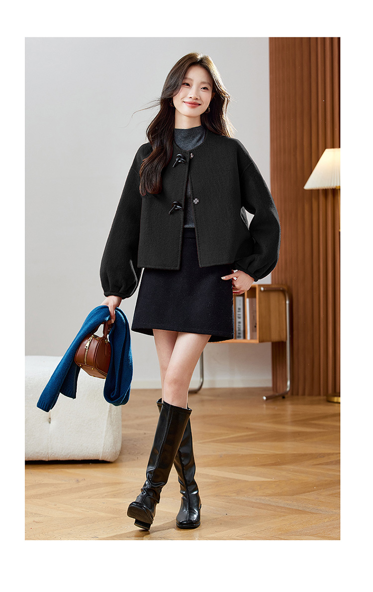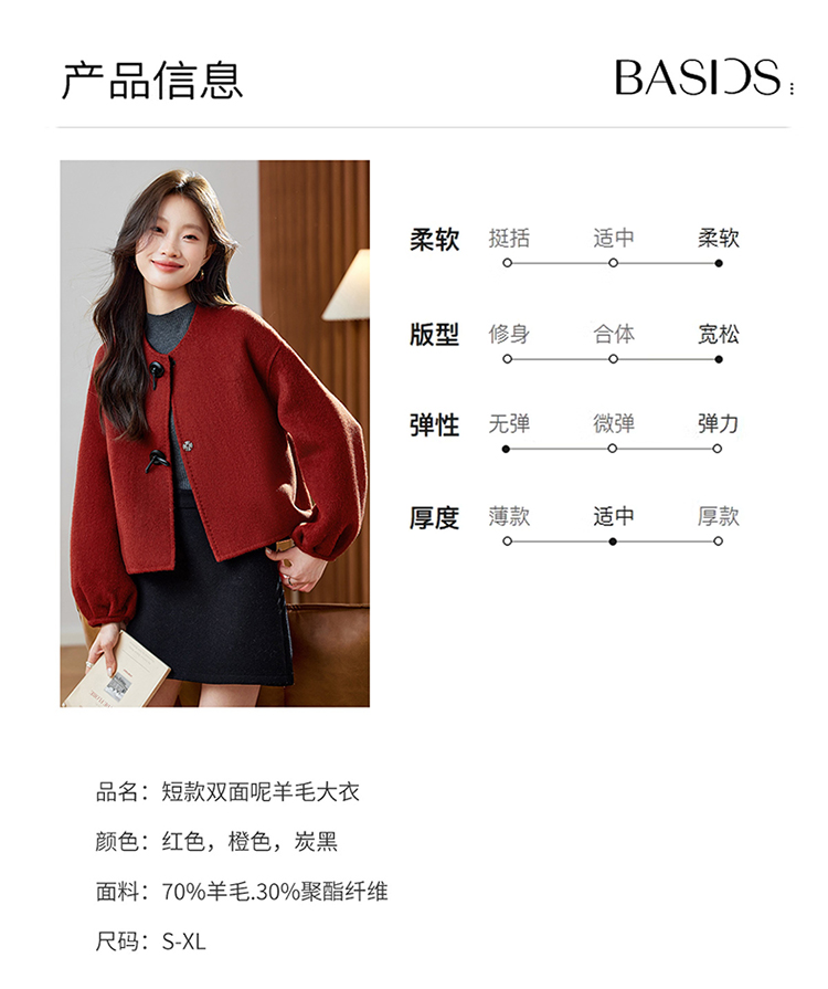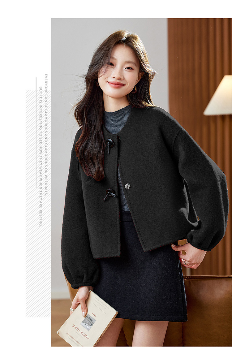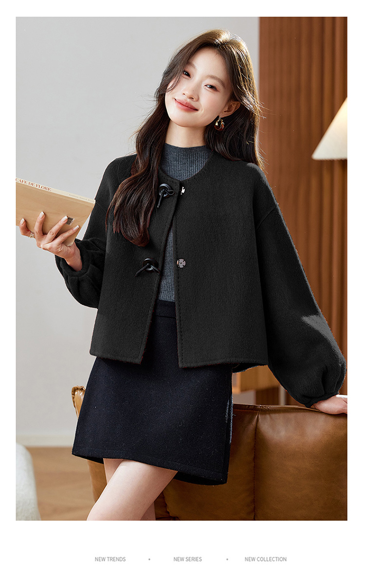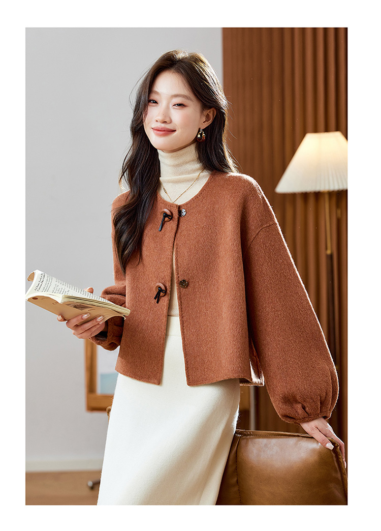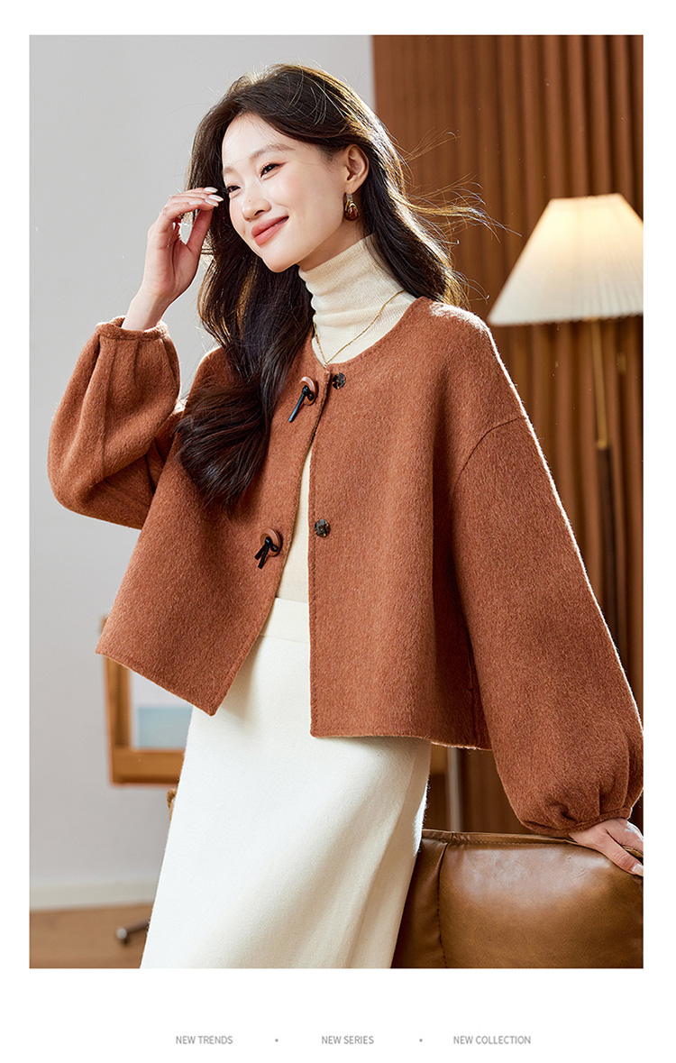 红色轻奢显瘦双面呢羊毛大衣,小香风毛呢短外套HR-ZYIF2637