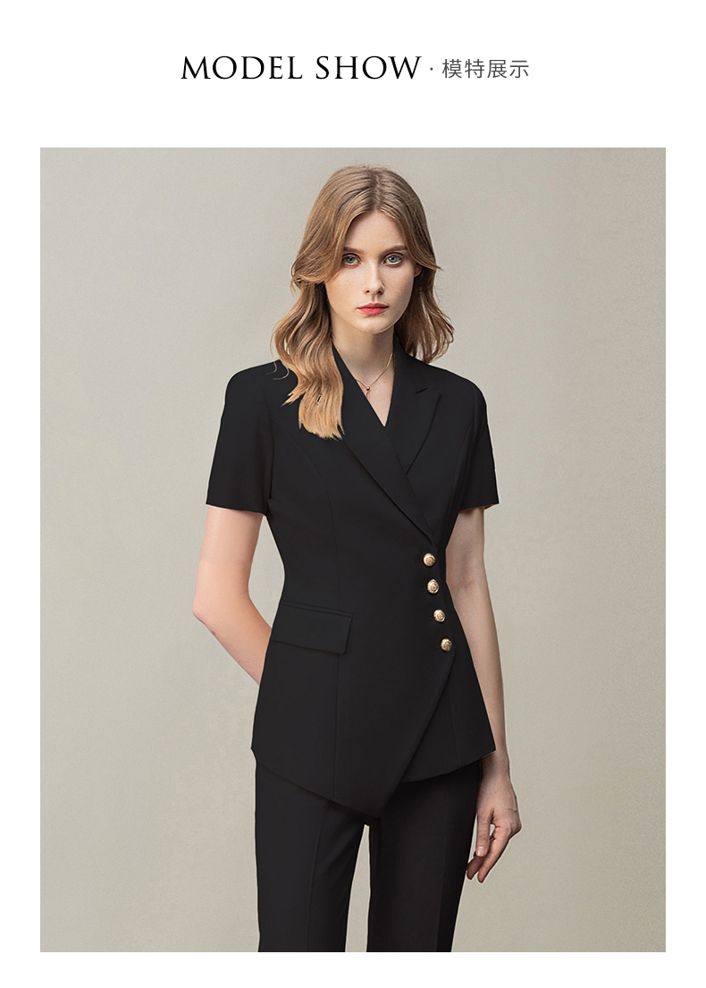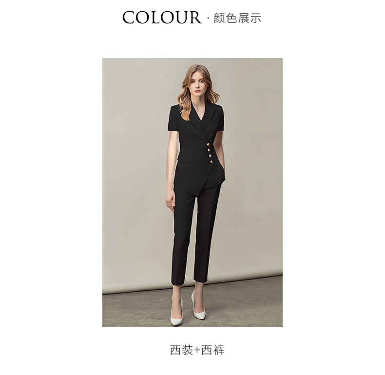 IWY/黑色夏季都市时尚设计感职业女士西装套装工作服上班职业装CP10409