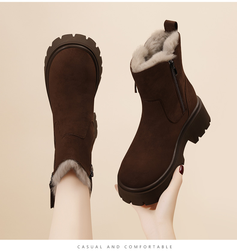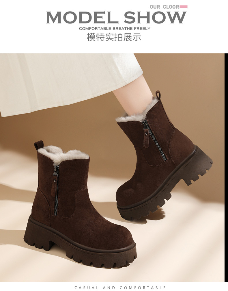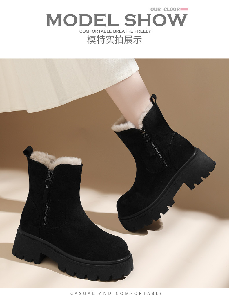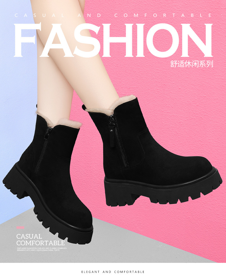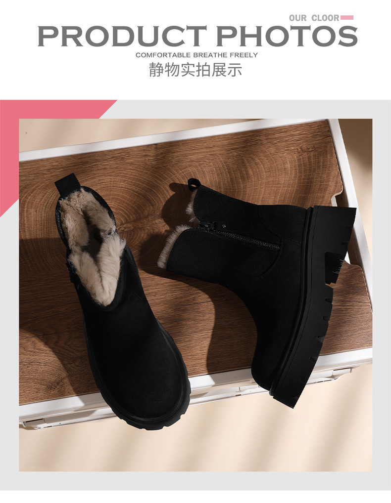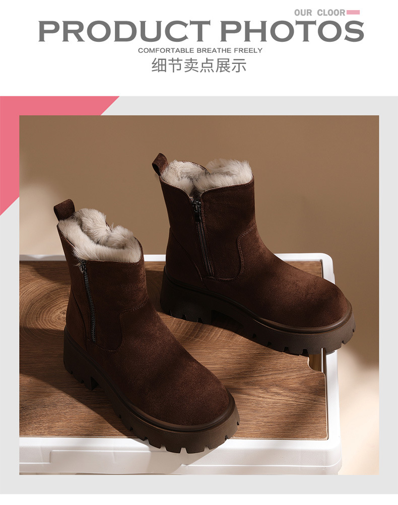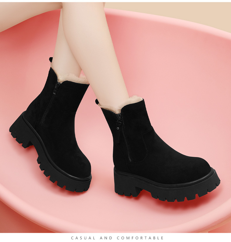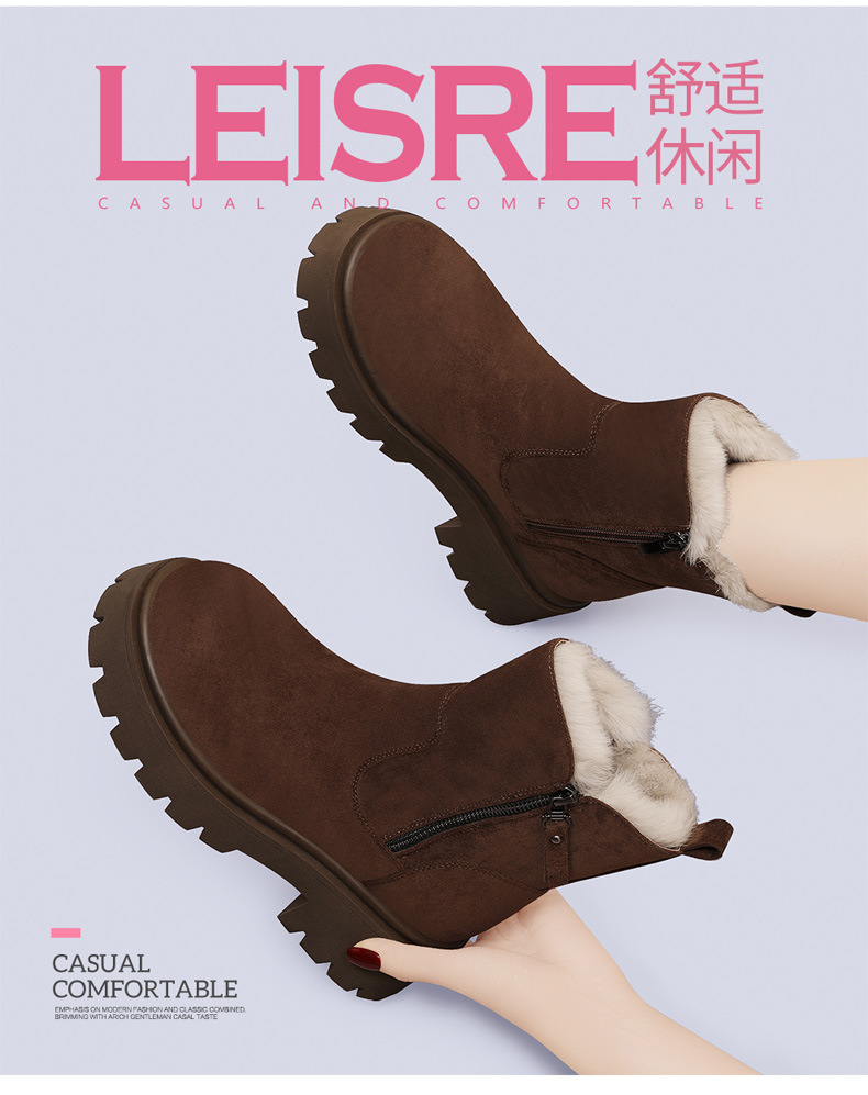 新款冬季【雪地靴女款短靴】加绒复古低帮厚底靴 防滑东北大棉鞋