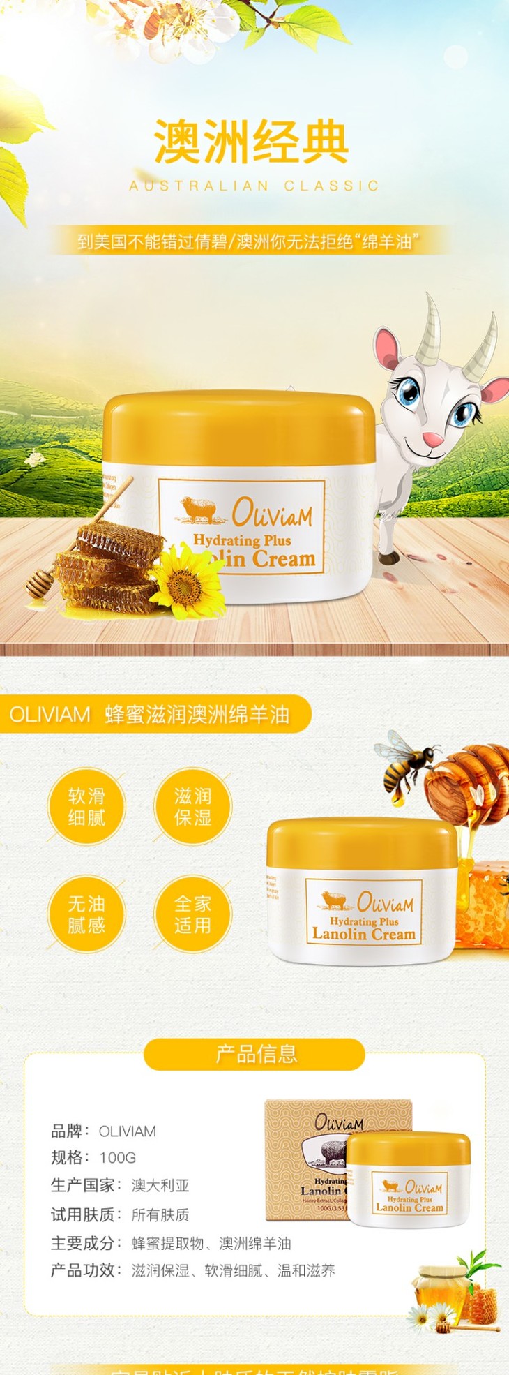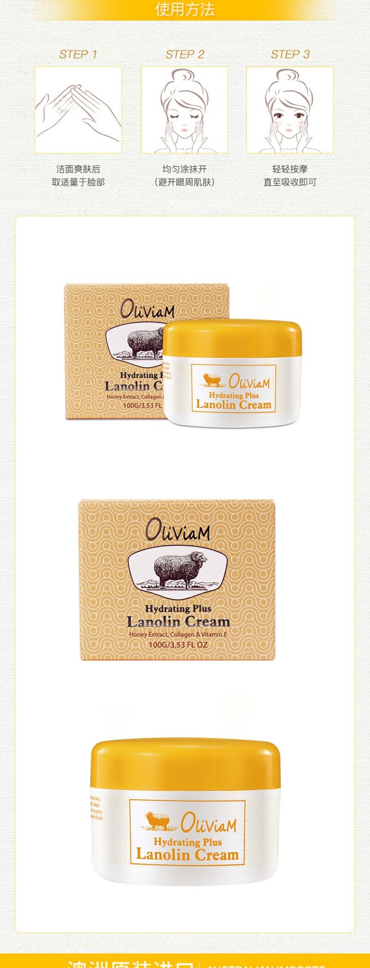 【一般贸易】澳洲Oliviam蜂蜜滋润绵羊油面霜
