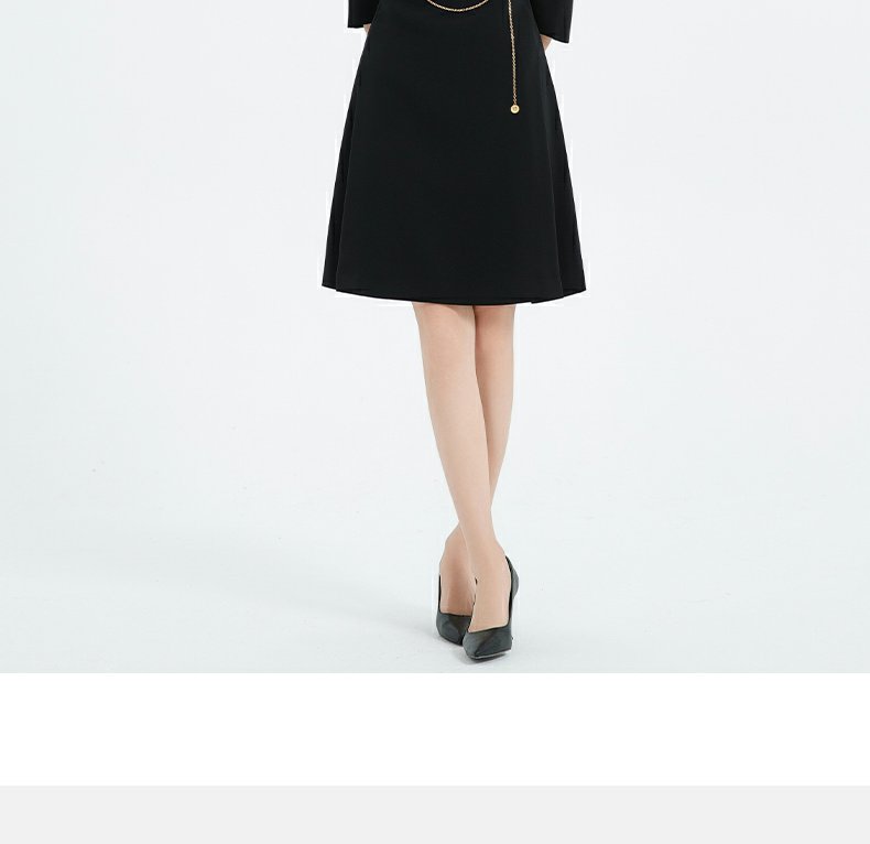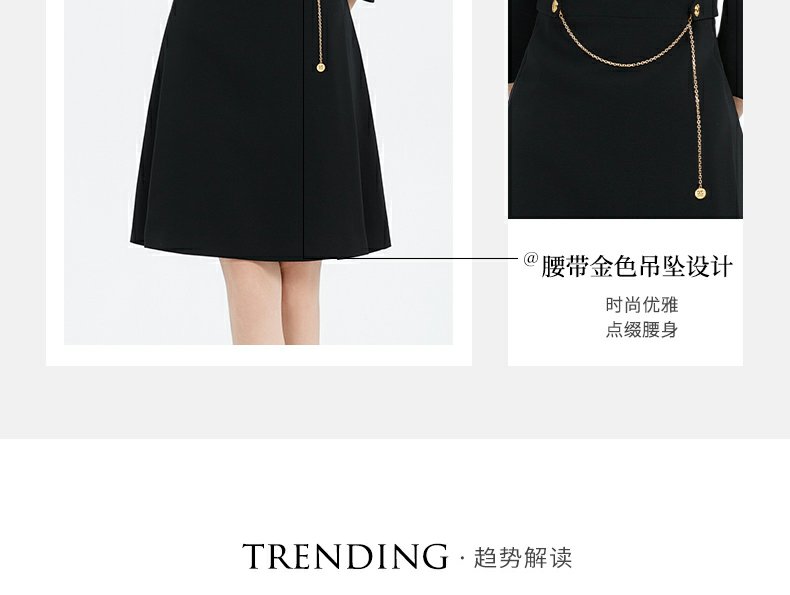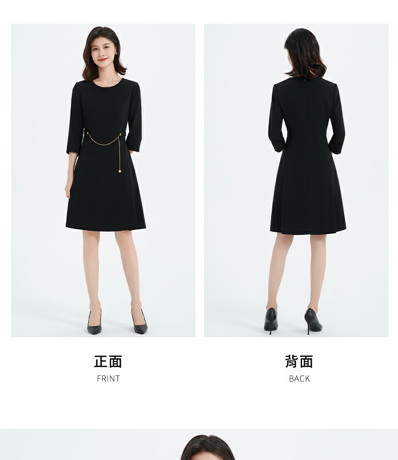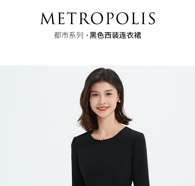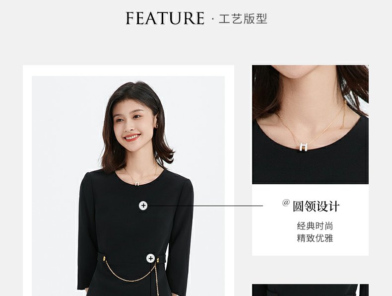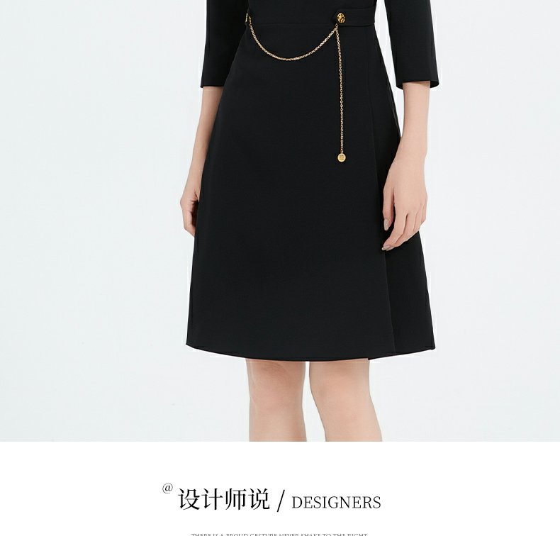 IWY/黑色连衣裙新款七分袖长裙设计感高端商务正式场合淑女气质ol裙子Q13304